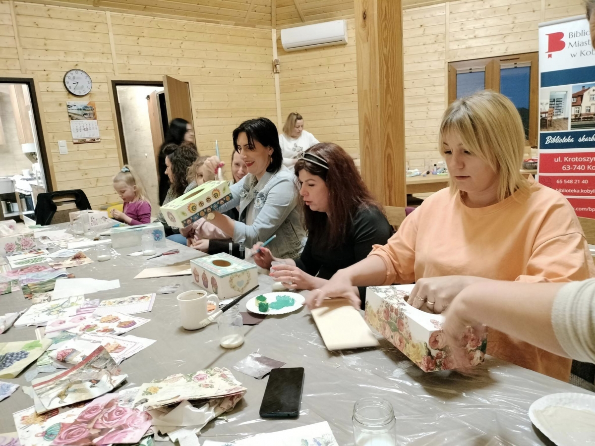 Dnia 26 kwietnia 2024 roku odwiedziliśmy Długołękę. Odbyły się tam warsztaty decoupage, których organizatorem było Koło Gospodyń Wiejskich Długołęka oraz Biblioteka Publiczna Miasta i Gminy w Kobylinie. Prowadzącą spotkanie była nasza wierna czytelniczka Ewelina Adler, a jej prawą ręką Aldona Kordus.