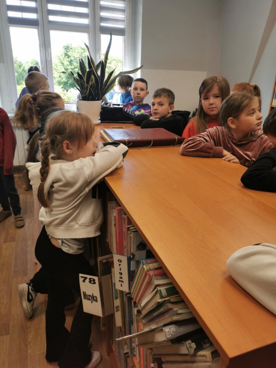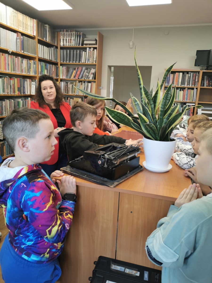 Nie zabrakło również wspólnego spaceru po książnicy i poznaniu wszystkich tajemniczych zakamarków. Uwagę gości przykuły stare maszyny do pisania i liczydło, które były kiedyś wykorzystywane w każdej instytucji. Na zakończenie spotkania młodzi czytelnicy zgodnie stwierdzili, że LUBIĄ TU BYĆ i jeszcze nas odwiedzą! Do zobaczenia!