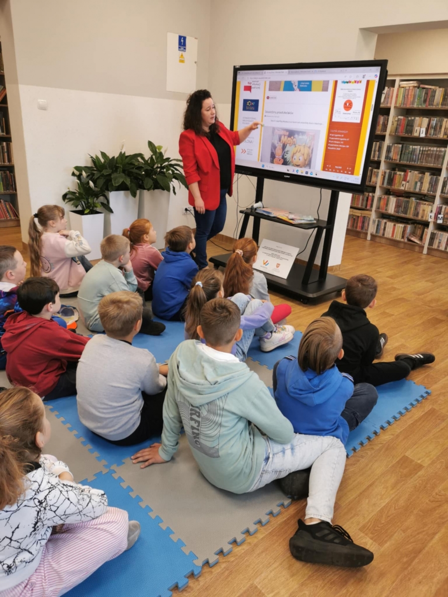 Dnia 23 maja 2025 r. odwiedziła nas klasa 2 ze Szkoły Podstawowej im. J. Tuwima w Kobylinie wraz z wychowawcą Panią Ewa Jankowiak. Wspólnie spędzony czas poświęciliśmy na poznanie systemu bibliotecznego, a także internetowego katalogu książek. Uczyliśmy się samodzielnego wyszukiwania interesujących nas tytułów książek. Młodzi czytelnicy przejrzeli także naszą stronę www. To na niej bibliotekarki umieszczają wszystkie informacje o odbywających się wydarzeniach w placówce. Można tam znaleźć także dane kontaktowe czy filmy promujące Bibliotekę.
