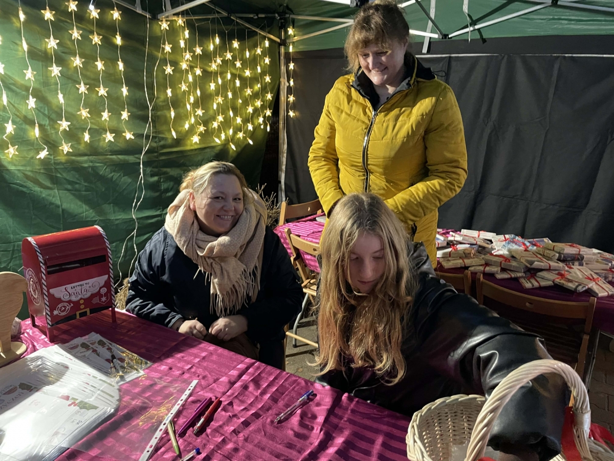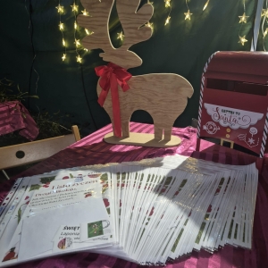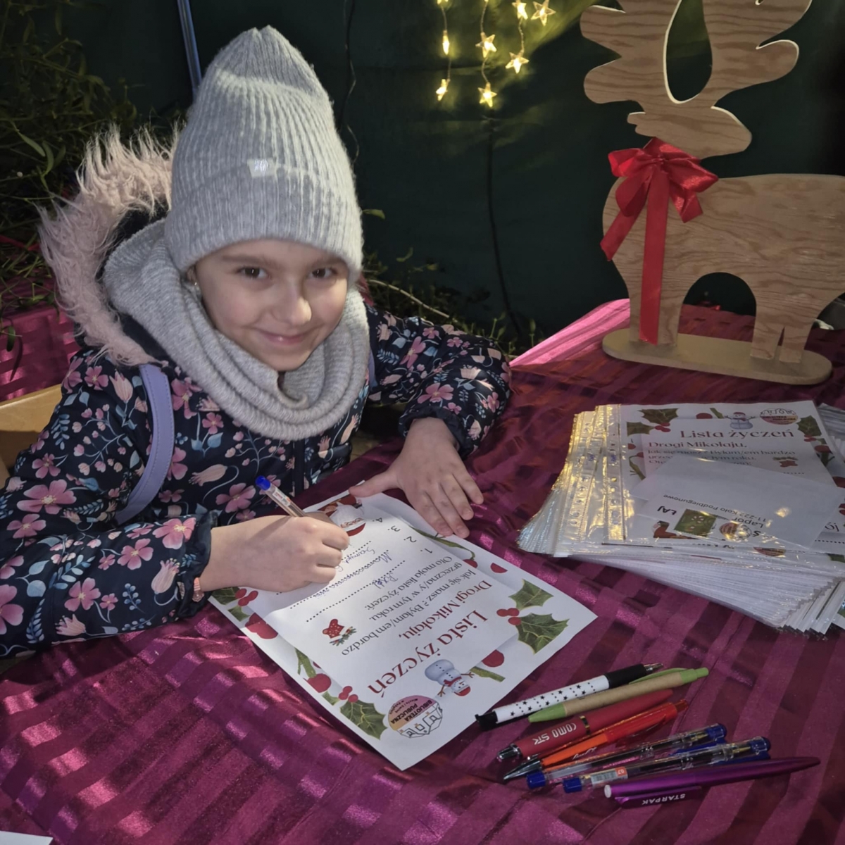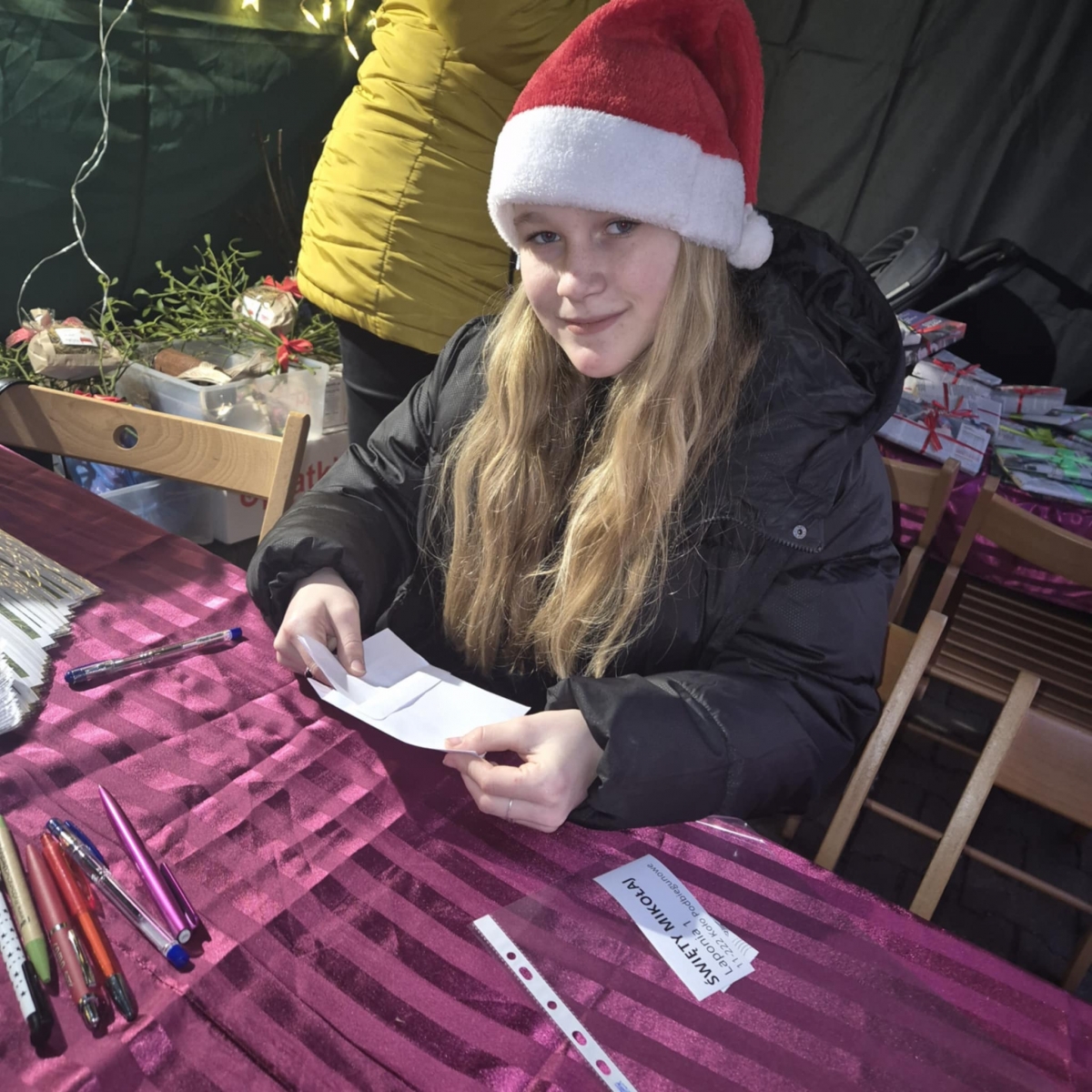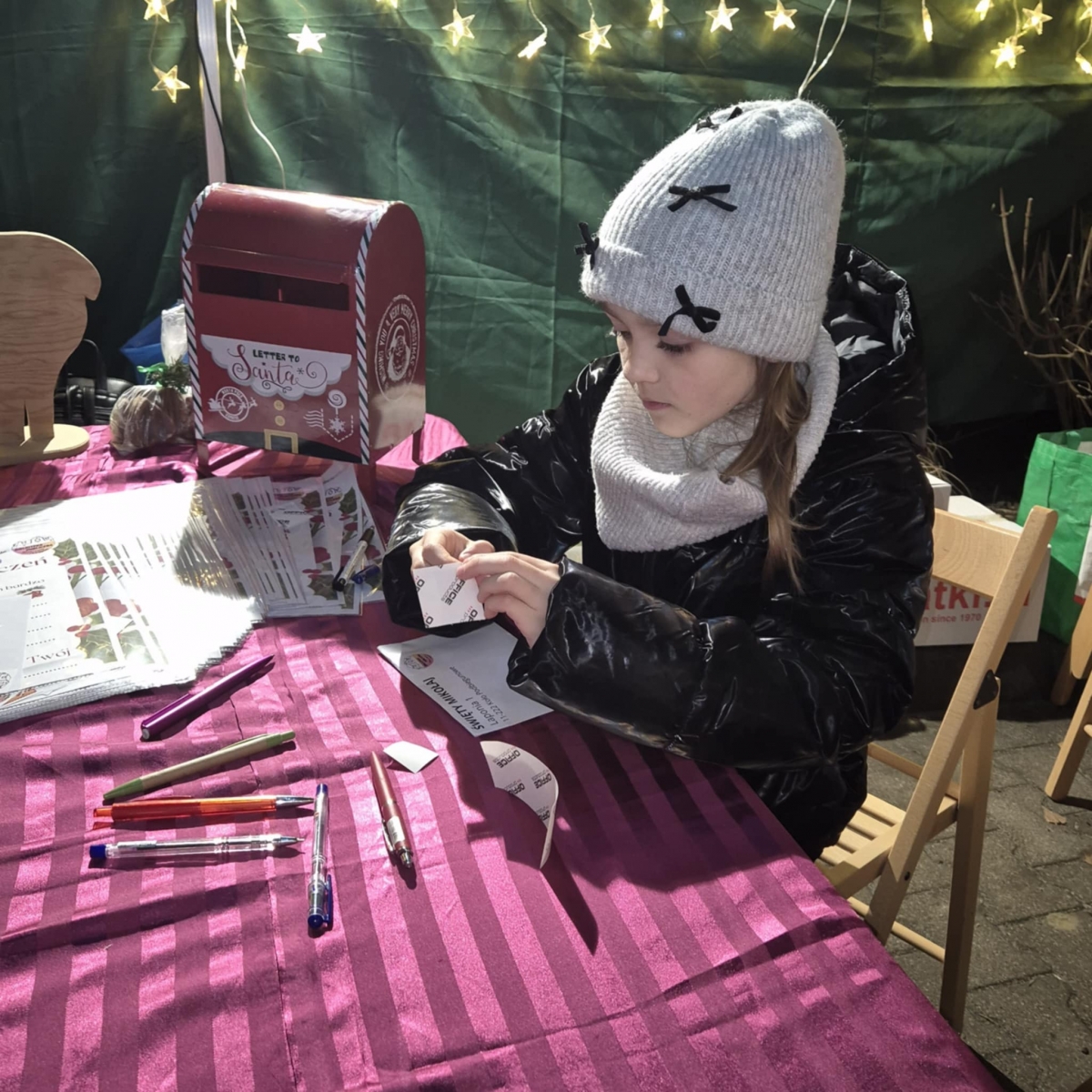 Każdy kto nas odwiedził mógł napisać list do Świętego Mikołaja. Bibliotekarki gwarantowały wysyłkę do Laponii. Rozdawałyśmy książkowe prezenty dla dzieci i dorosłych. Poza tym dla odwiedzających miałyśmy wigilijne sianko, jemiołę, a nawet opłatki. Do naszego stoiska zawitało ponad 250 osób.