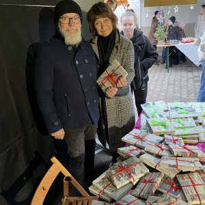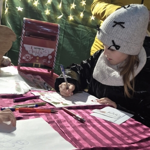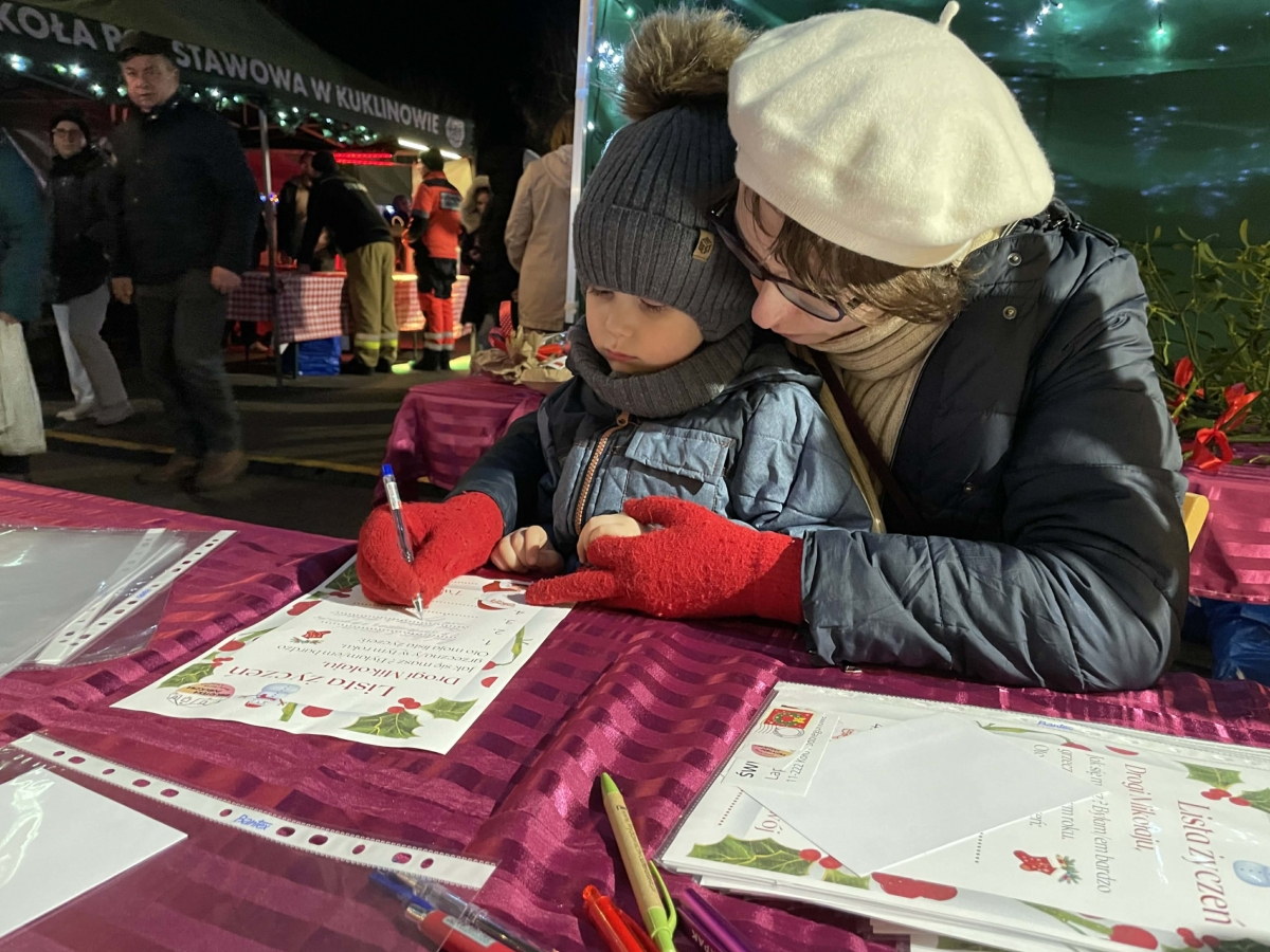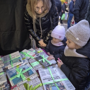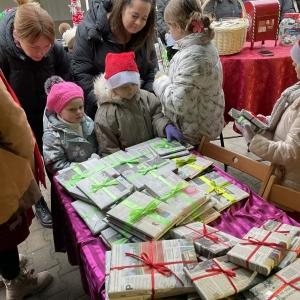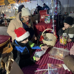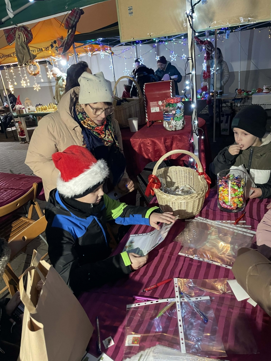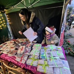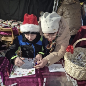 W galerii znajdują się zdjęcia z Jarmarku Świątecznego w Kobylinie dnia 7 grudnia 2025 r. Na zdjęciach widoczne są osoby odwiedzające stoisko Biblioteki Publicznej. Na zdjęciach w galerii widać dzieci i osoby dorosłe, które wybierają książki- prezenty, piszą listy do Mikołaja, zabierają sianko na stół wigilijny, opłatki, jemiołę.