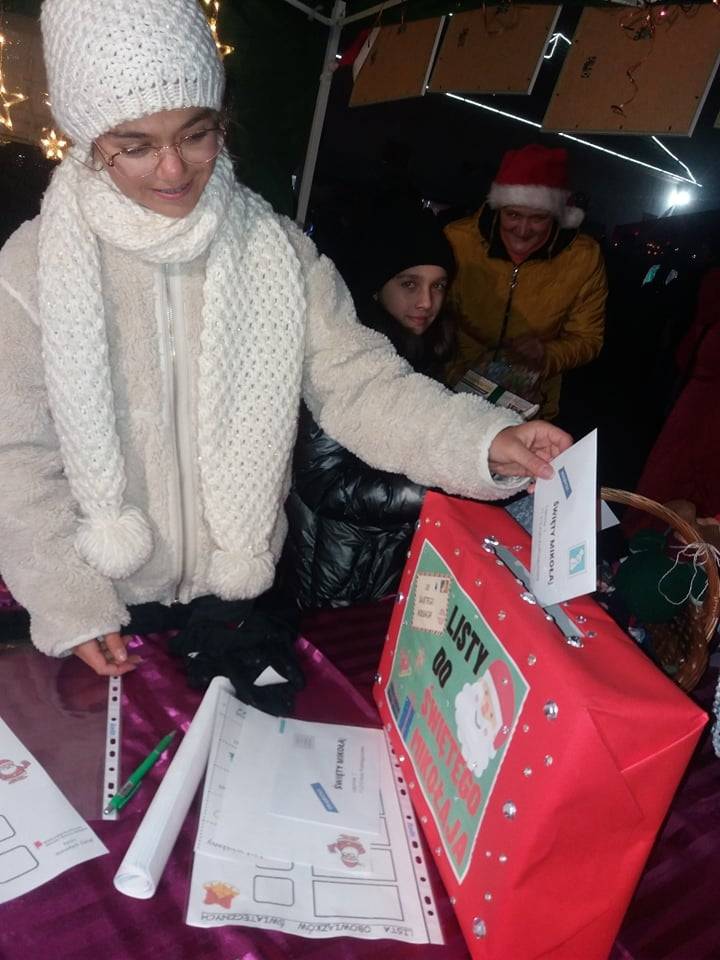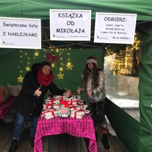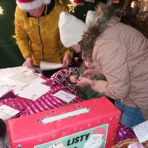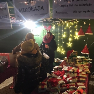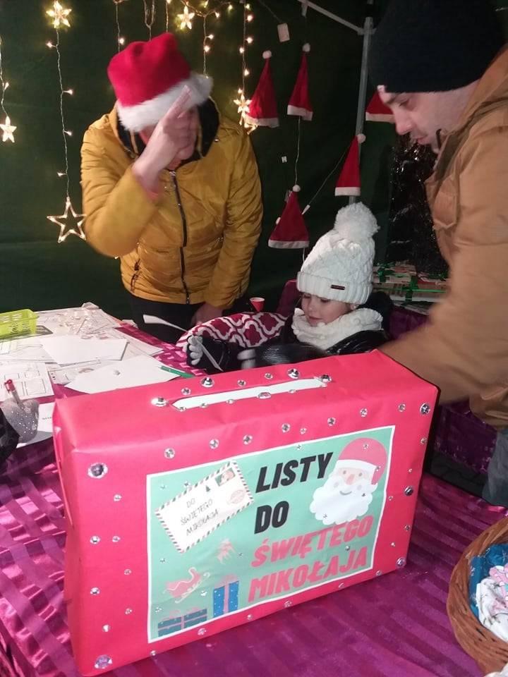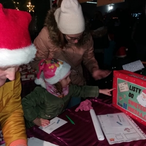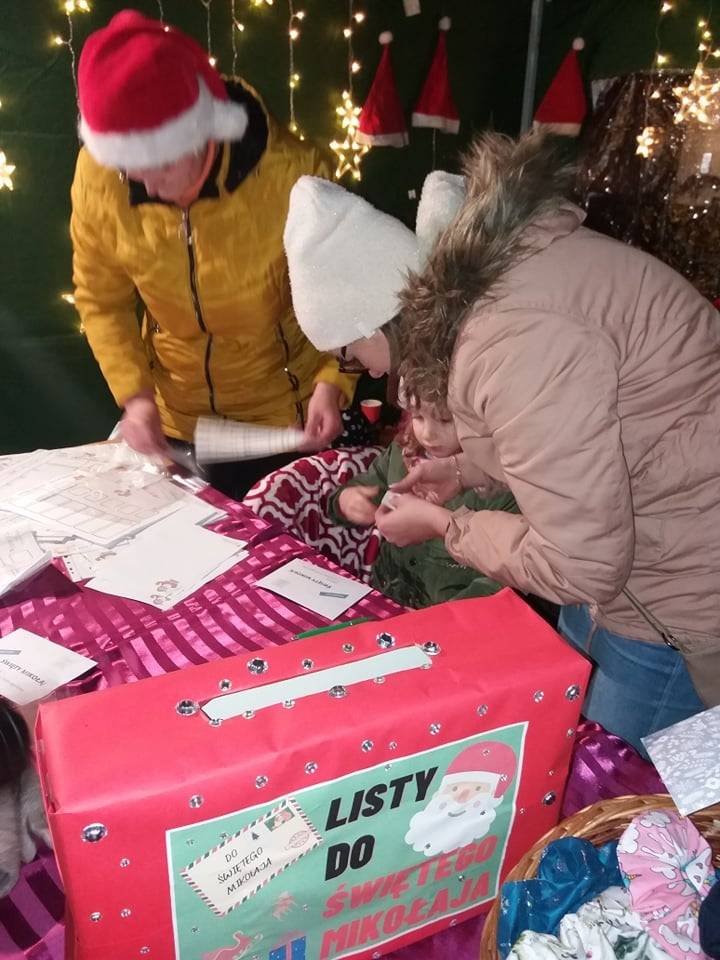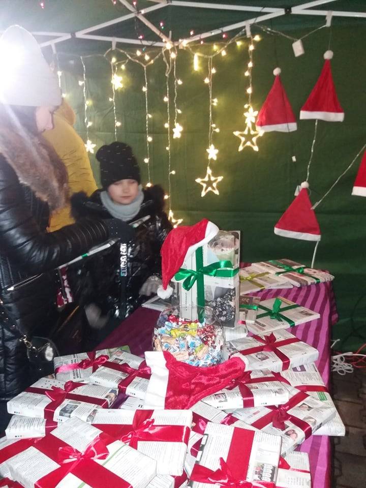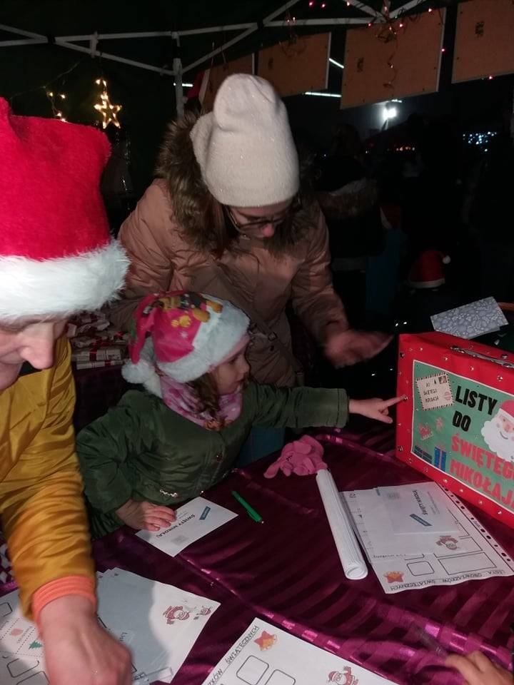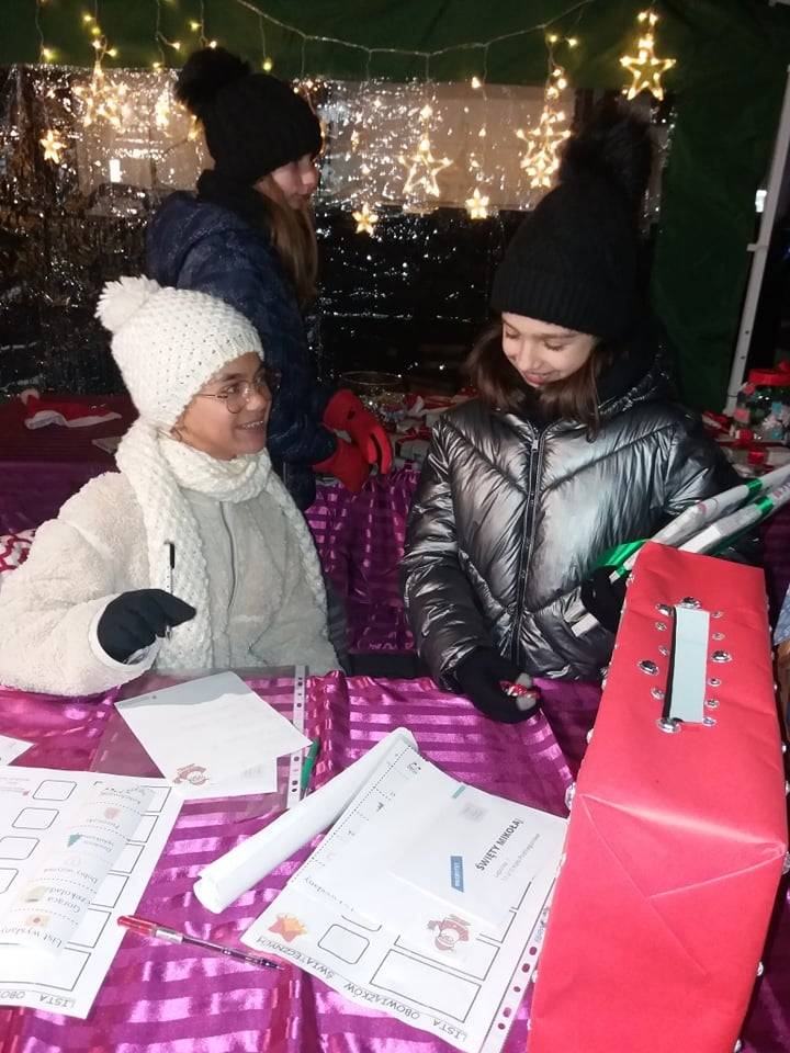 Tego dnia Biblioteka Publiczna oferowała książki, które sprezentował Mikołaj. Każde dziecko, a także osoba dorosła mogła ze sobą zabrać prezent, którym była książka o nieznanym (dla obdarowanego) tytule. Kolejną miłą niespodzianką, którą oferowaliśmy było pisanie listów do Świętego Mikołaja. Przygotowaliśmy specjalną papeterię, zaadresowane koperty, a nawet specjalne znaczki pocztowe. Listy wrzucane do naszej skrzynki pocztowej, zostały wysłane do Mikołaja priorytetem ! Pisanie listu było pierwszym punktem do zrealizowania w naszej kolejnej zabawie. Odwiedzający nasz namiot otrzymywali listę obowiązków świątecznych, którą zapełniali specjalnymi naklejkami.