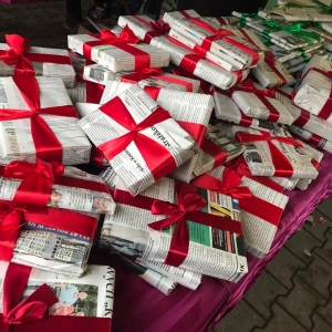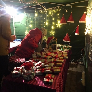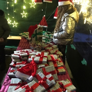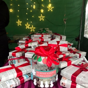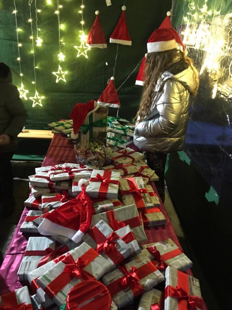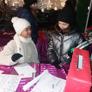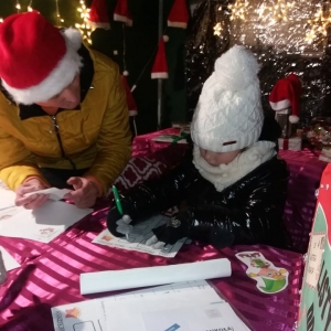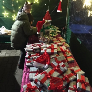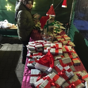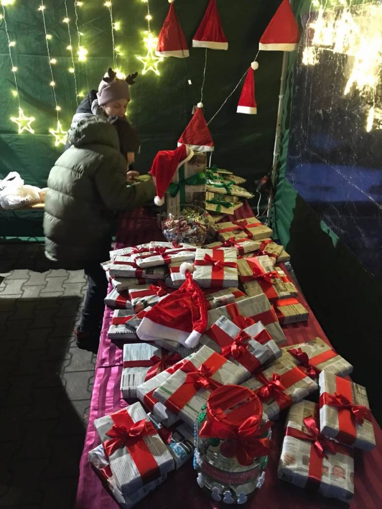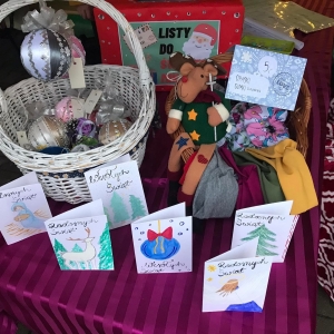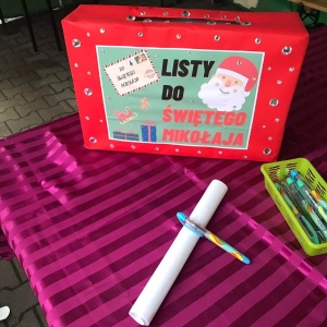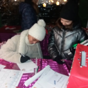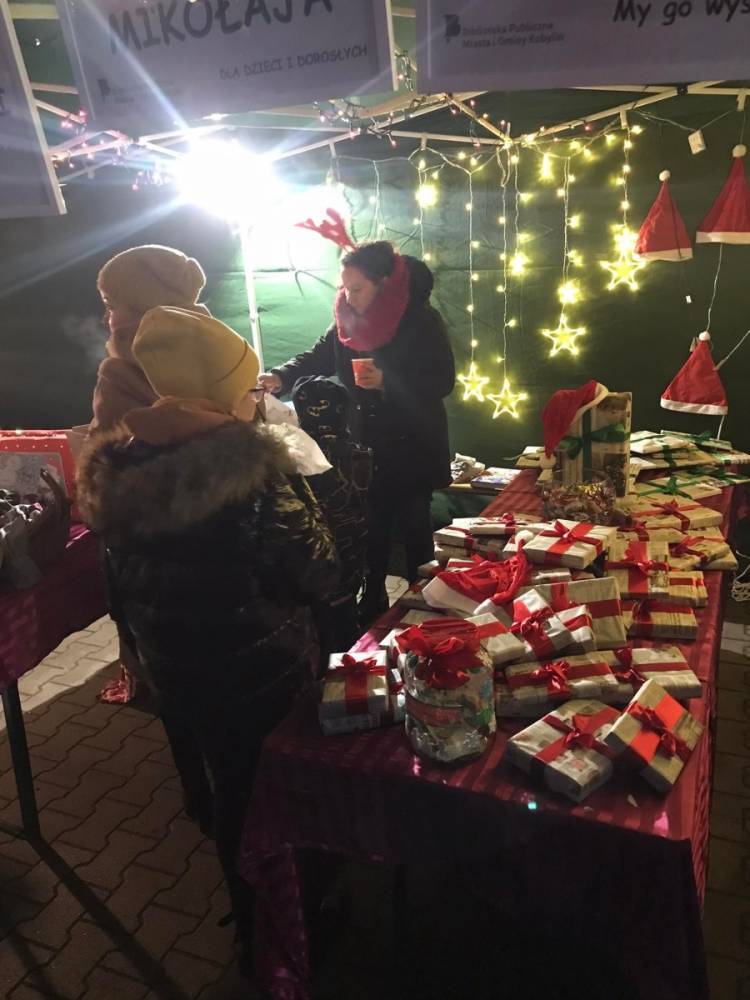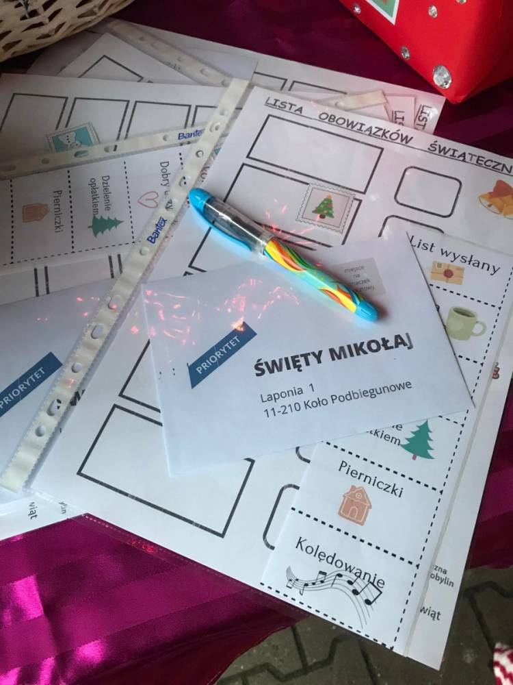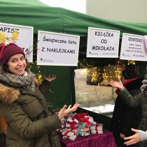 Tego dnia Biblioteka Publiczna oferowała książki, które sprezentował Mikołaj. Każde dziecko, a także osoba dorosła mogła ze sobą zabrać prezent, którym była książka o nieznanym (dla obdarowanego) tytule. Kolejną miłą niespodzianką, którą oferowaliśmy było pisanie listów do Świętego Mikołaja. Przygotowaliśmy specjalną papeterię, zaadresowane koperty, a nawet specjalne znaczki pocztowe. Listy wrzucane do naszej skrzynki pocztowej, zostały wysłane do Mikołaja priorytetem ! Pisanie listu było pierwszym punktem do zrealizowania w naszej kolejnej zabawie. Odwiedzający nasz namiot otrzymywali listę obowiązków świątecznych, którą zapełniali specjalnymi naklejkami.