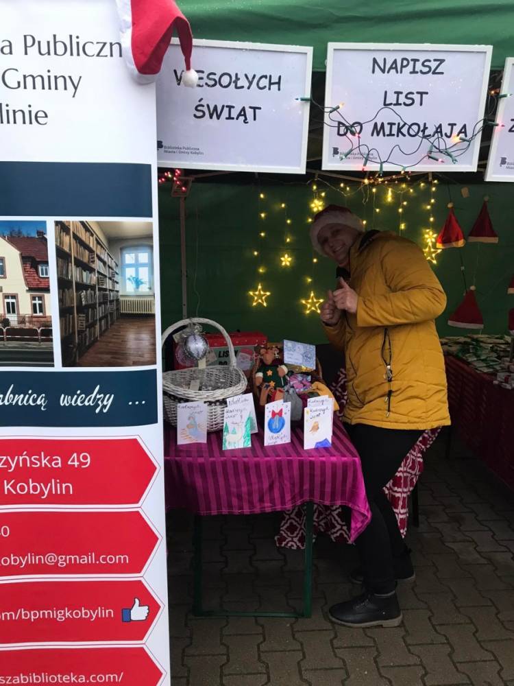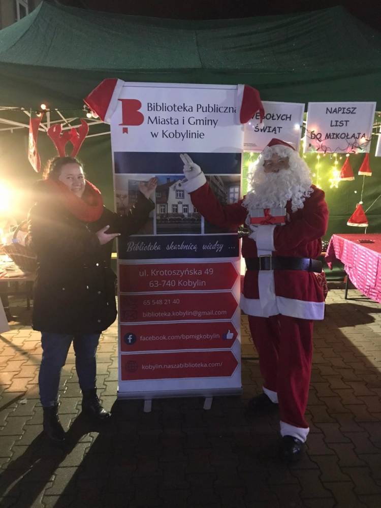 Dnia 5 grudnia 2021 r. Biblioteka Publiczna uczestniczyła w Jarmarku Świątecznym zorganizowanym przez Gminny Ośrodek Kultury w Kobylinie oraz Urząd Miejski. W magiczne niedzielne popołudnie można było kupić świąteczne ozdoby, zjeść ciepły posiłek, zobaczyć występy artystyczne. Największą atrakcją Jarmarku okazał się przyjazd korowodu Mikołajów. Pełen iluminacji orszak motorów, platformy oraz sań poprowadził sam Burmistrz Kobylina Tomasz Lesiński.