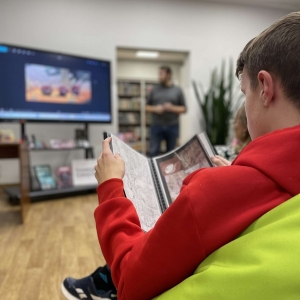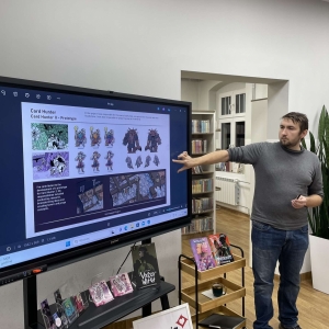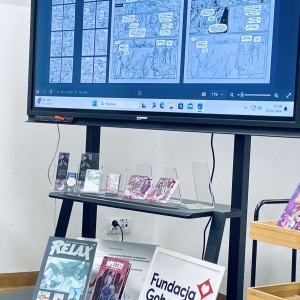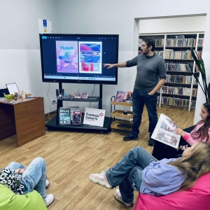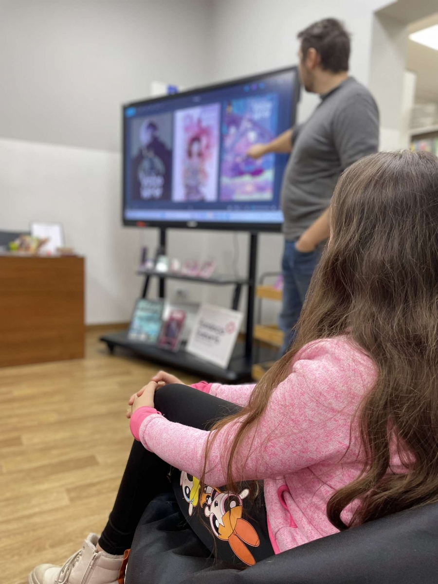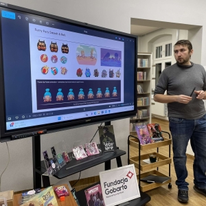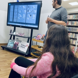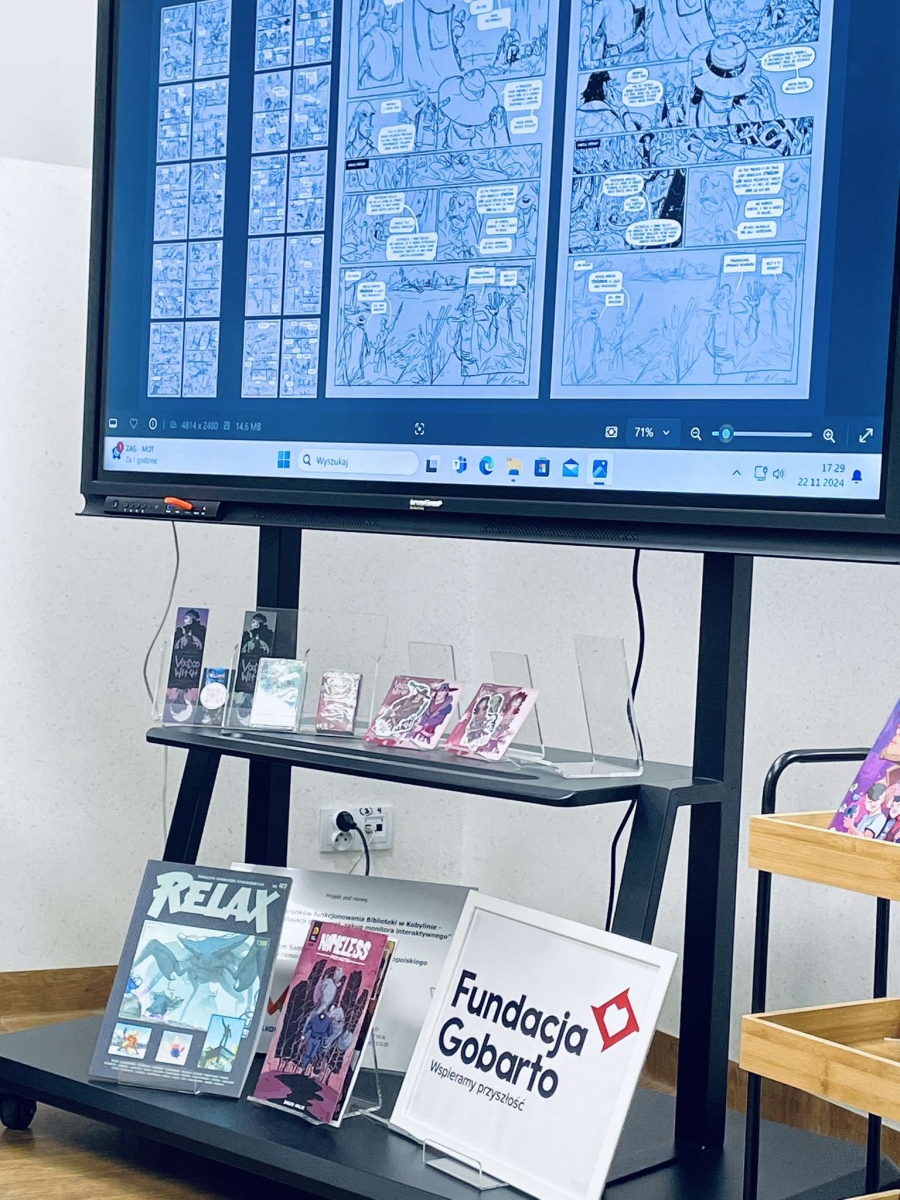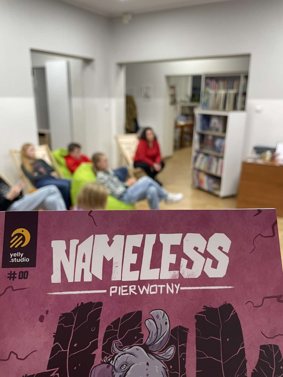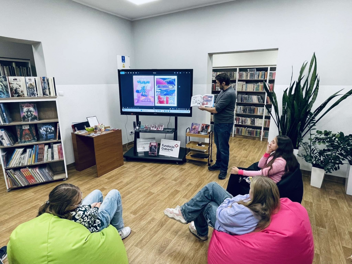 Zaprosiliśmy Dawida Malika - grafika, twórcę gier komputerowych i komiksów, a także ich pasjonata. Dawid opowiedział o etapach tworzenia ilustracji oraz o charakterystyce zawodu grafika. Ukazał także sporo własnych prac, które młodzież z zainteresowaniem przeglądała.