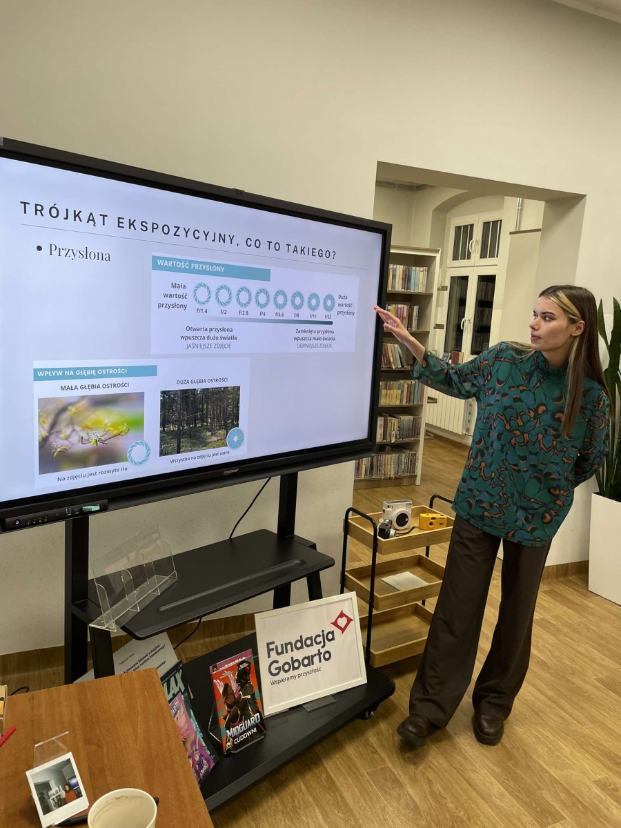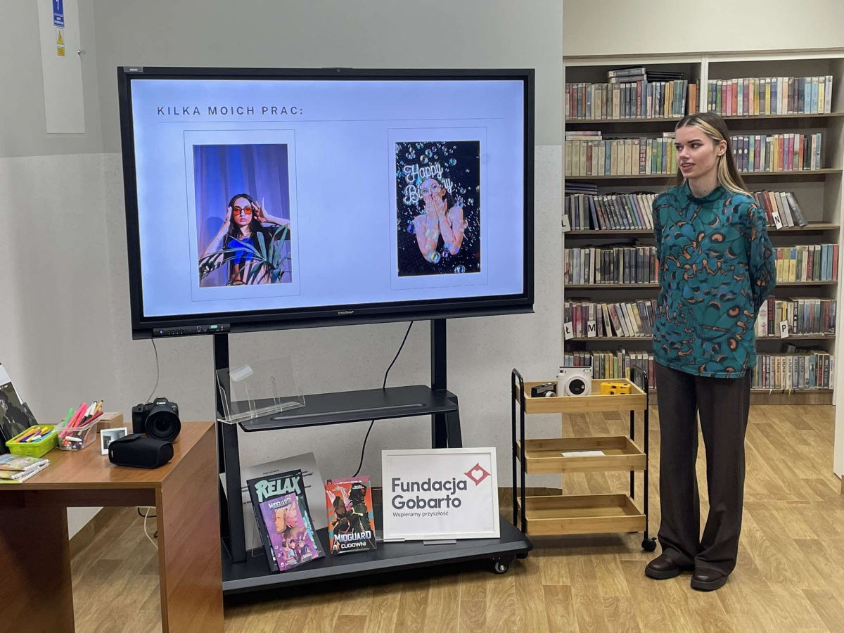 Kolejnym gościem była Weronika Wojtyczka – pasjonatka fotografii, która od niedawna zawodowo zajmuje się tworzeniem zdjęć. Weronika przedstawiła kilka rodzajów aparatów oraz opowiedziała o specyfice wykonywanej pracy. Zaprezentowała kilka swoich prac – fotografii, z których jest dumna.