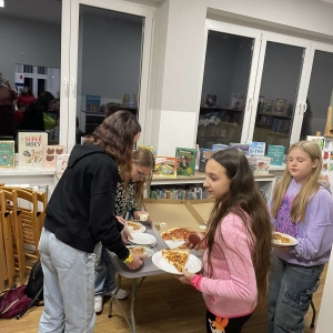 W międzyczasie, gdy nasi goście dzielili się swoimi pasjami, młodzież popijała herbatę, czekoladę, zajadając pizzę.