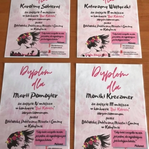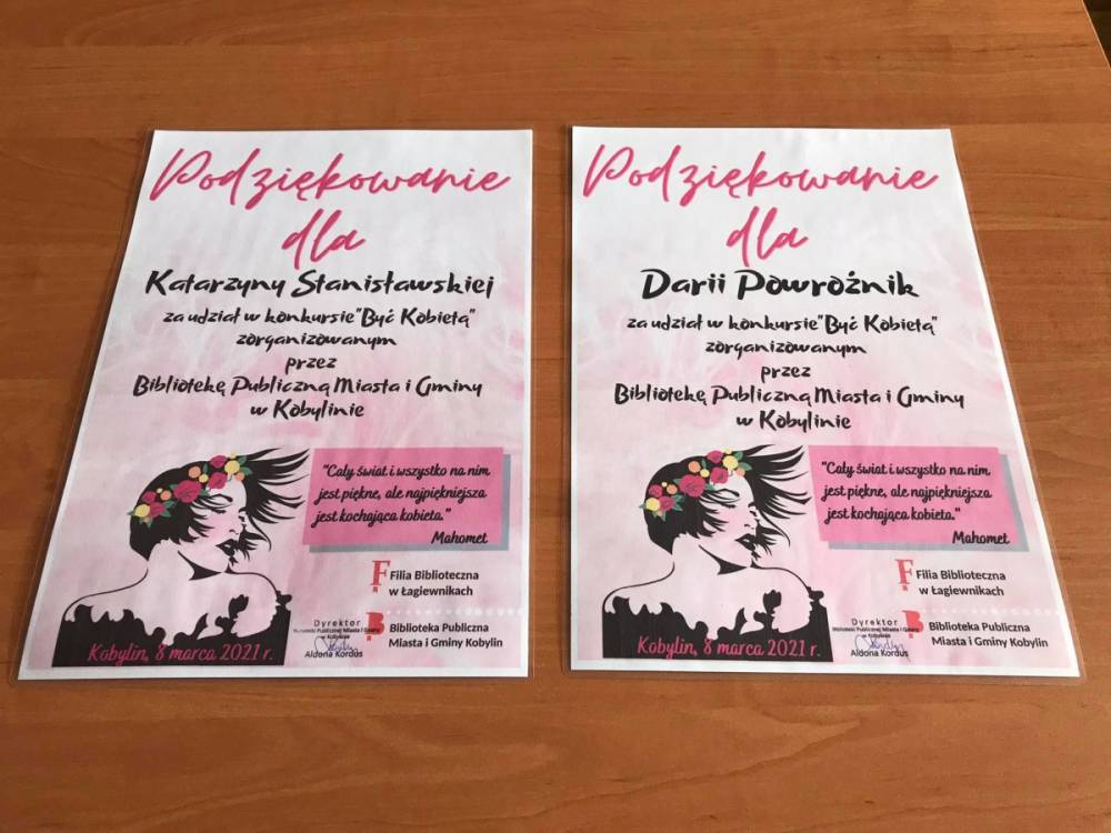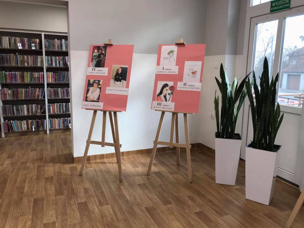 Prace wszystkich uczestników konkursu zostały wystawione w bibliotece. Bardzo zachęcamy do odwiedzenia biblioteki i obejrzenia wystawy „Być Kobietą”. :-)