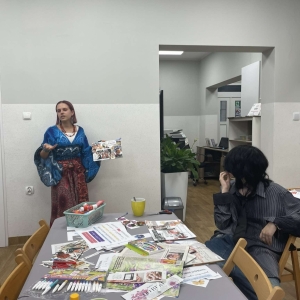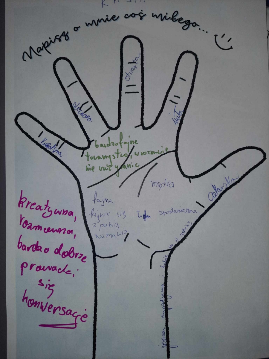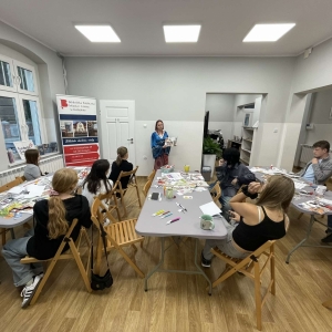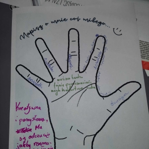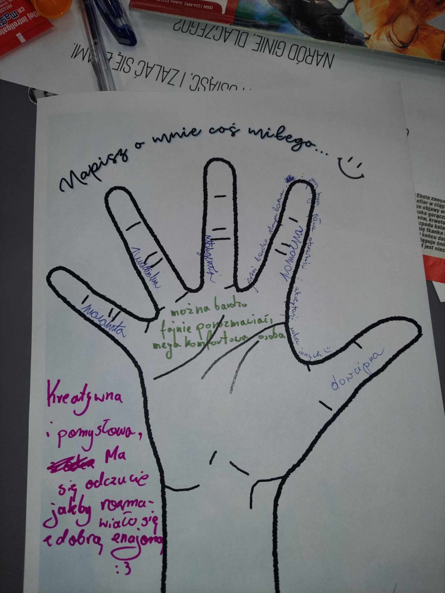 Pracując manualnie, toczyliśmy rozmowy na przeróżne tematy – potrzeby i braki edukacyjne, pasje w wolnym czasie, czy plany na przyszłość. W tle unosił się zapach gorącej czekolady, herbaty oraz słodkich ciasteczek, którymi częstowali się uczestnicy. Na zakończenie, na serdeczną pamiątkę spotkania – nawzajem pisaliśmy do siebie coś miłego.
