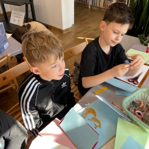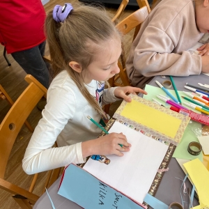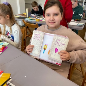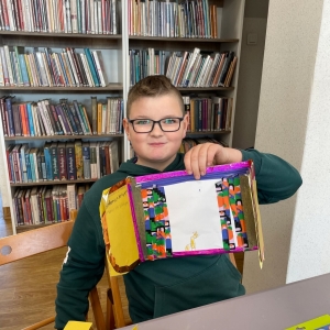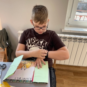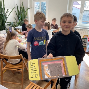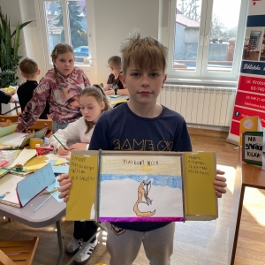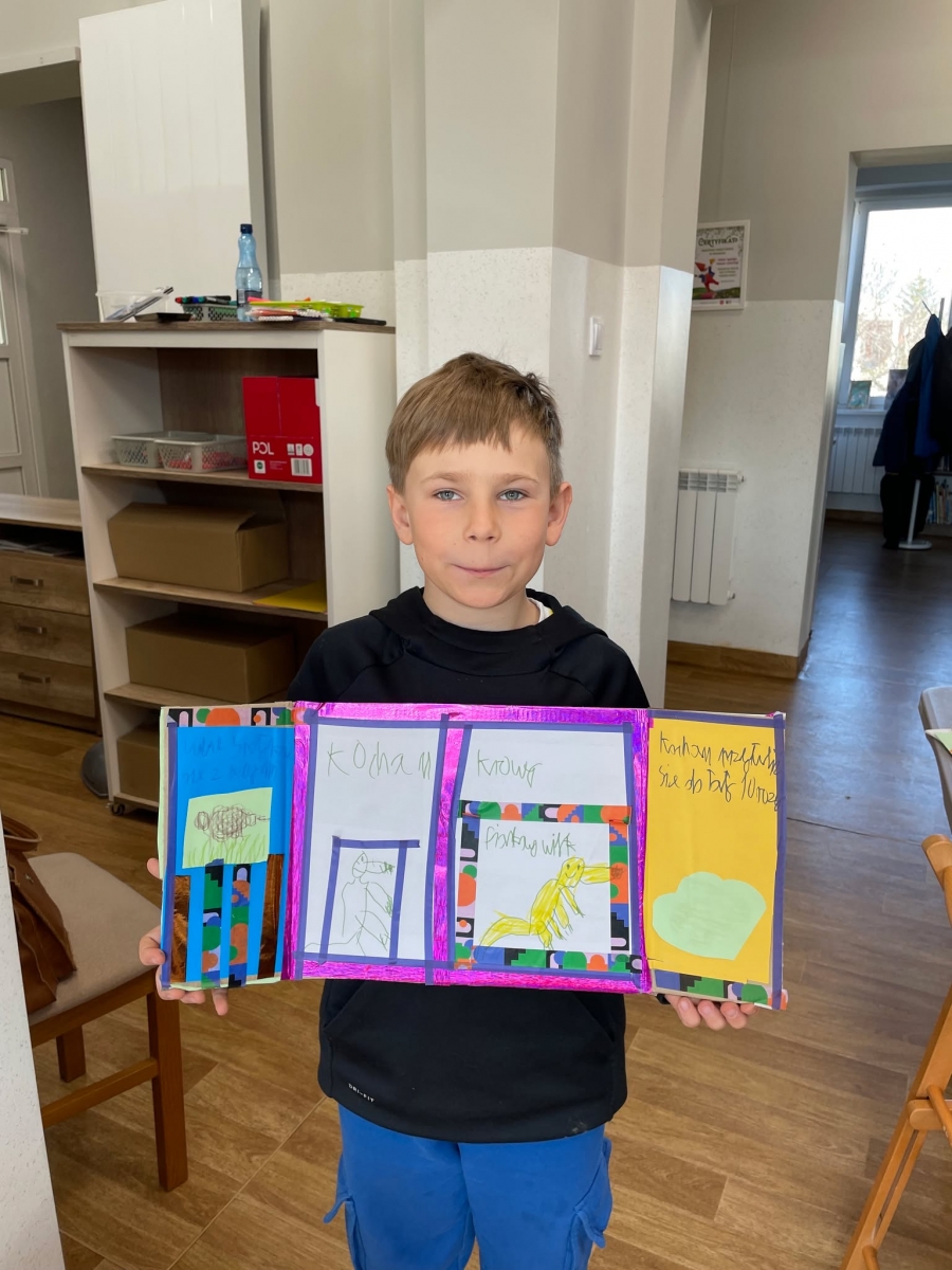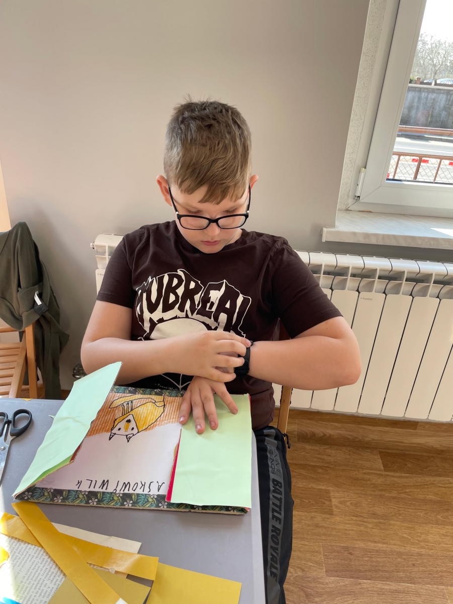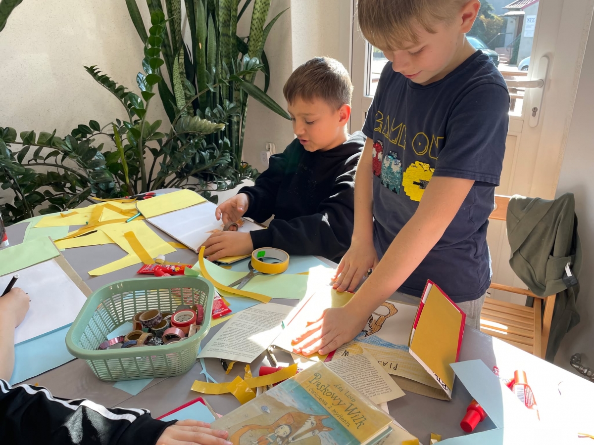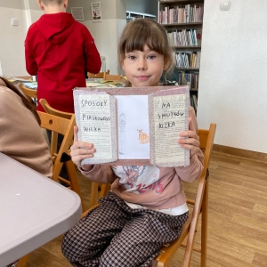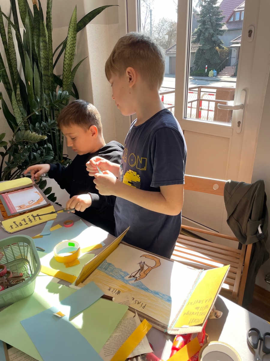 Tak więc dla „treningu pozytywności” dzieci tworzyły tekturową książkę zatytułowaną „Sposoby Piaskowego Wilka na smutków kilka”. W środku wpisywali oraz rysowali swoje własne pomysły na radzenie sobie ze smutkiem. W momencie przygnębienia każdy będzie mógł zajrzeć do własnego poradnika, by przypomnieć sobie, że na chandrę jest sposobów co najmniej kilka.