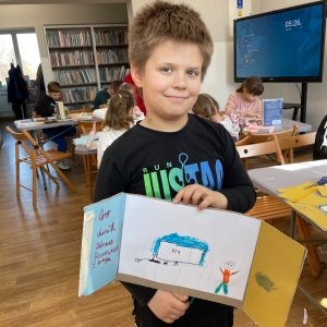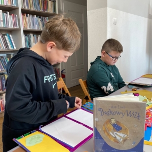 Tematem zajęć były metody radzenia sobie ze smutkiem. Z pomocą przyszedł do nas tytułowy bohater książki „Piaskowy Wilk” autorstwa Åsy Lind. Zabrał on każdego z nas w podróż do wyobraźni, przywołując w pamięci radosne wspomnienia oraz odnajdując czynności, które wywołują szczęście. Obejrzeliśmy krótki filmik udostępniony przez portal Uniwersytet Dzieci, w którym psycholożka oraz psychoterapeutka Pani Maria Libiszewska podpowiadała co każdy może zrobić ze swoim smutkiem oraz że warto rozwijać swój „mięsień pozytywności” poprzez skakanie, tańczenie, słuchanie ulubionej muzyki i wiele innych.