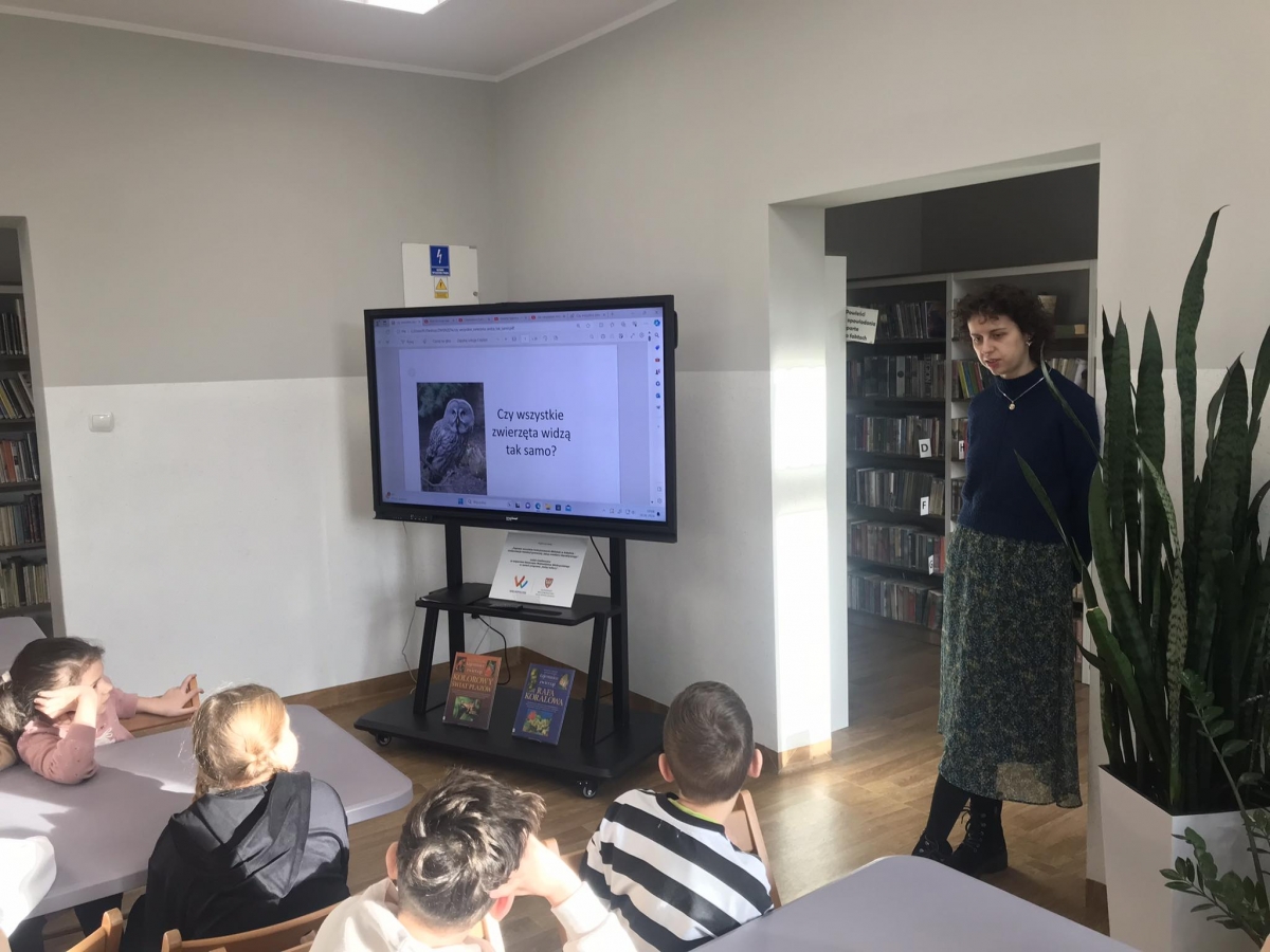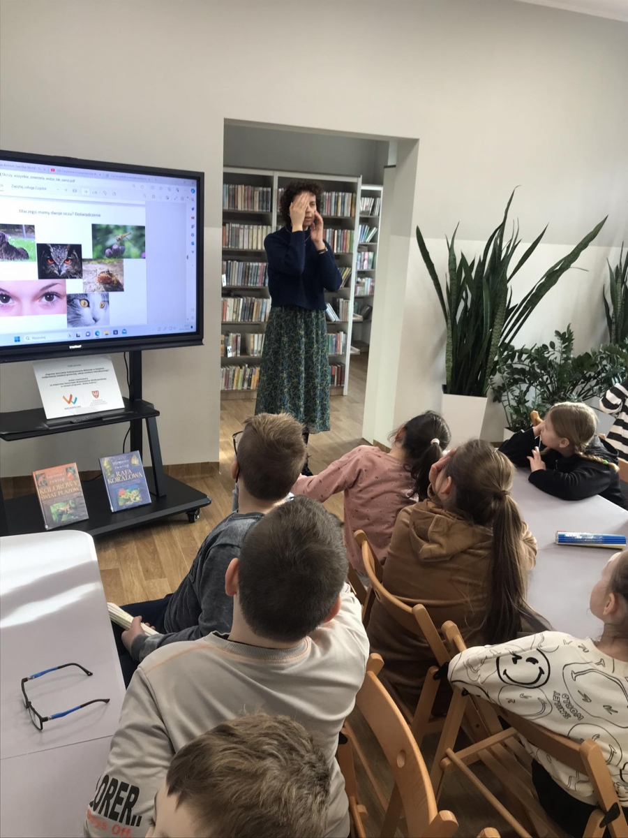 W piątkowy poranek naszą bibliotekę odwiedzili uczniowie klasy IIc wraz z wychowawcą, Panią Katarzyną Idziak. Rozmawialiśmy o zwierzętach, a dokładniej szukaliśmy odpowiedzi na pytanie: „Czy wszystkie zwierzęta widzą tak samo?”.