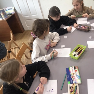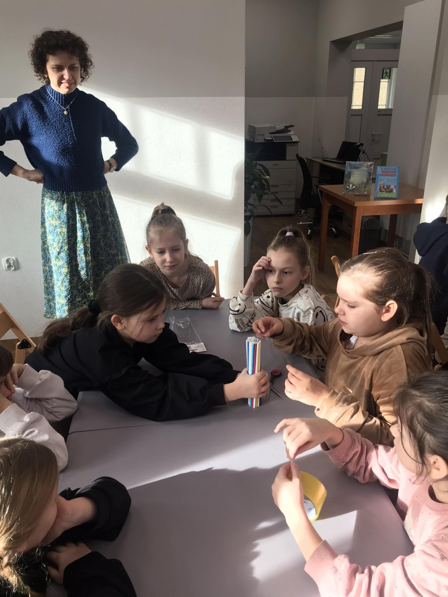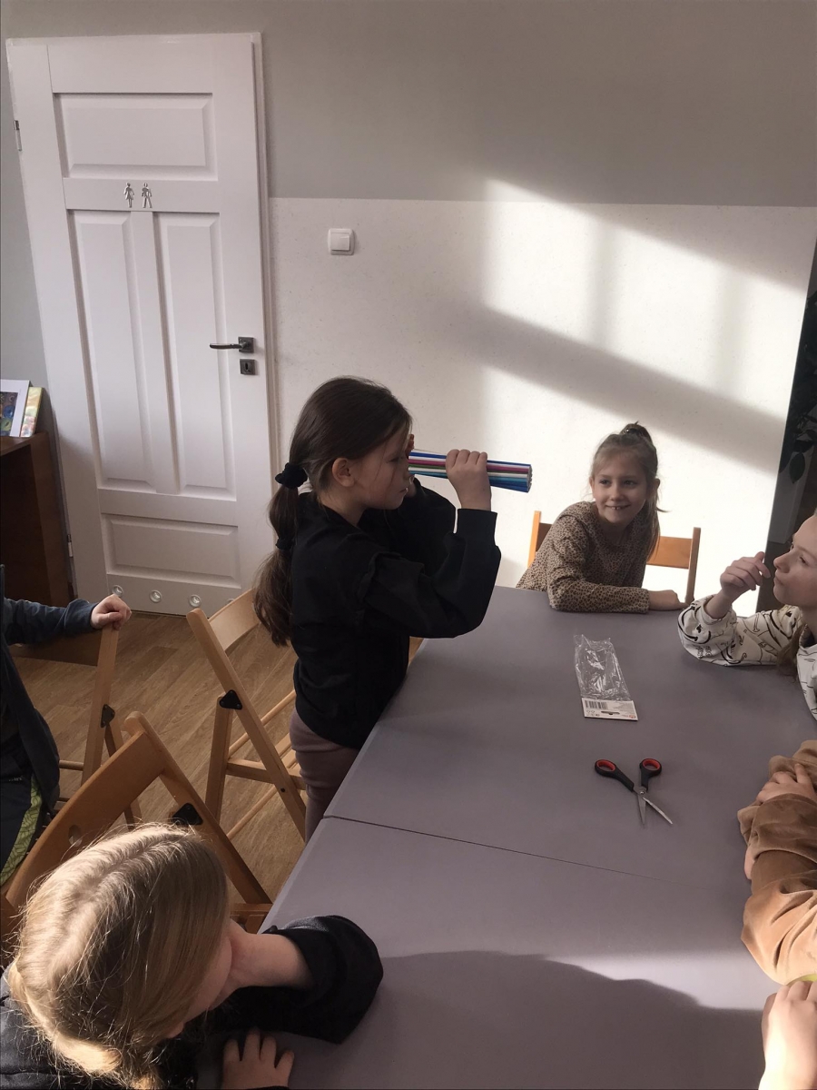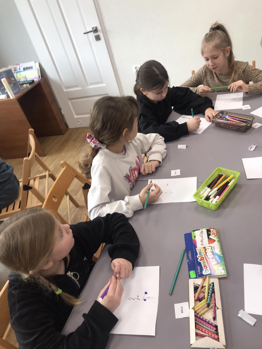 Uczniowie losowali nazwy zwierząt – na przykład kot, pies. Ich zadaniem było zilustrowanie na kartce, za pomocą kredek, czy pisaków, kwietnej łąki oczami wylosowanego zwierzęcia. Było to ciekawe doświadczenie.