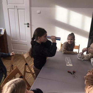 Rozmawialiśmy także o tym, jak bardzo różni się postrzeganie świata w zależności od wielkości zwierzęcia. By lepiej to zrozumieć, przykucnęliśmy na podłodze, starając się zobaczyć otaczającą nas przestrzeń oczami małego pieska – na przykład yorka. Następnie, lekko się podnosząc, zobaczyliśmy perspektywę średniego psa, a po nim dużego – na przykład dalmatyńczyka. Dzieci wspólnie uznały, że najlepiej widzi duży pies – ma większy zakres widzenia. Najtrudniej natomiast jest małym psom, takim jak york – zwykła łąka, czy park będzie dla nich niczym wielka dżungla!
