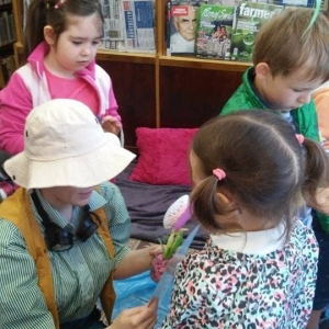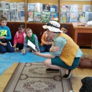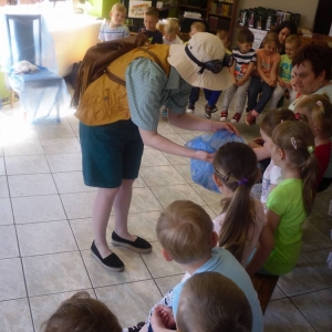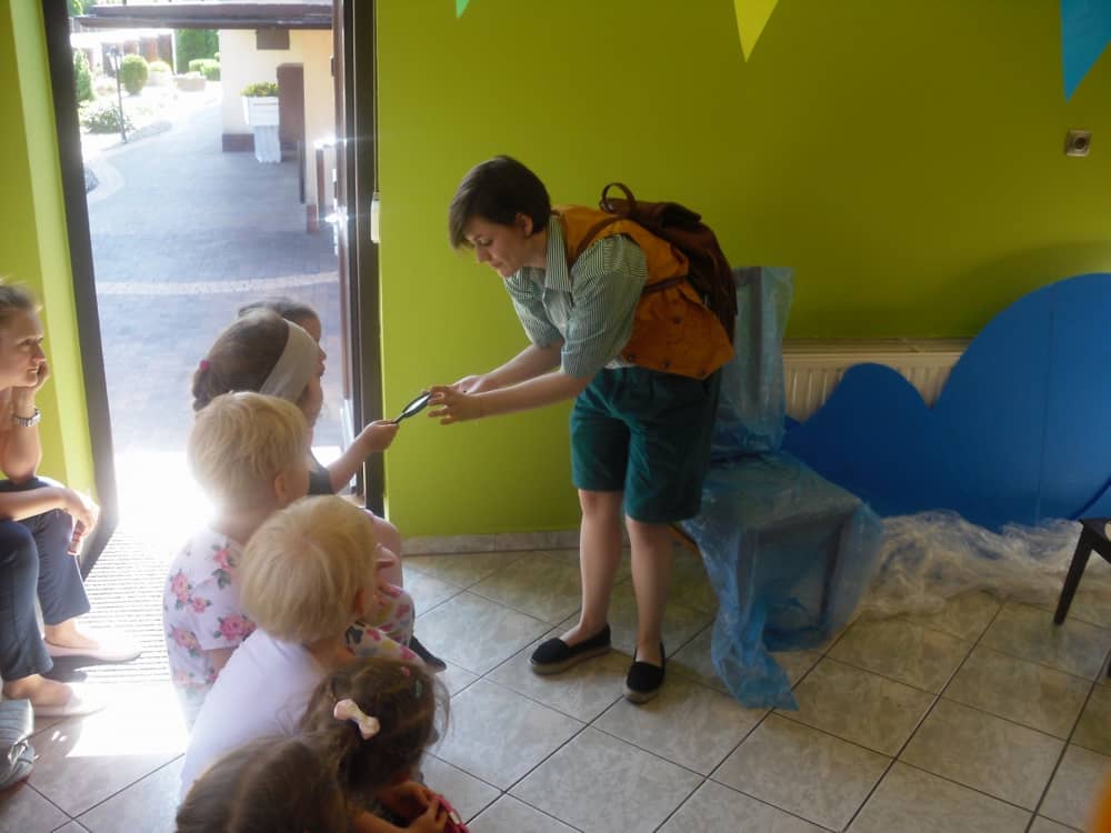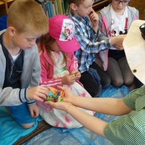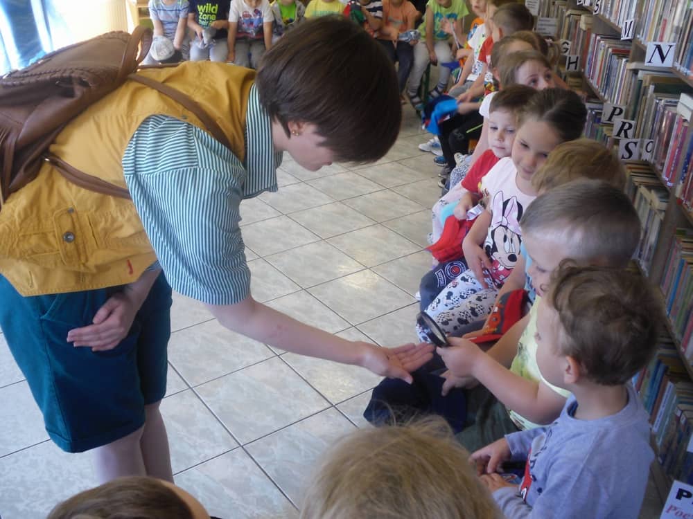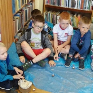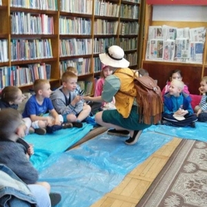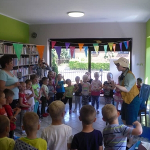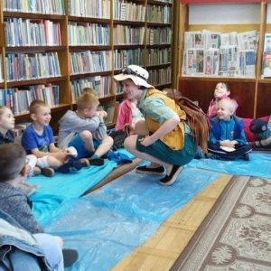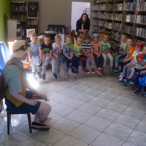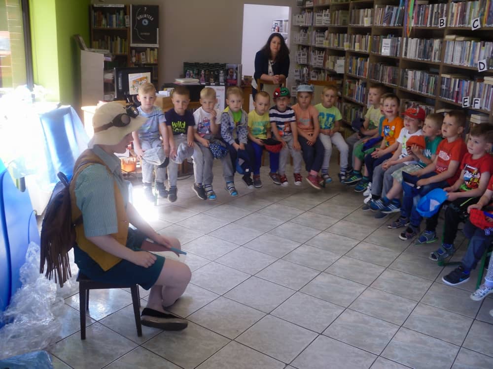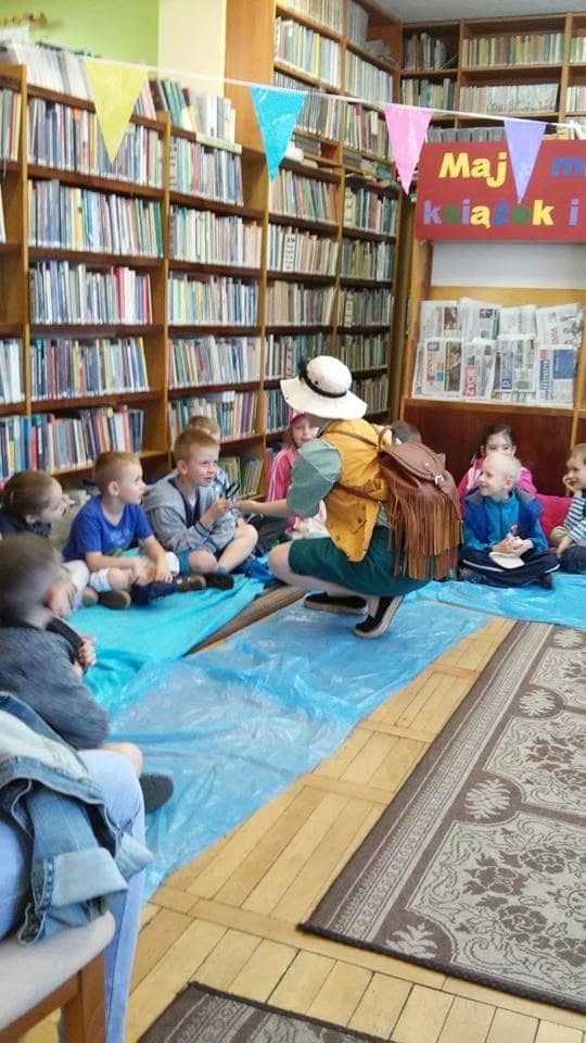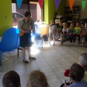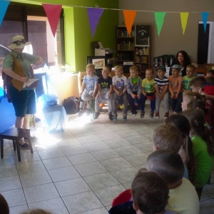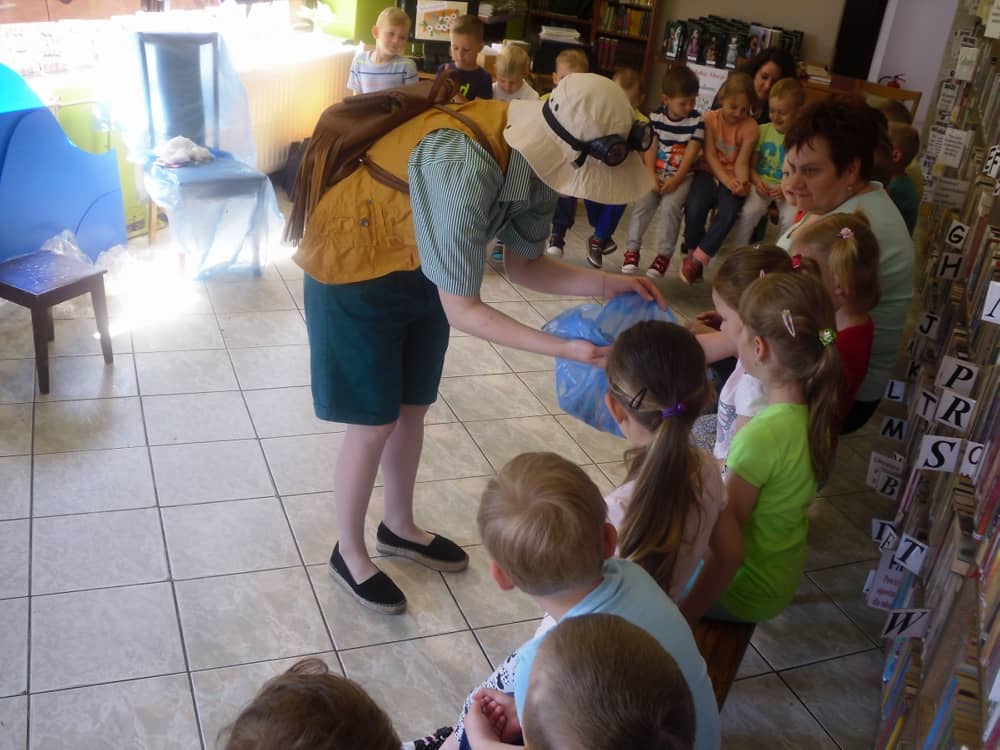 Zajęcia prowadzone były przez animatorkę panią Annę Maciejewską. Opierały się one na utworze Juliana Tuwima ,,Pan Maluśkiewicz i wieloryb” . Podczas zajęć najmłodsi czytelnicy dowiedzieli się nieco o życiu marynarza i podróżnika, tworzyły własne miniaturowe statki ze skorupek od orzechów oraz wspólnie poszukiwały wieloryba.