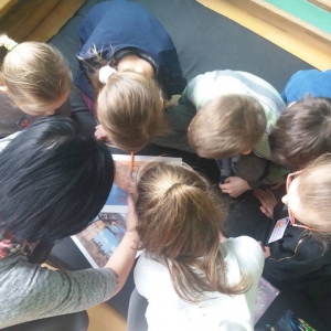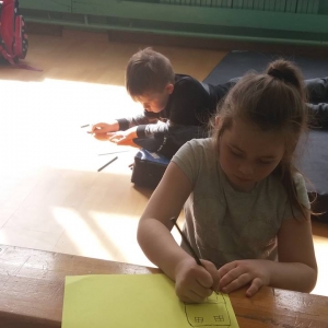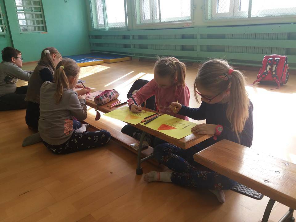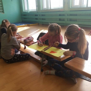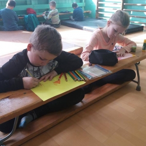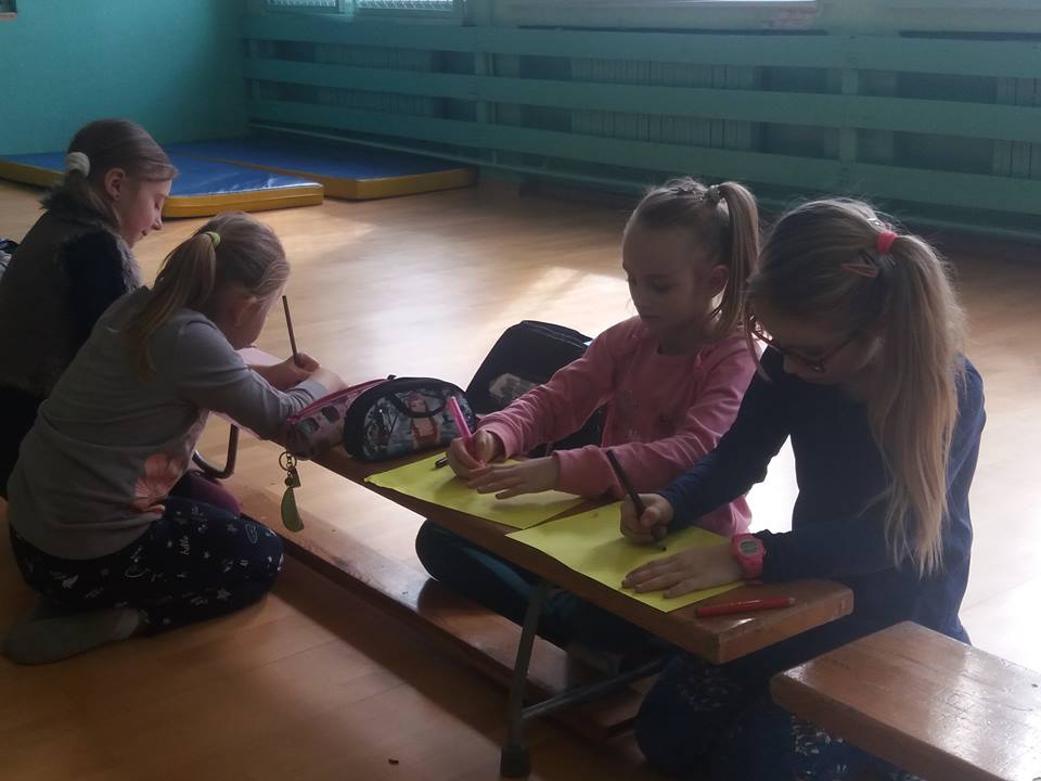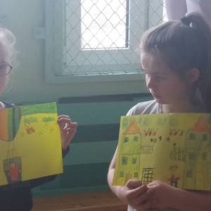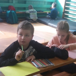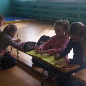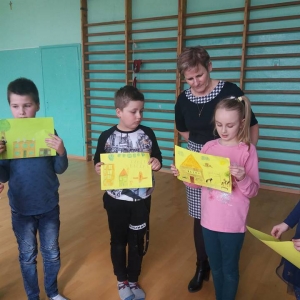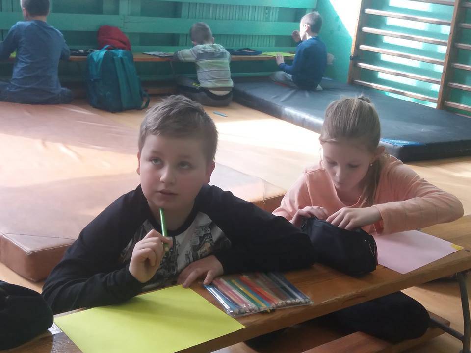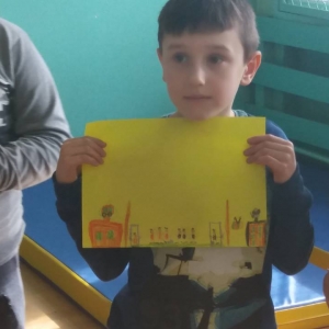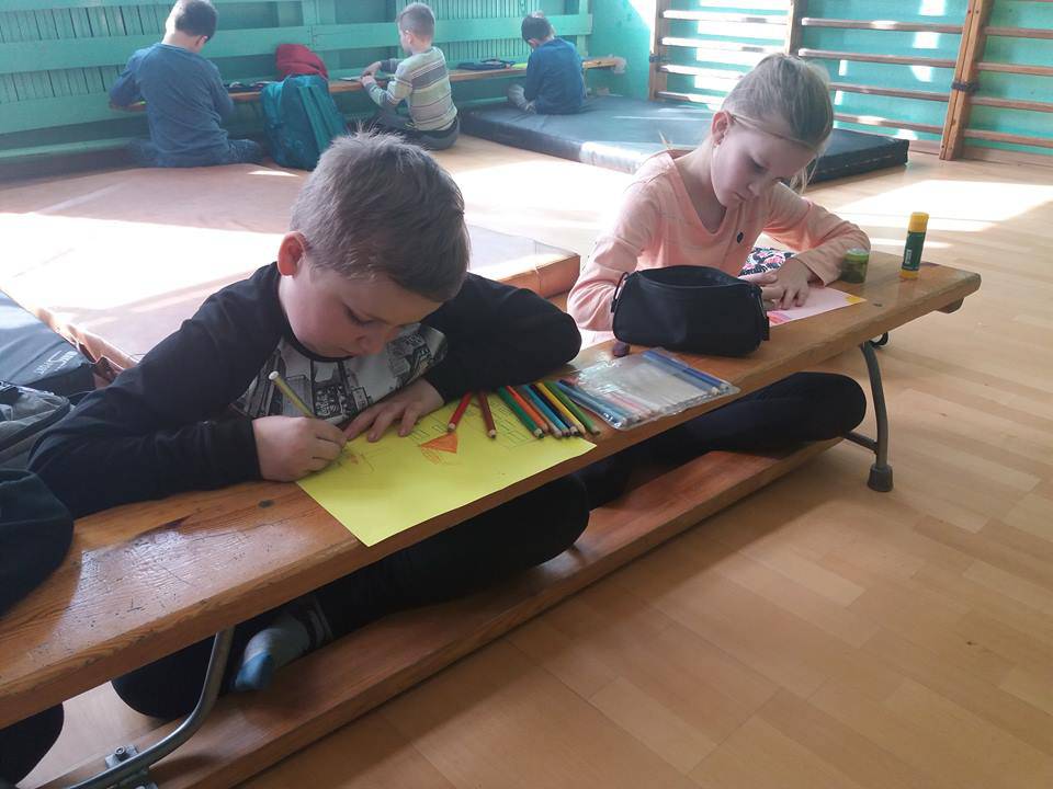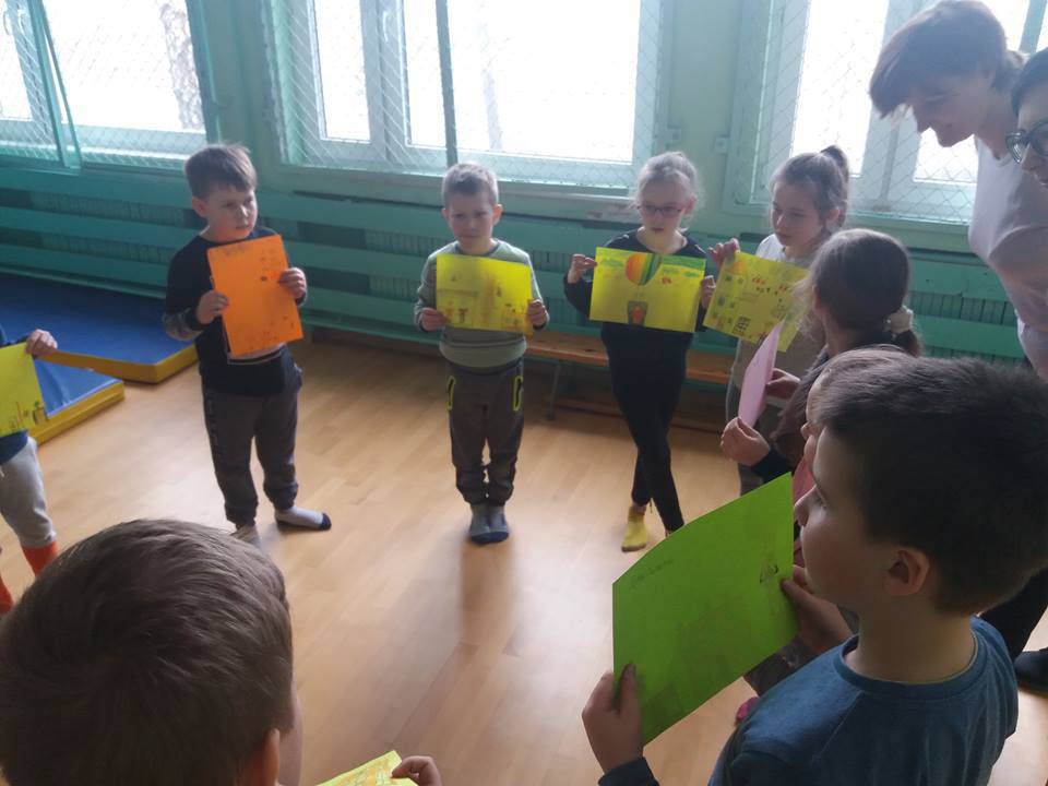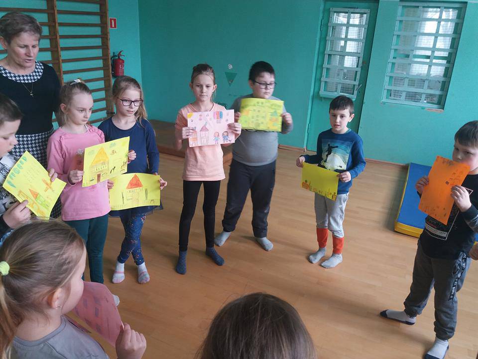 Po wysłuchaniu opowiadania, każde dziecko miało za zadanie narysować to co może jeszcze zobaczyć z wysokiego drzewa. Prace uczniów ukazały bogatą wyobraźnię, różnorodne spojrzenie na świat. Każda z prac została wnikliwie omówiona.
