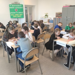 W rywalizacji uczestniczyło siedem trzyosobowych drużyn ze szkół podstawowych z Baszkowa, Kobylina, Kuklinowa, Smolic, Zalesia Małego oraz Zdun. Wykazywali się znajomością lektury ,,Cukierku, ty łobuzie". Pytania konkursowe przygotowała emerytowana polonistka Pani Dorota Krajewska. Zawodnicy jak zawsze byli świetnie przygotowani. Do ostatniego zadania trwała walka o zwycięstwo. Podium konkursowe zdobyli: 1 miejsce - SP w Baszkowie , 2 miejsce - SP w Smolicach , 3 miejsce- SP(2) w Kobylinie.