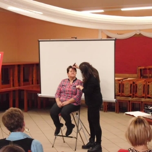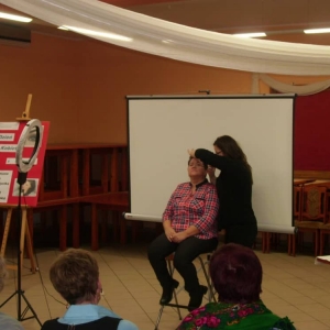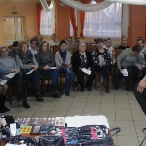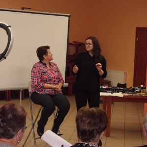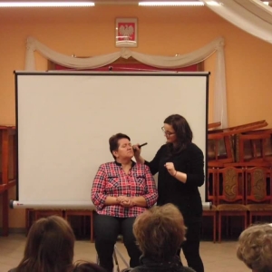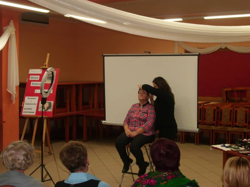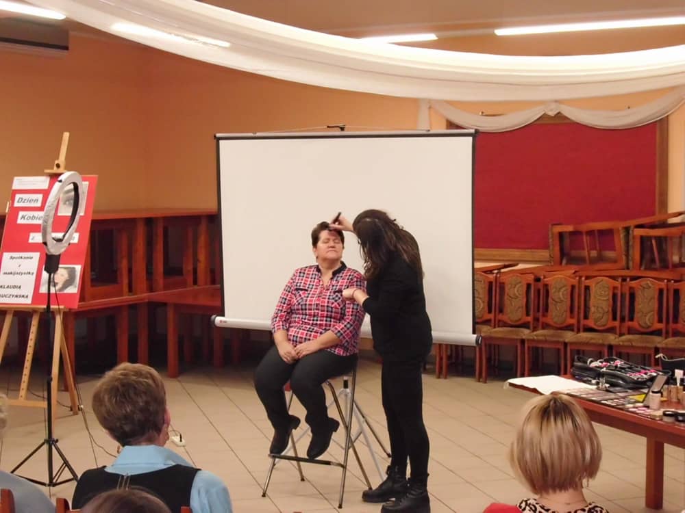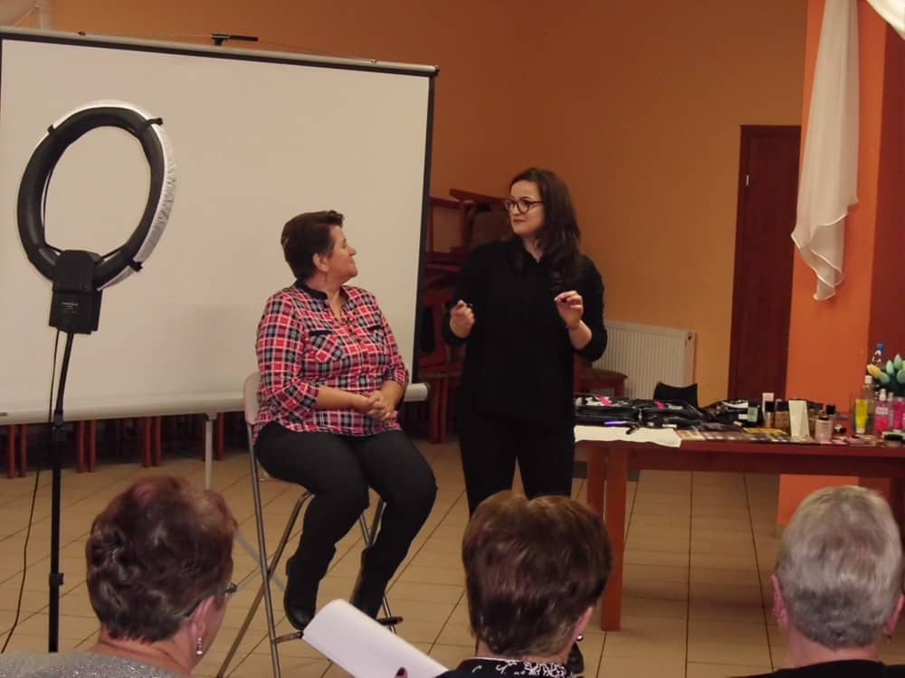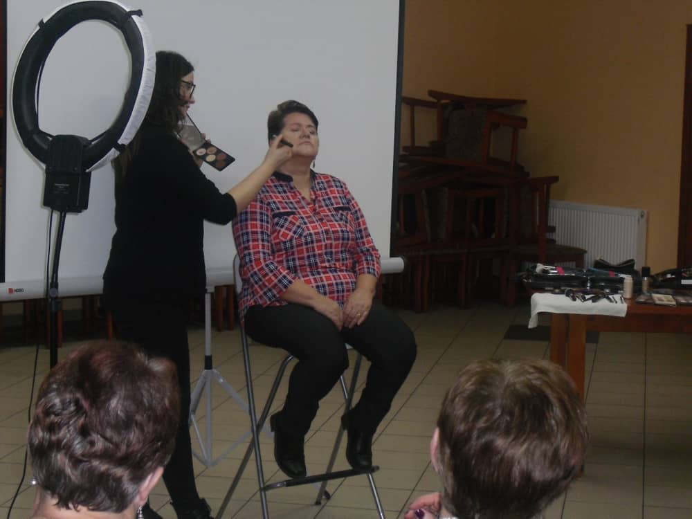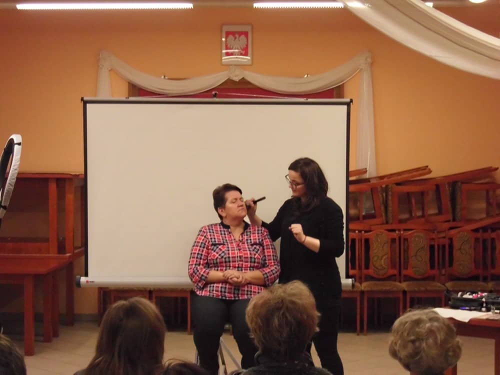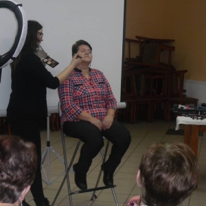 Podczas spotkania jedna z naszych czytelniczek- pani Maria, została modelką. To na jej twarzy został wykonany makijaż dzienny oraz wieczorowy. Prowadząca wskazywała różnice między jednym, a drugim. Zdradzała triki kosmetyczne dzięki którym możemy wyeksponować to co jest w nas piękne. Wszyscy byli pod ogromnym wrażeniem. Klaudia Kuczyńska odpowiadała również na pytania uczestniczek. Zdradziła jak dobrać podkład do naszej cery, których kosmetyków lepiej unikać, a które warto kupić.