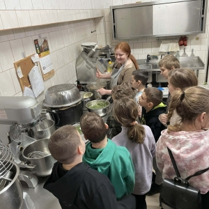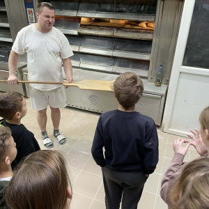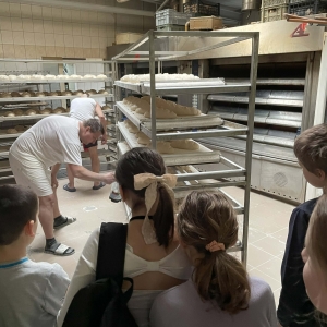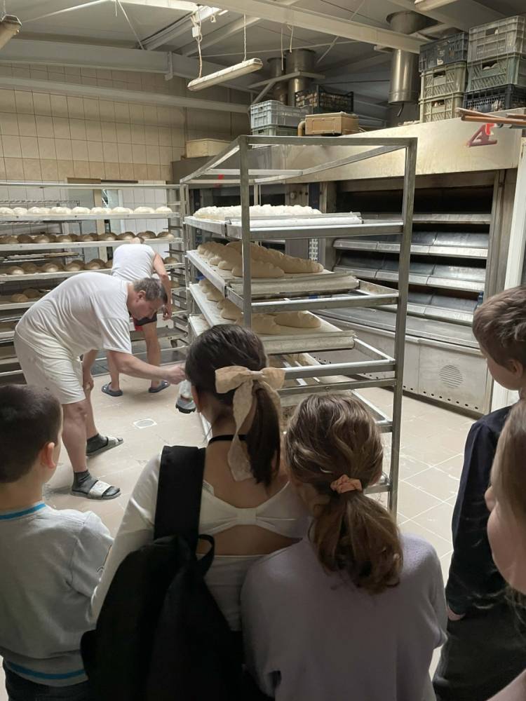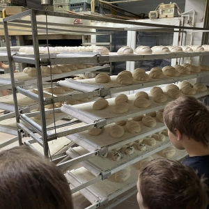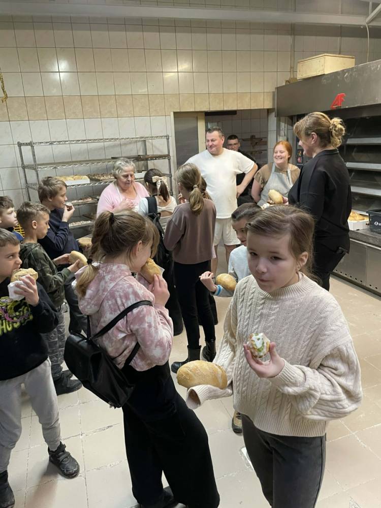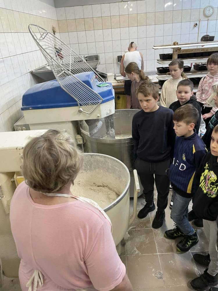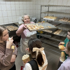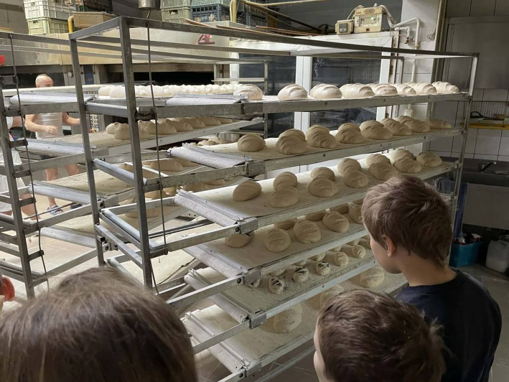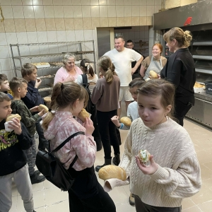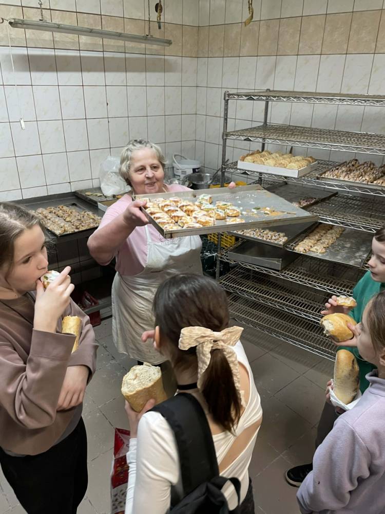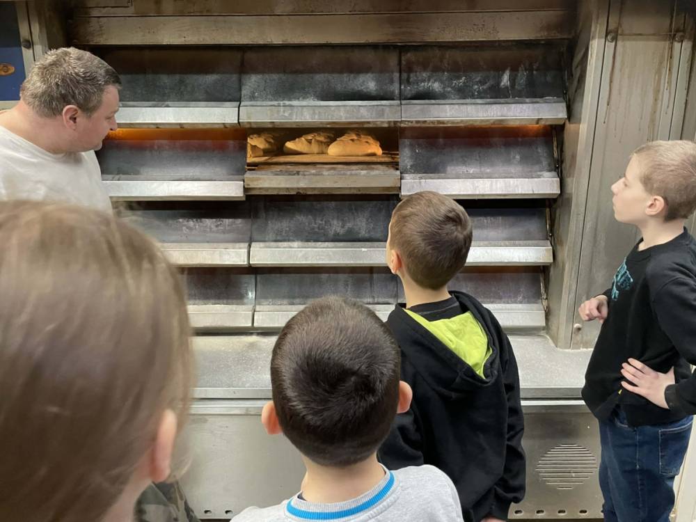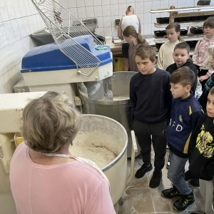 Następnie udaliśmy się do Piekarni Państwa Kwiecińskich. Pani Jadwiga Kwiecińska wspólnie ze współpracownikami pokazali nam cały proces wypiekania chleba. Poznanie stuletniej historii rodzinnej firmy oraz obserwacja ewolucji wypieku chleba – od pracy rąk po nowoczesne maszyny – to bezcenna wiedza.
