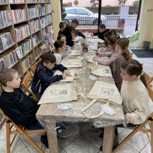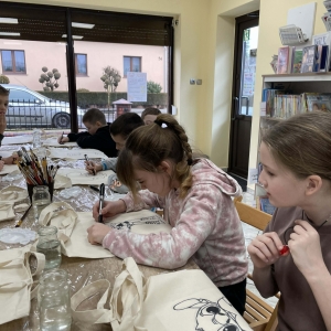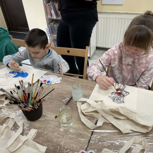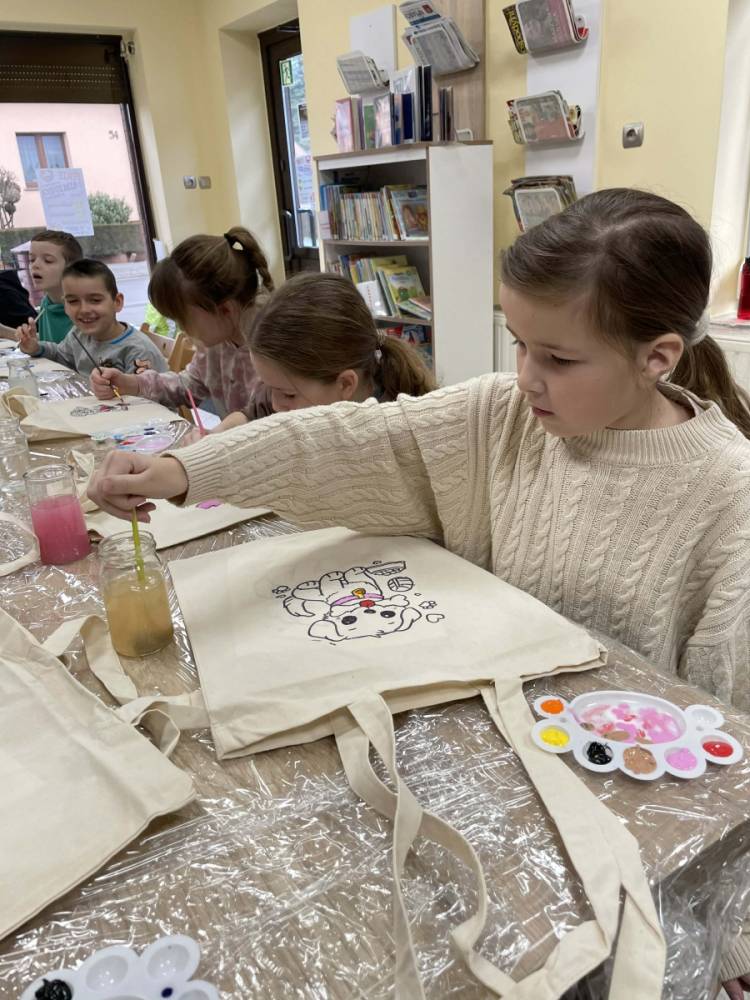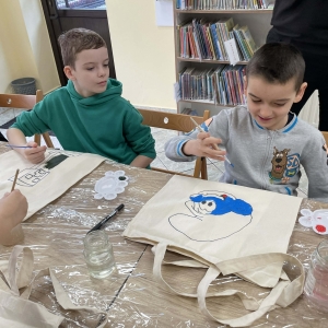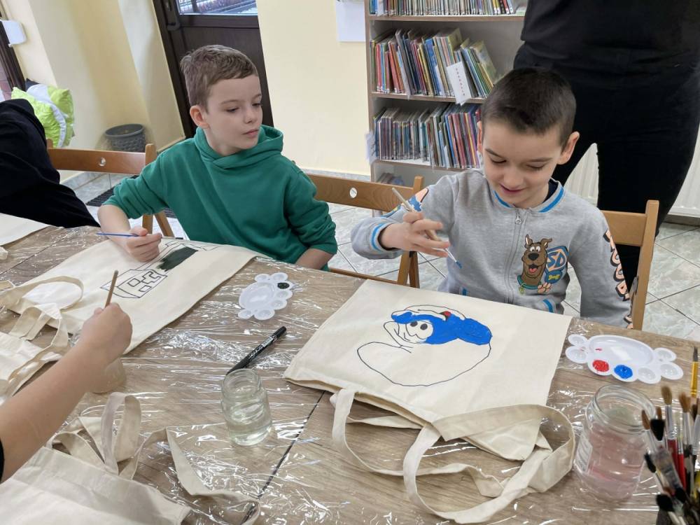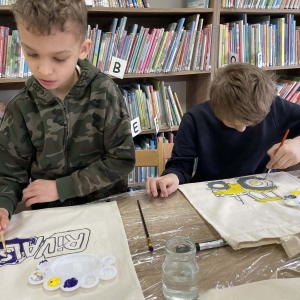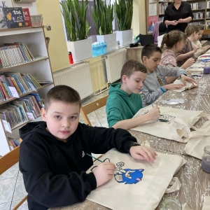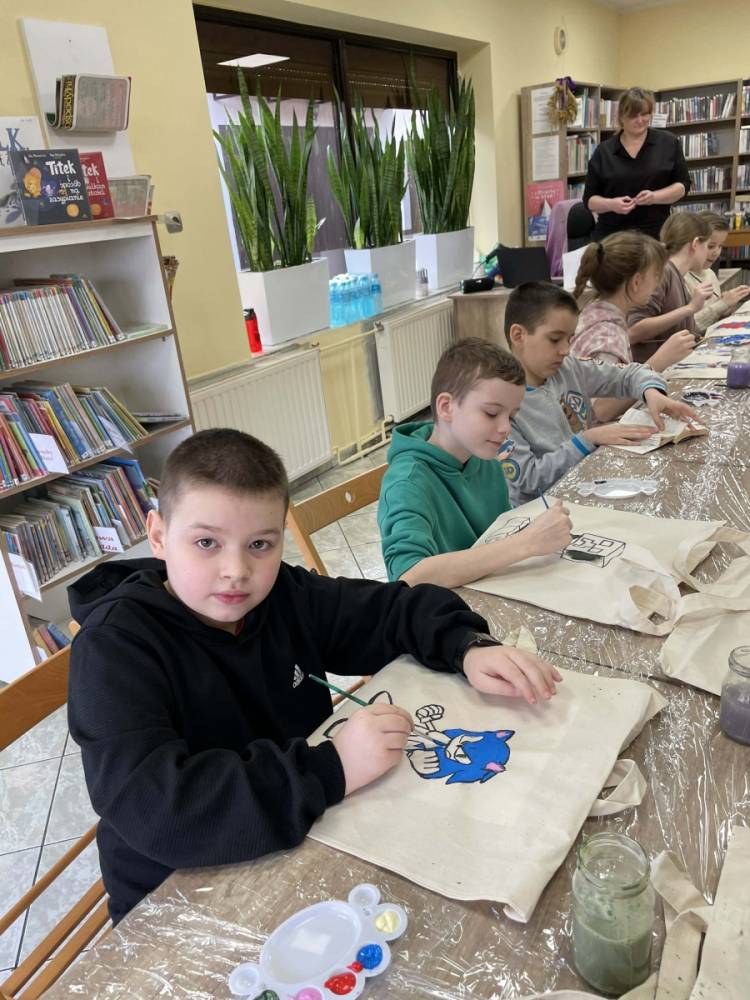 Wtorek 24 lutego był pierwszym dniem Ferii w Bibliotece w Filii Bibliotecznej w Smolicach pt.: Smaczny Wtorek. W tym dniu dzieci biorące udział w zajęciach malowały torby. Ozdabianie własnych, ekologicznych toreb to świetny sposób na wyrażenie kreatywności. Uczestnicy zmienili zwykłe płócienne torby w unikatowe dzieła sztuki. Dzięki farbom i wyobraźni powstały ekologiczne akcesoria, które z dumą można nosić na zakupy.