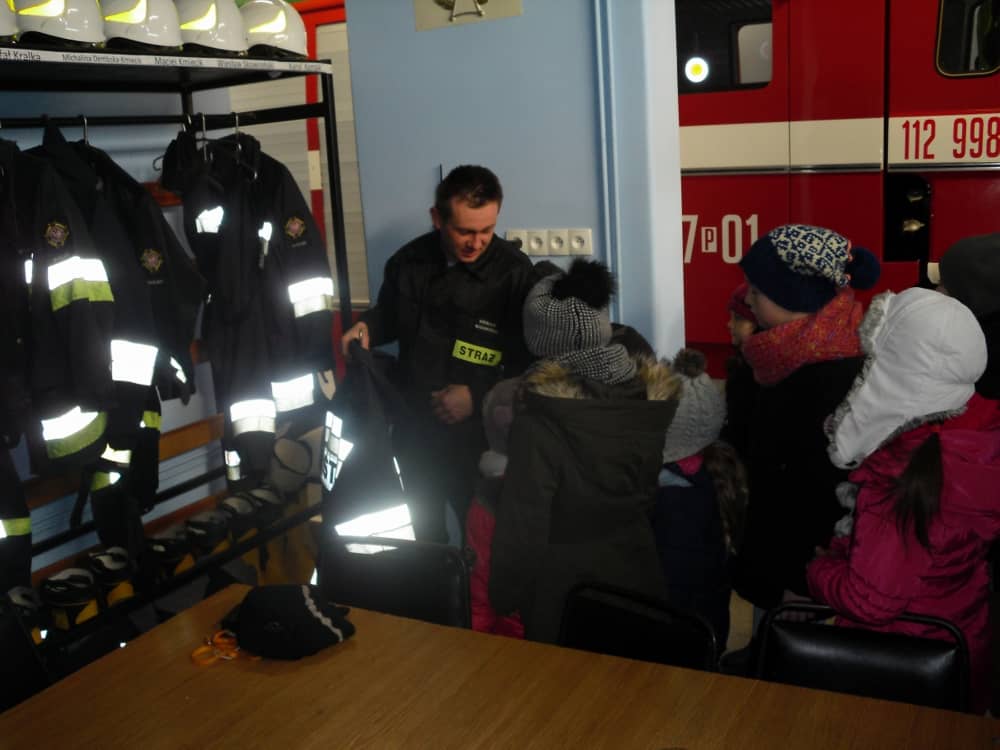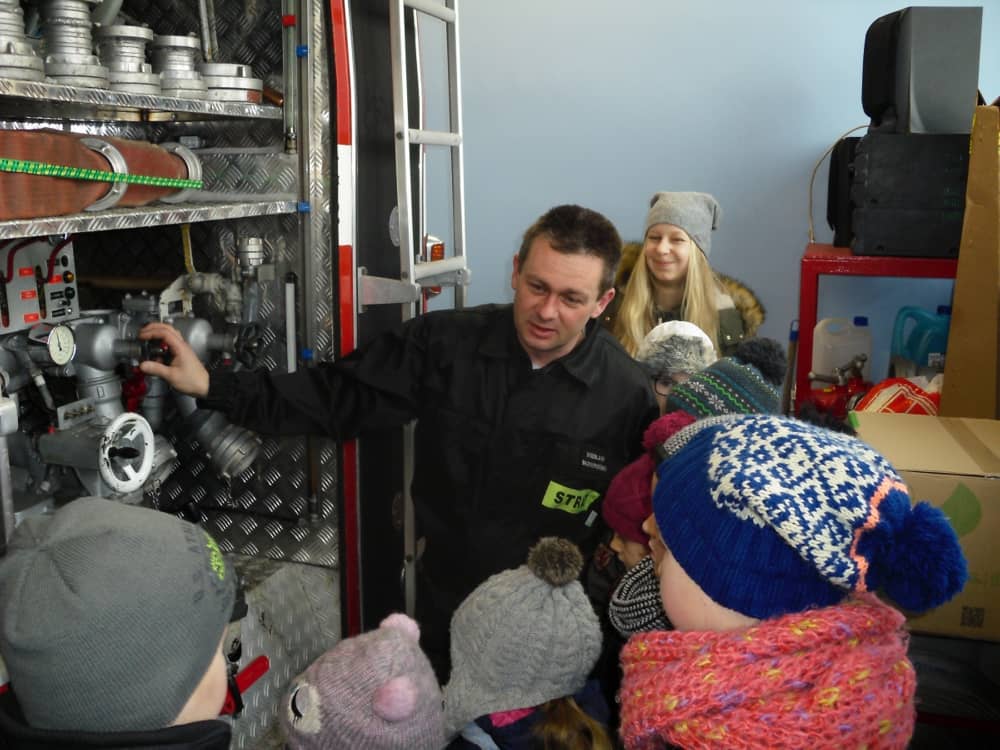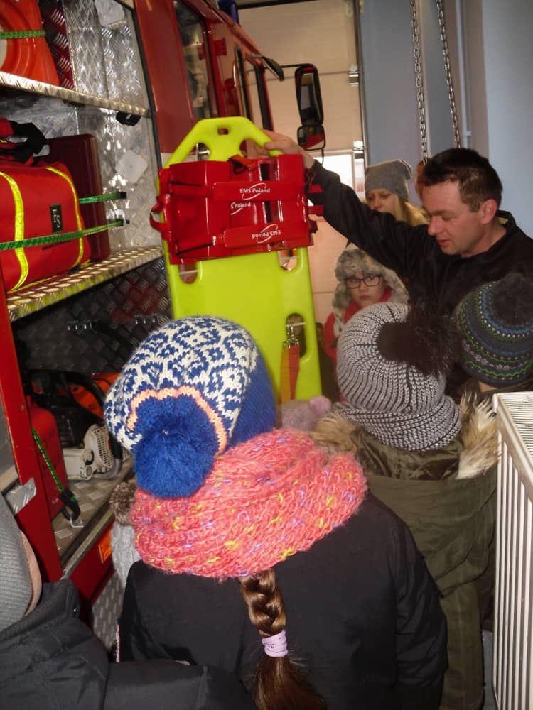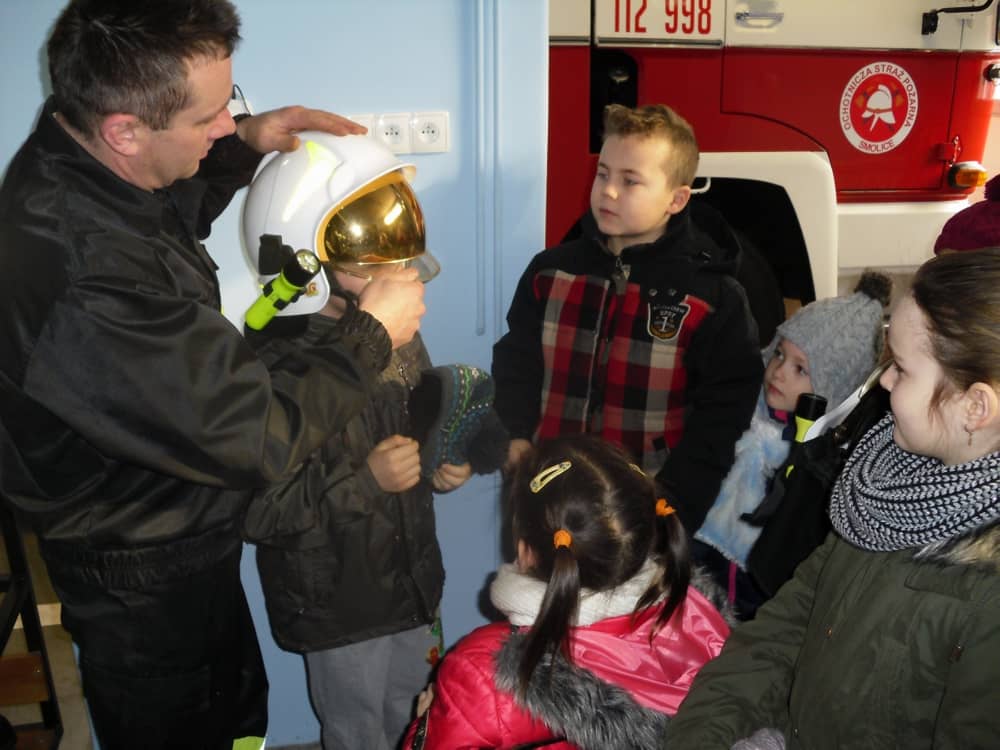 W piątek, 10 lutego odwiedziliśmy strażaków z Ochotniczej Straży Pożarnej w Smolicach. Spotkanie poprowadził Pan Wiesław Skowroński, prezes OSP Smolice, który w interesujący sposób zapoznał nas ze swoją pracą. Mieliśmy okazję obejrzeć samochód strażacki, a nawet zajrzeliśmy do jego środka. Okazał się dużo większy i pojemniejszy niż sądziliśmy.