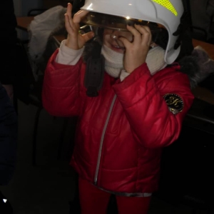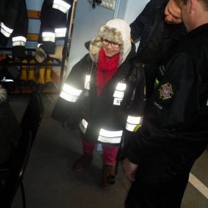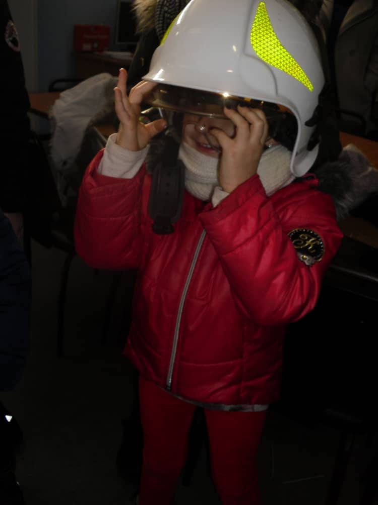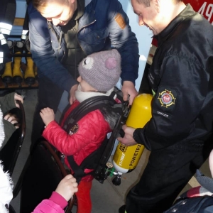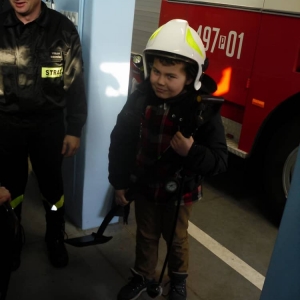 Dużo radości sprawił pokaz umundurowania, a w szczególności możliwość przymierzenia hełmu i odzieży strażackiej.