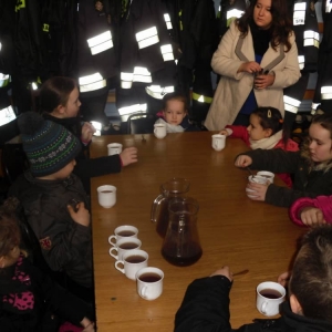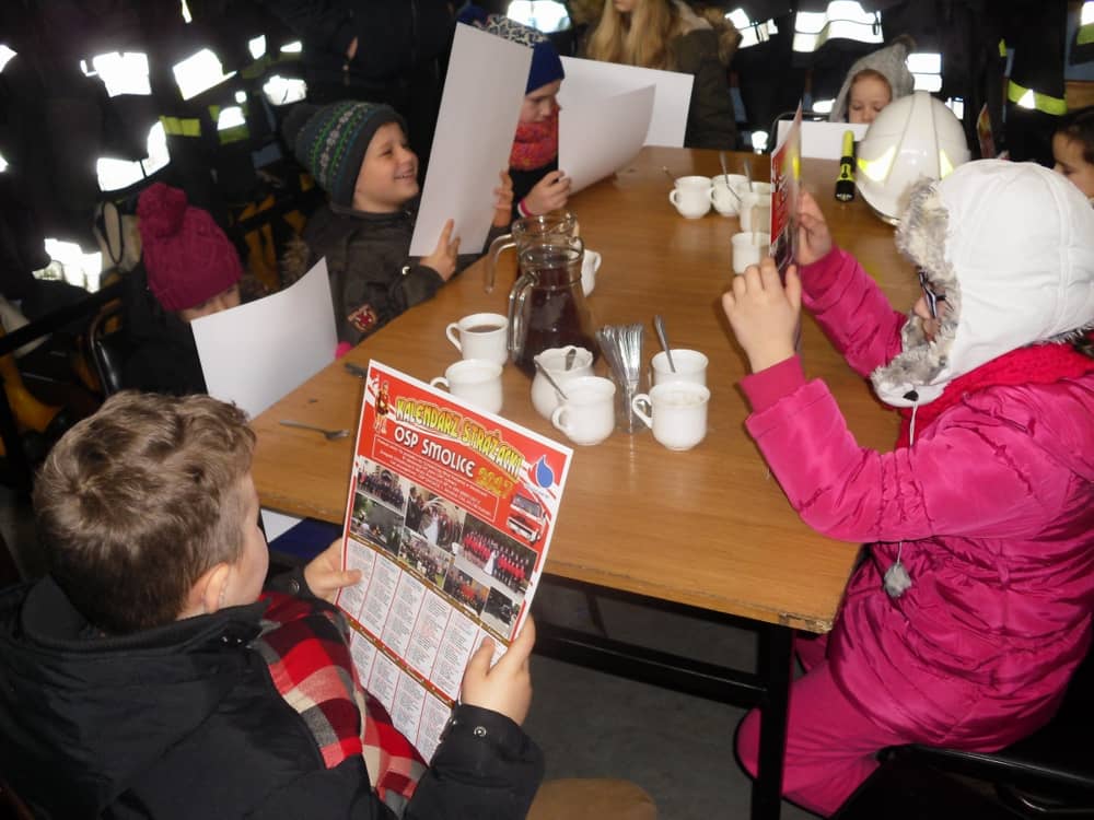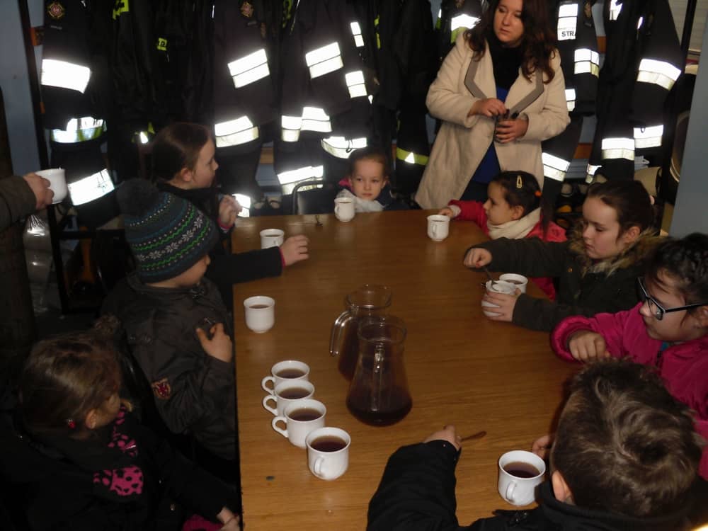 Na zakończenie wizyty zostaliśmy poczęstowani herbatą oraz otrzymaliśmy kalendarze strażackie.