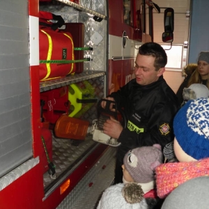 Zobaczyliśmy jakie niezbędne narzędzia znajdują się wewnątrz wozu strażackiego. Podczas wizyty dowiedzieliśmy się wielu ciekawych rzeczy.