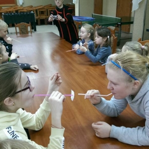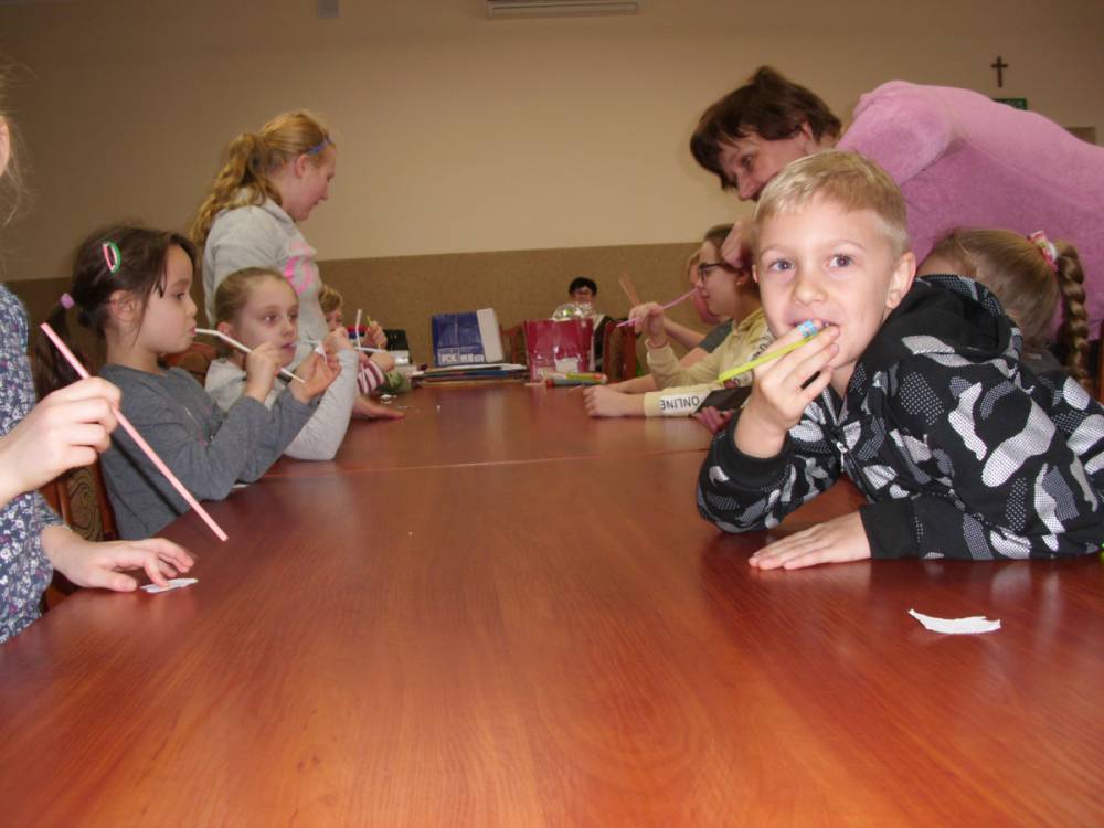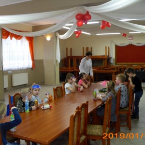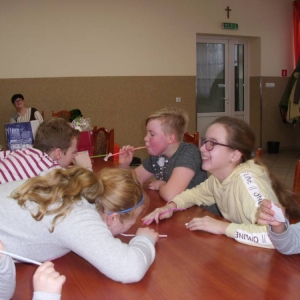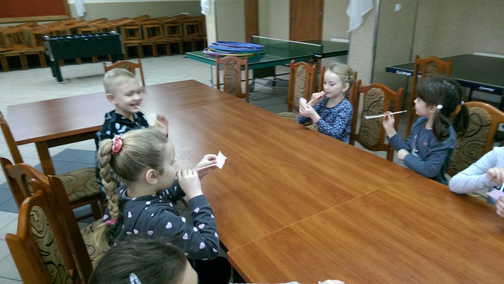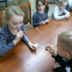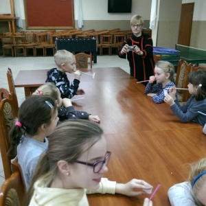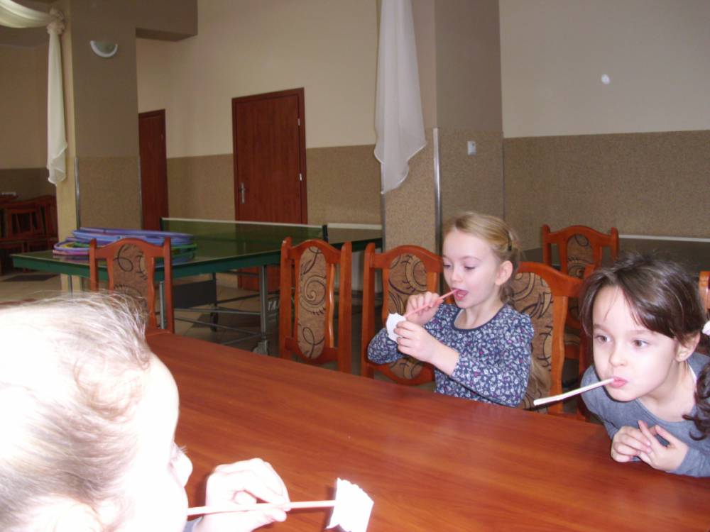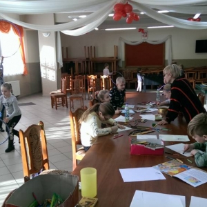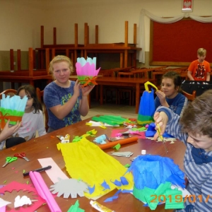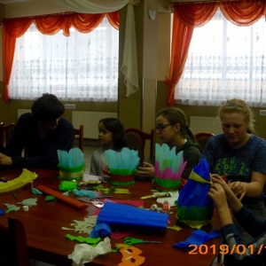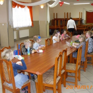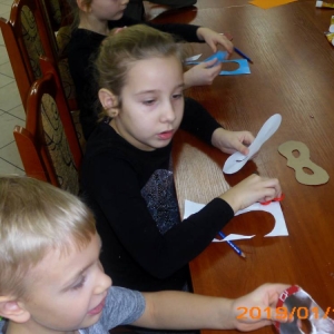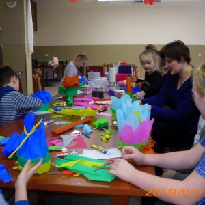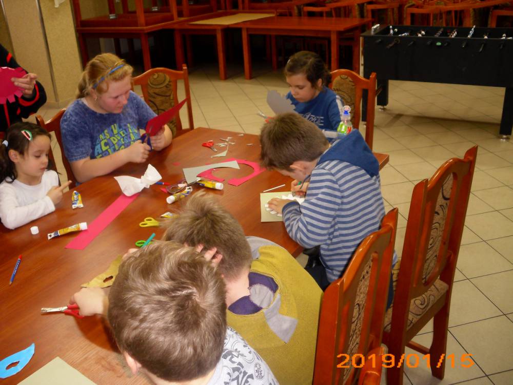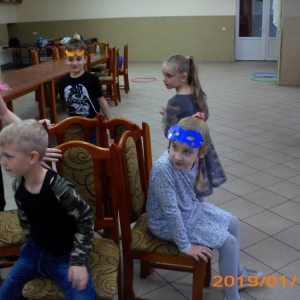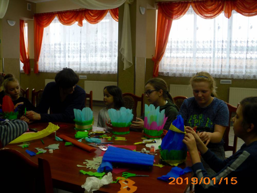 W kolejnym dniu dzieci wykonywały prace manualne. Ponieważ jest czas karnawału, nie mogło zabraknąć masek karnawałowych. Dzieci wycinały je, a następnie ozdabiały według własnego pomysłu. Powstały bardzo kolorowe dzieła, często przedstawiające postacie z bajek. W drugiej części spotkania uczestnicy robili koszyczki na cukierki dla babci i dziadka, które idealnie nadawały się na prezent.