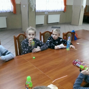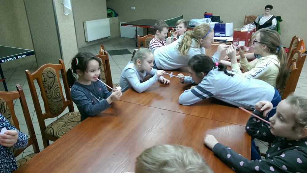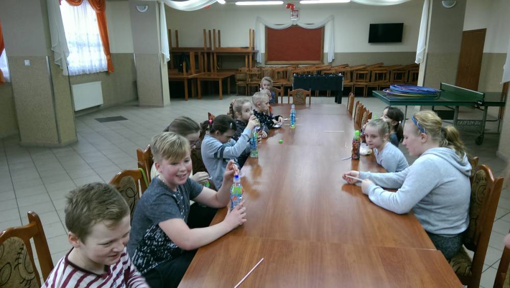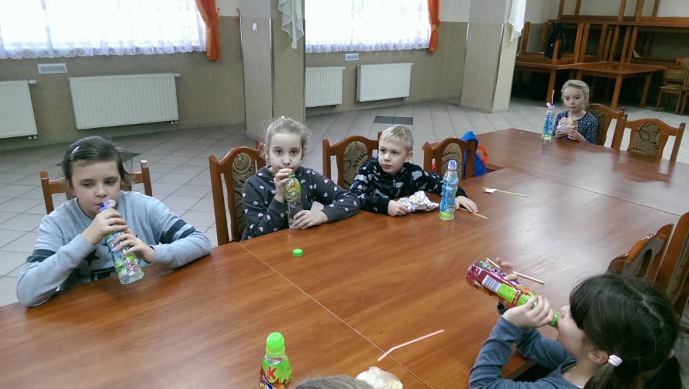 Podczas organizowanych gier i zabaw nie mogło zabraknąć słodkiego poczęstunku, który dodawał energii do dalszej aktywności.