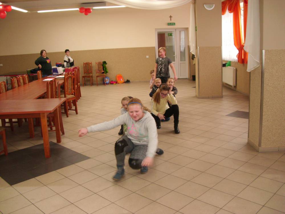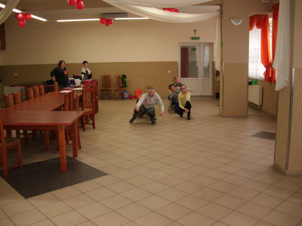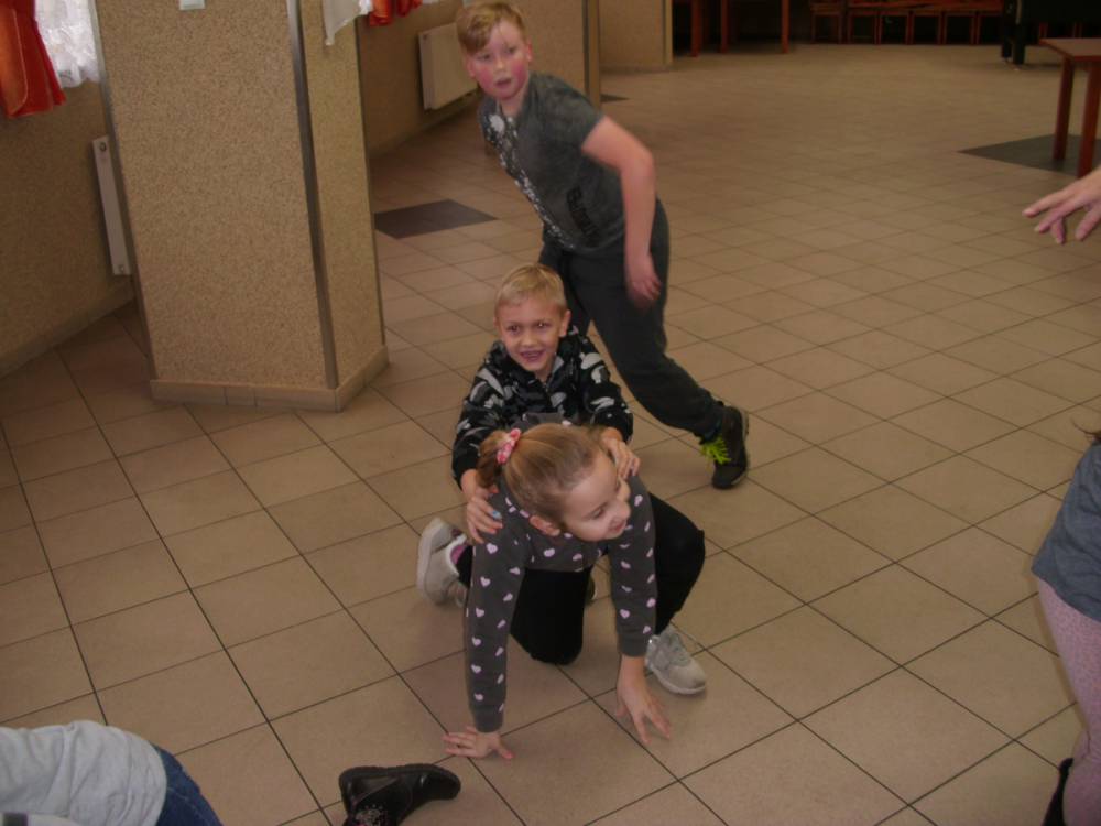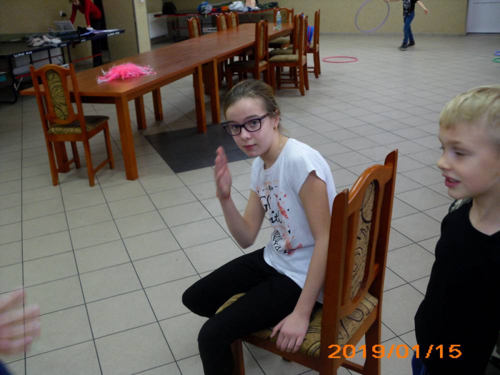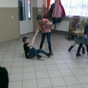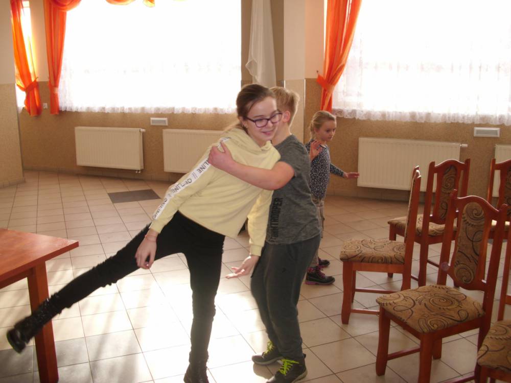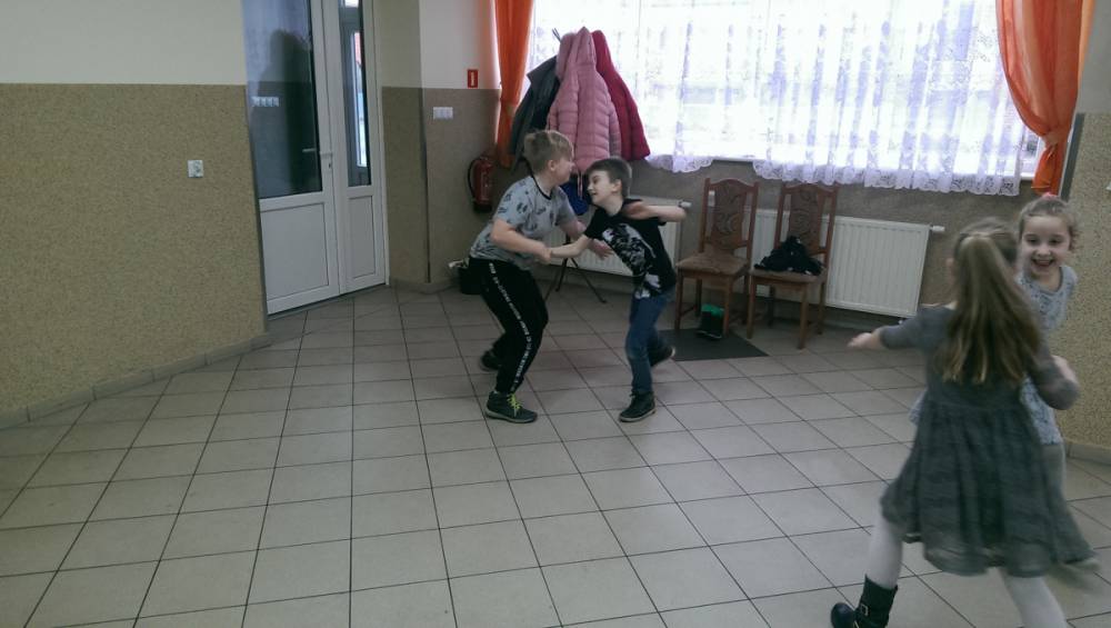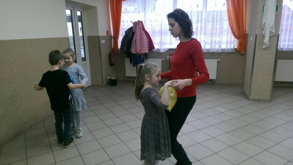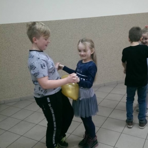 W ostatnim dniu zajęcia odbyły się przy muzyce. Na początku wszyscy tańczyli kaczuszki, następnie uczyli się tańczyć makarenę. Po początkowych trudnościach udało się opanować kroki. Nie zabrakło tańca z balonem, tańca na gazecie. Bardzo dużym zainteresowaniem cieszyło się koło fortuny.
