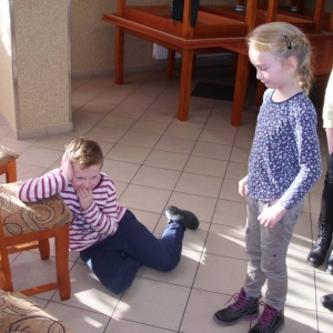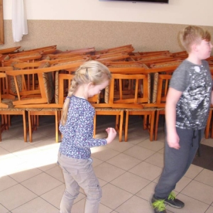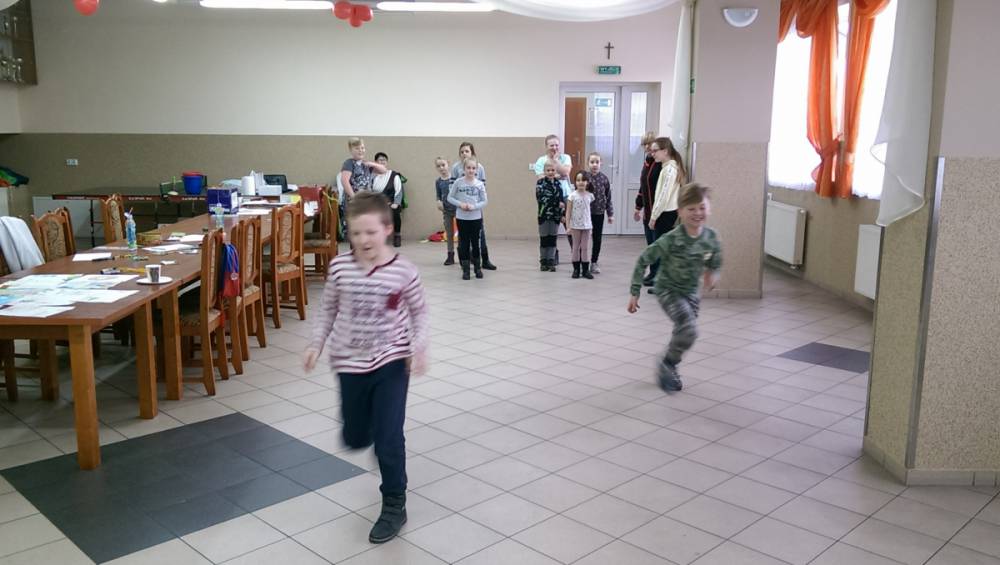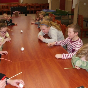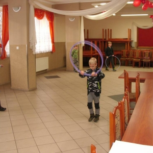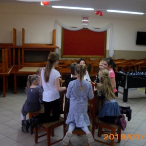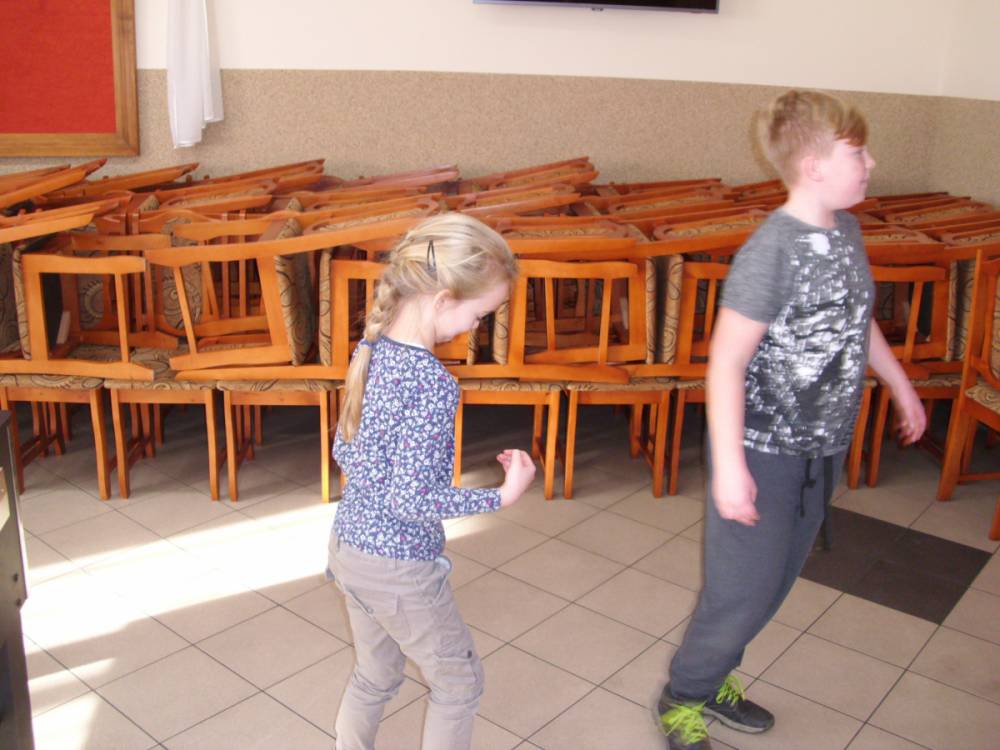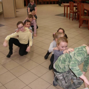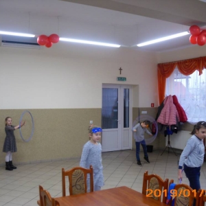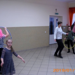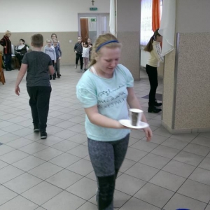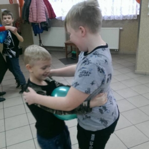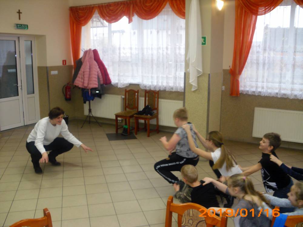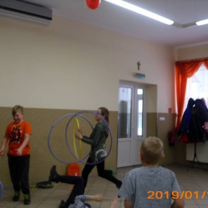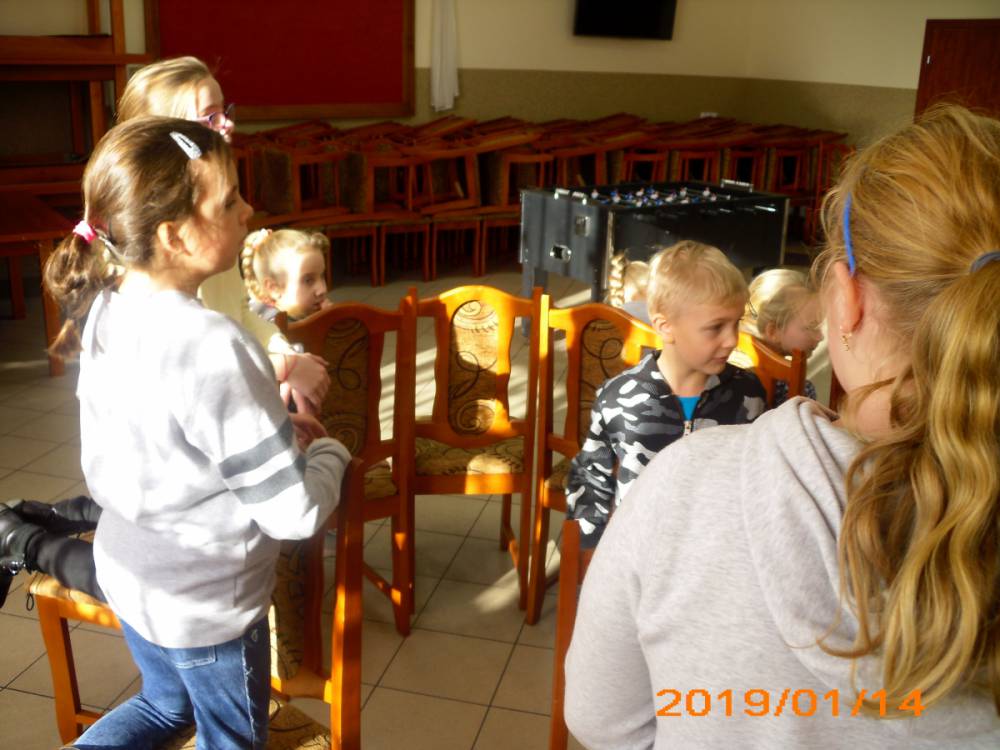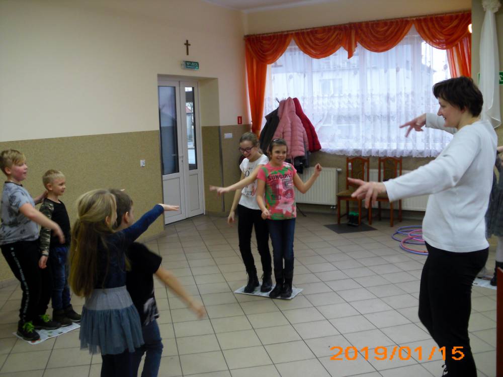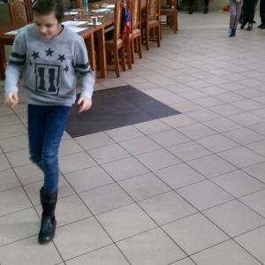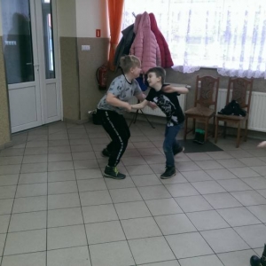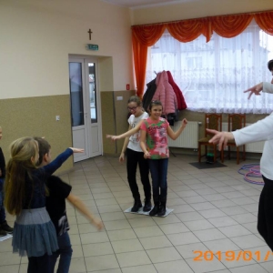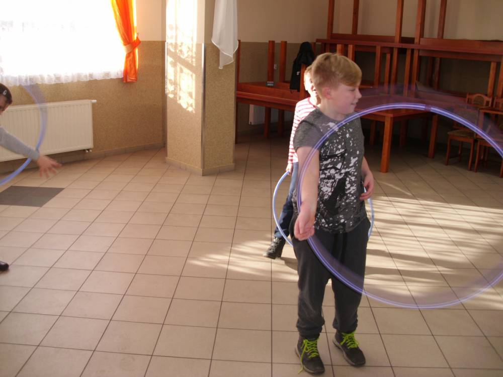 W ostatnim dniu zajęcia odbyły się przy muzyce. Na początku wszyscy tańczyli kaczuszki, następnie uczyli się tańczyć makarenę. Po początkowych trudnościach udało się opanować kroki. Nie zabrakło tańca z balonem, tańca na gazecie. Bardzo dużym zainteresowaniem cieszyło się koło fortuny.