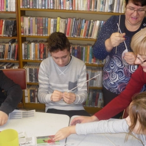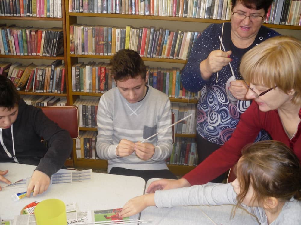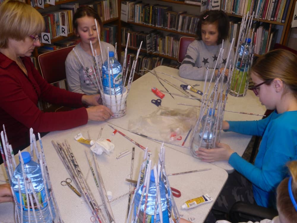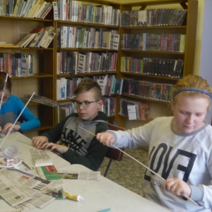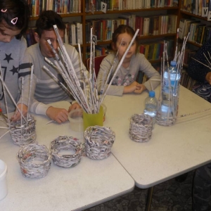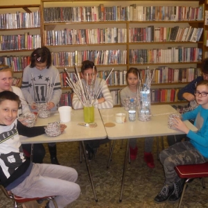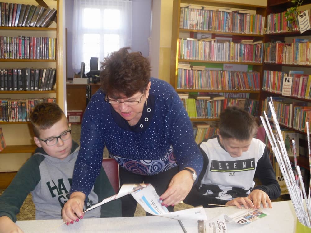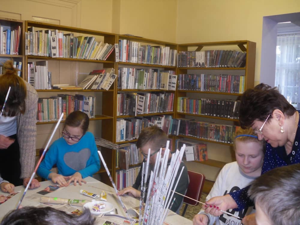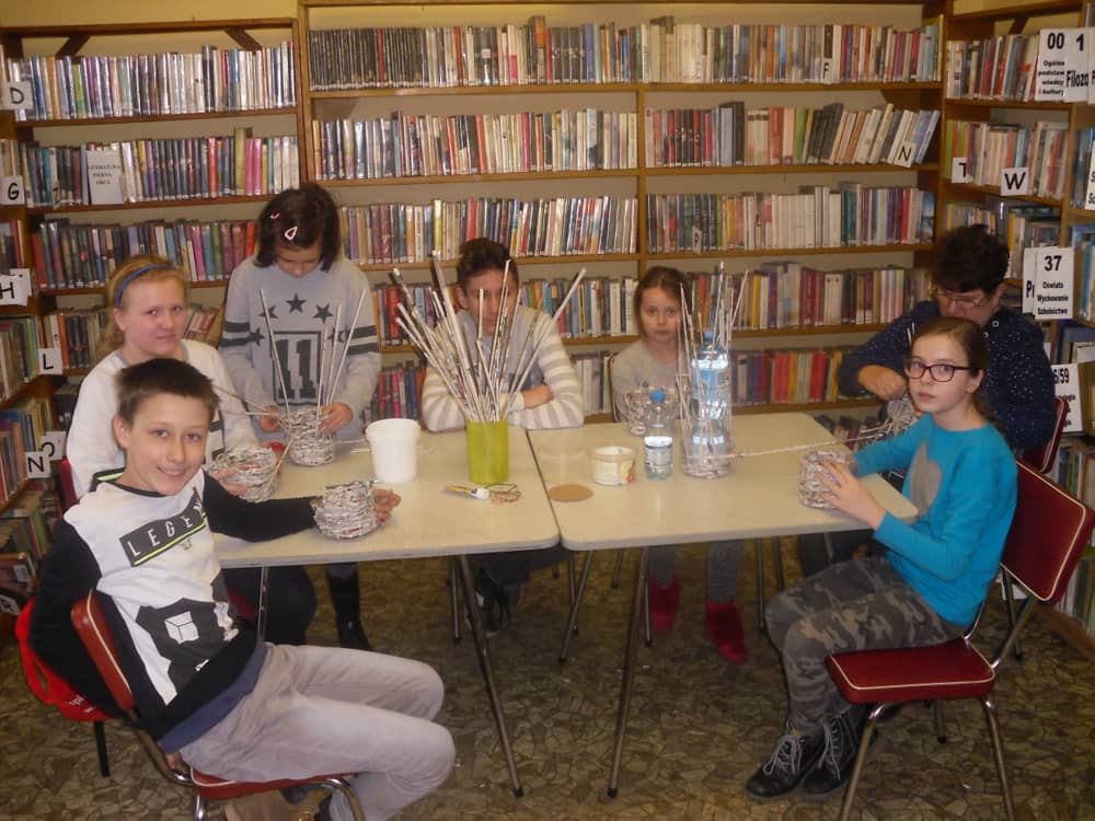 Jak co roku Filia Biblioteczna w Łagiewnikach zorganizowała ferie dla dzieci. W pierwszym dniu tj. 12 lutego dzieci gościły panią Marię Pomogier z Łagiewnik, której pasją jest rękodzieło. Pani Maria pokazała jak z gazet można zrobić koszyki z papierowej wikliny. Do ich wykonania potrzebne były rurki zwijane z papieru. Po wykonaniu 220 sztuk rurek według wskazówek instruktorki, dzieci przystąpiły do dalszej pracy. Pod czujnym okiem pani Marii i przy niewielkiej pomocy pań bibliotekarek uczestnicy rozpoczęli wyplatanie koszyczków. Młodzi adepci sztuki ludowej przekonali się, że do tworzenia wiklinowych cudów trzeba dużo czasu, dokładności, a zwłaszcza cierpliwości. Gdy koszyk był już wypleciony, pani Maria pokazała, w jaki sposób należy zakończyć dzieło, co okazało się najtrudniejszą rzeczą w całym jego wykonaniu. Po zakończeniu warsztatów dzieci podziękowały instruktorce za wyjątkowo ciekawe i twórcze zajęcia. Organizatorzy również przyłączają się do tych podziękowań.