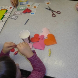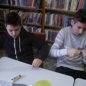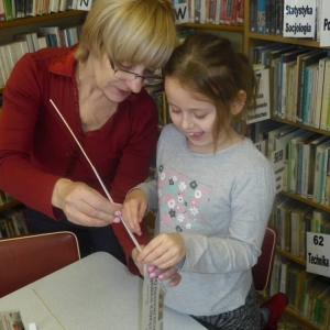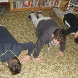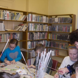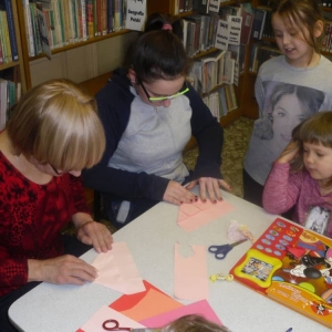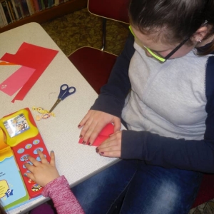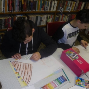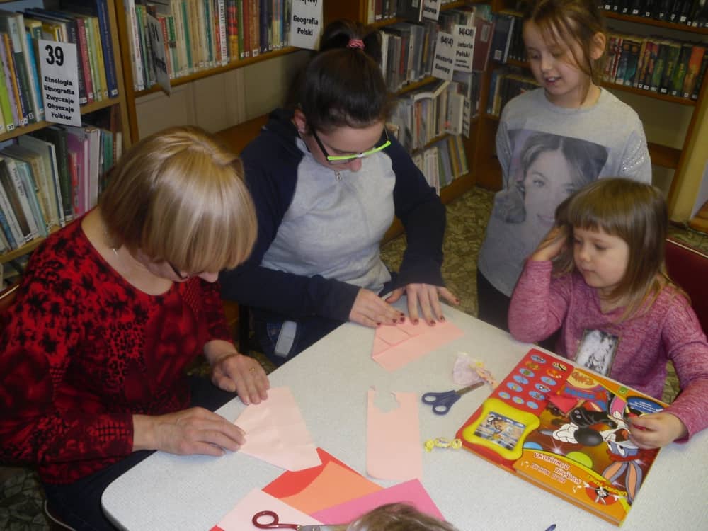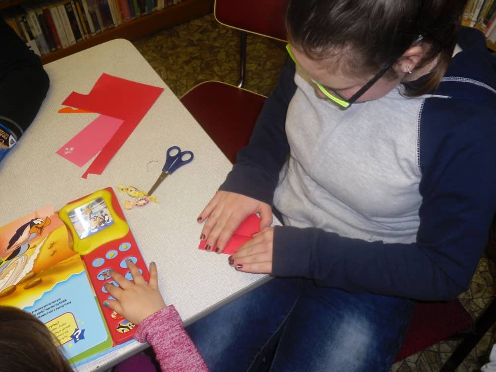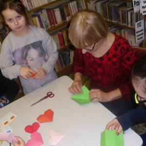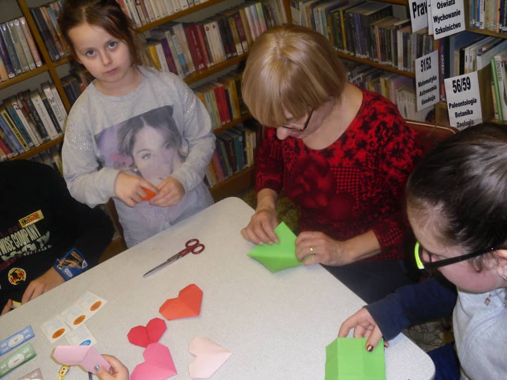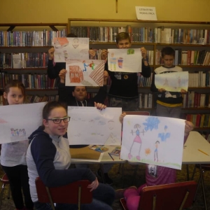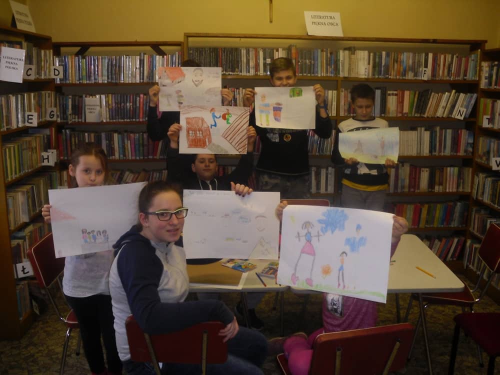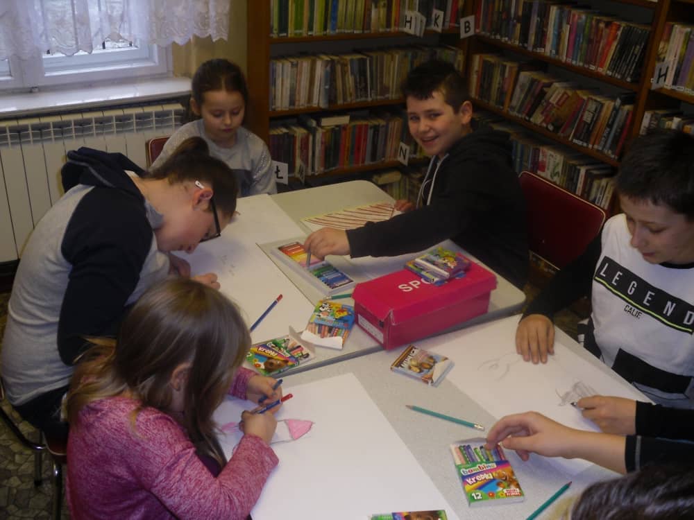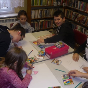 W kolejnym dniu Ferii z Biblioteką, w czwartek 15 lutego dzieci słuchały opowiadań z cyklu „Legendy morskie”. Na podstawie opowieści „Jak chleb w kamień się zmienił” i „Zamienieni w buki”, młodzi czytelnicy wykonywali ilustracje. Każdemu zapadła w pamięci inna scena, którą przenieśli z entuzjazmem na papier. Między kolejnymi opowiadaniami dzieci grały w kalambury, a także gry planszowe. Młodsze czytelniczki składały serca metodą origami. Wszyscy dla rozluźnienia ochoczo wykonywali serię ćwiczeń gimnastycznych i dobrze się bawili.