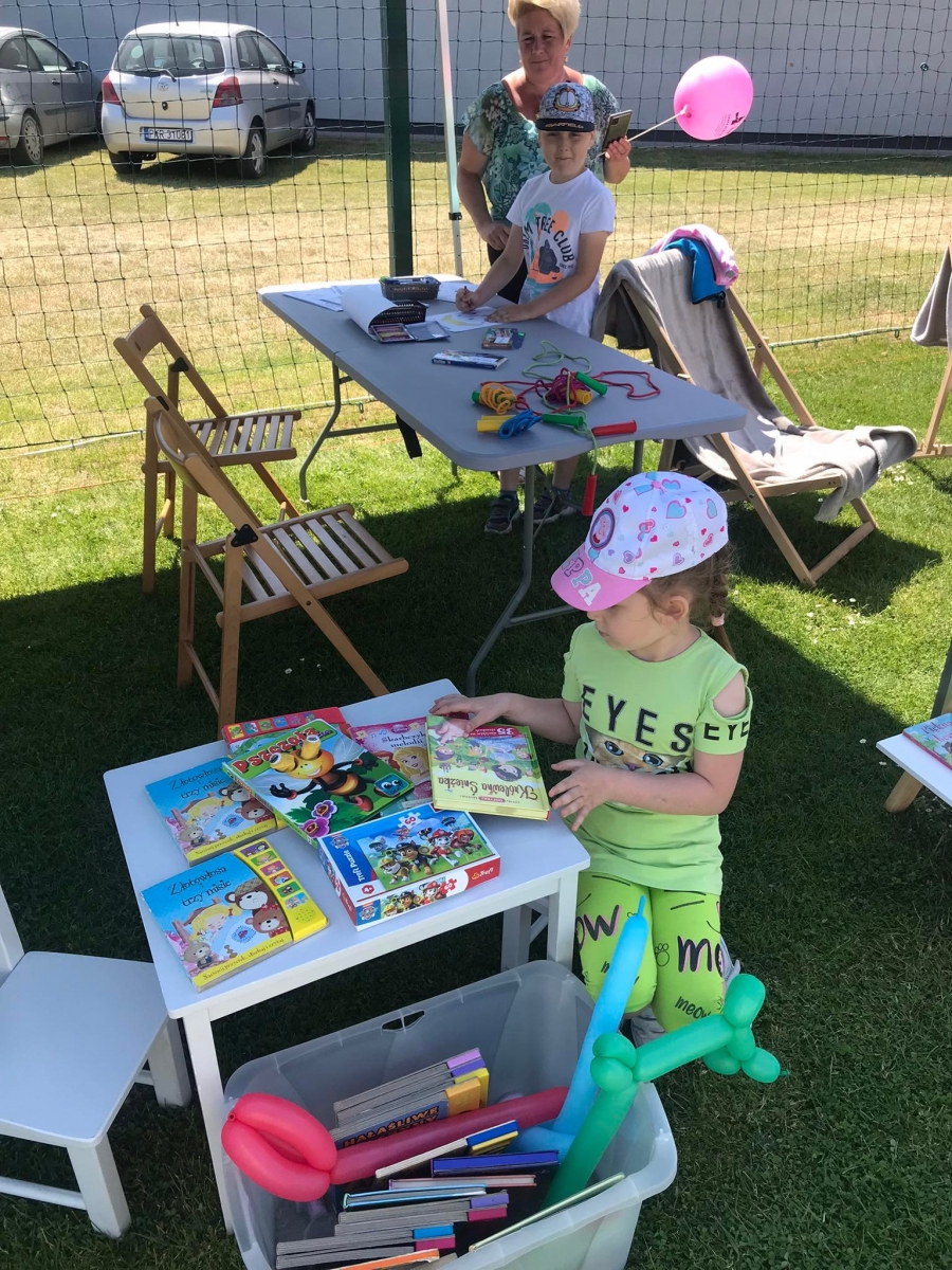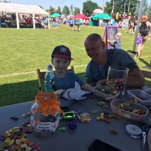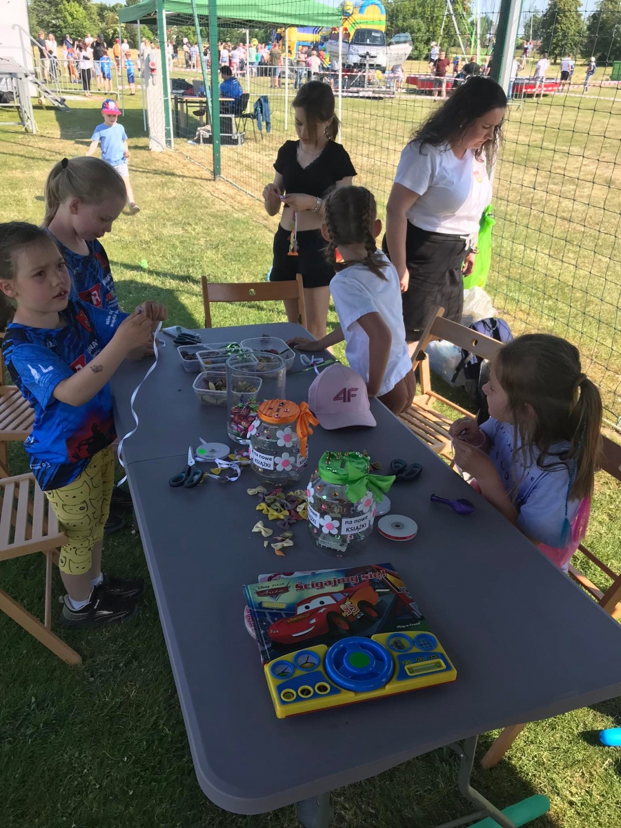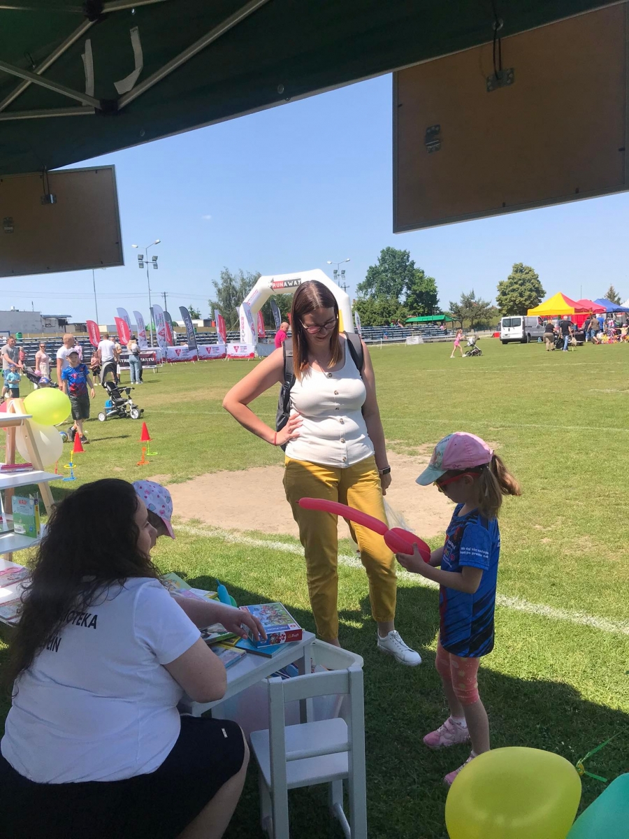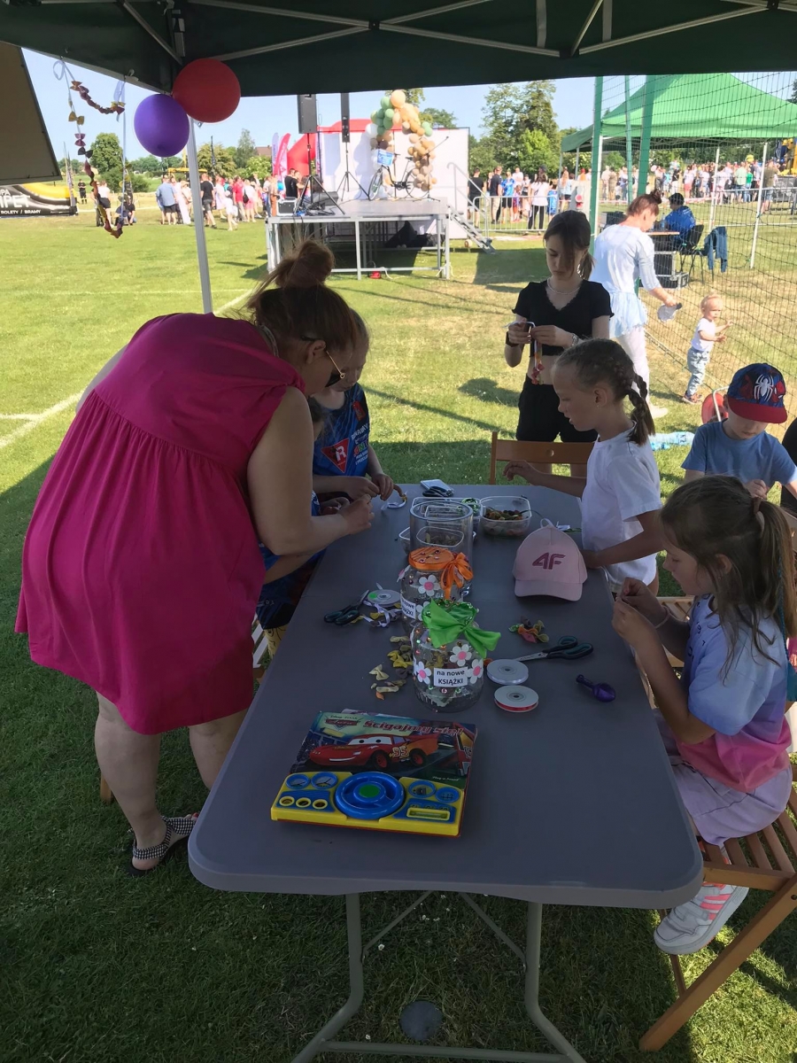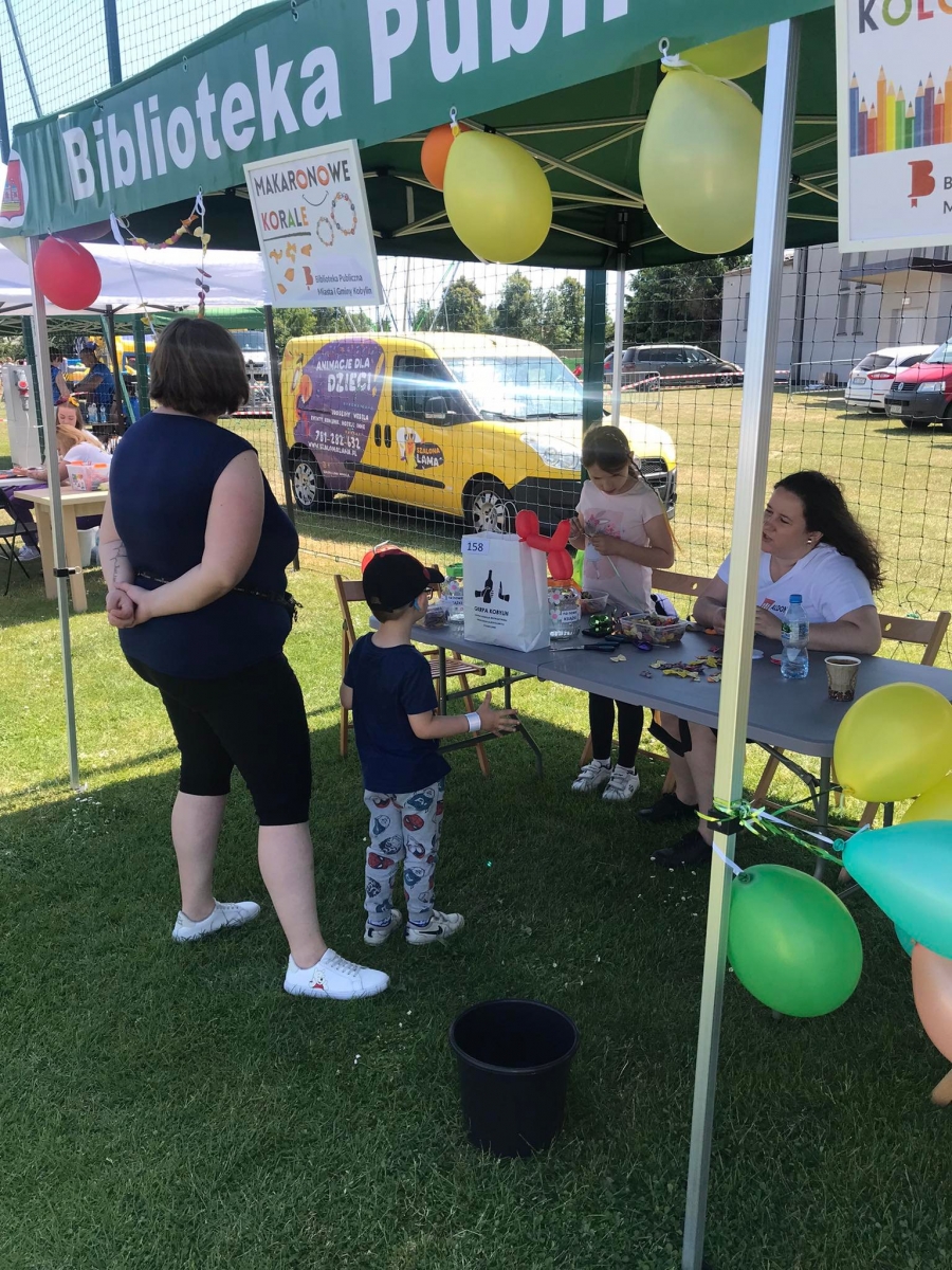 4 czerwca odbył się „Gminny Dzień Dziecka” organizowany przez Gminny Ośrodek Kultury oraz Urząd Miejski. Nasza biblioteka miała swoje stoisko na boisku, gdzie oferowaliśmy atrakcje dla najmłodszych – dmuchane balony, kolorowanki związane z naszym miastem, tworzenie makaronowych korali oraz oczywiści książki dźwiękowe i książki-zabawki.