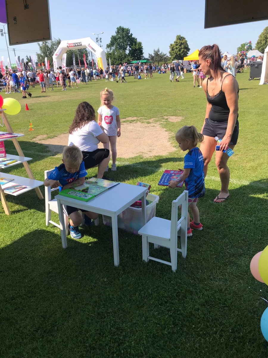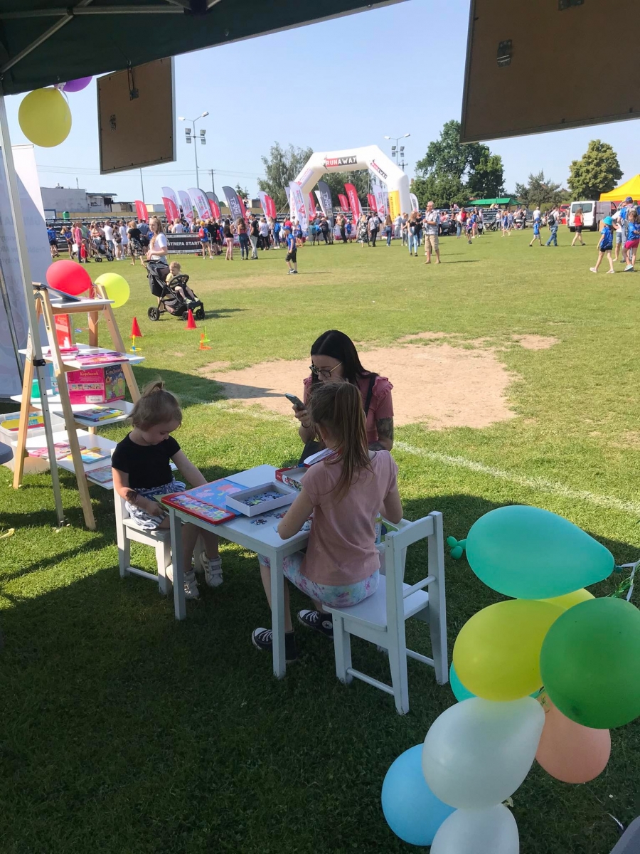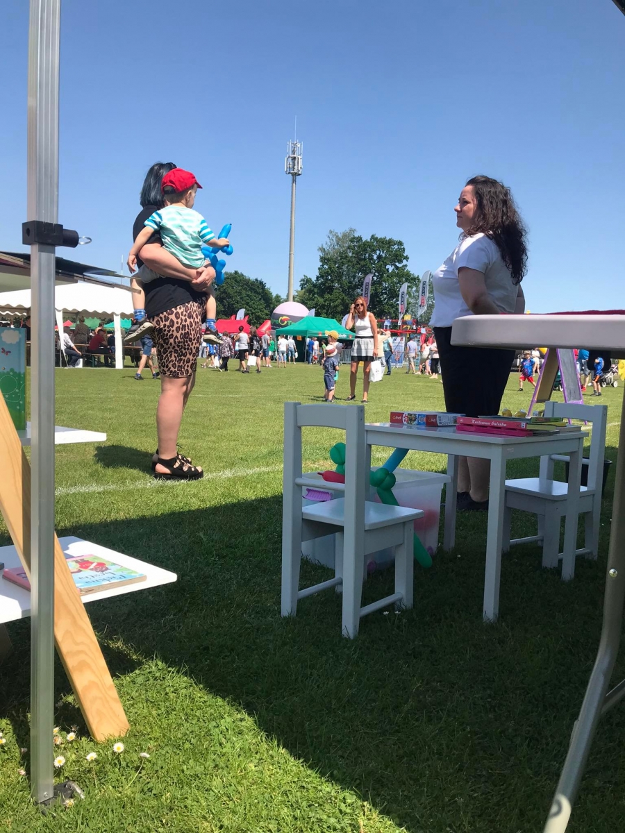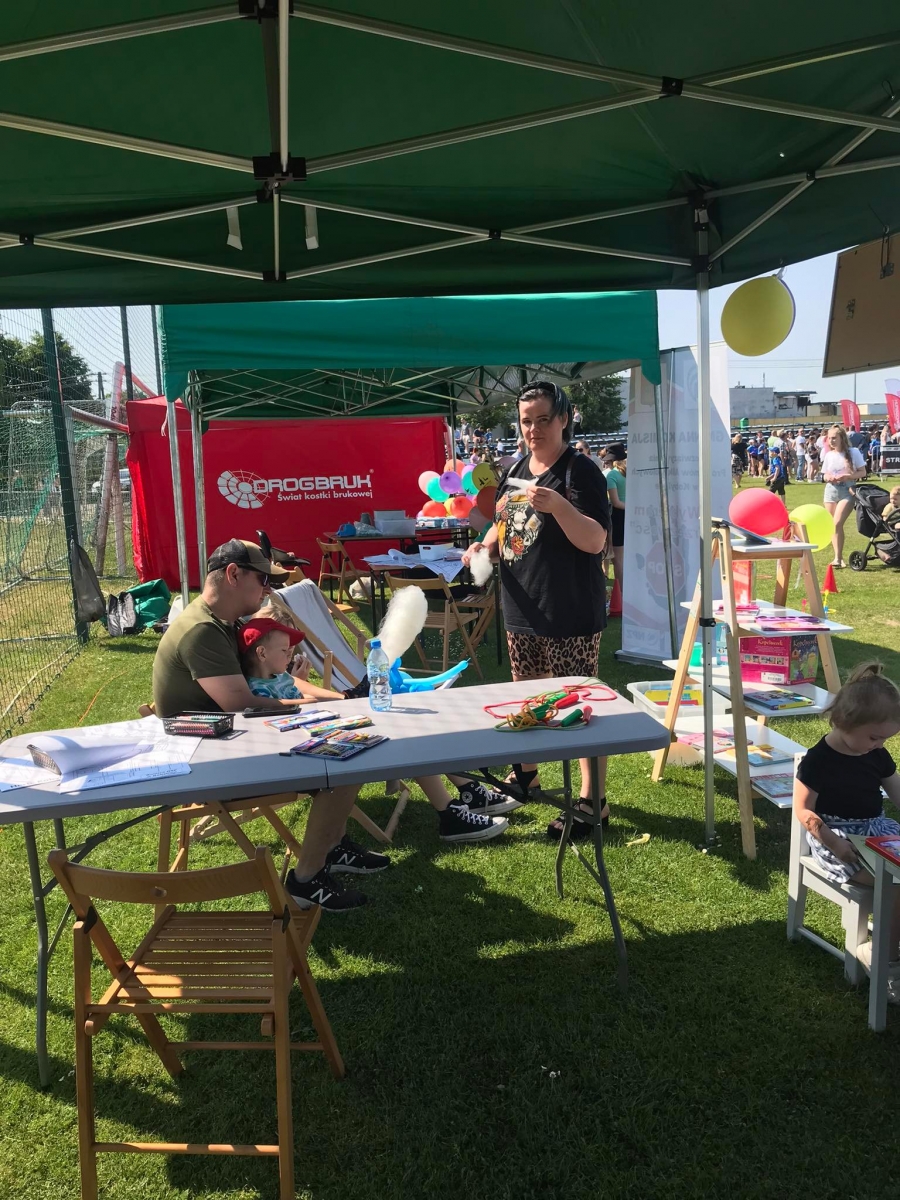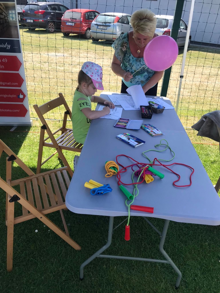 4 czerwca odbył się „Gminny Dzień Dziecka” organizowany przez Gminny Ośrodek Kultury oraz Urząd Miejski. Nasza biblioteka miała swoje stoisko na boisku, gdzie oferowaliśmy atrakcje dla najmłodszych – dmuchane balony, kolorowanki związane z naszym miastem, tworzenie makaronowych korali oraz oczywiści książki dźwiękowe i książki-zabawki.