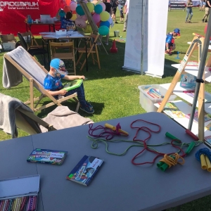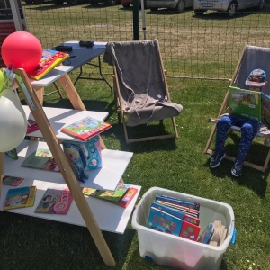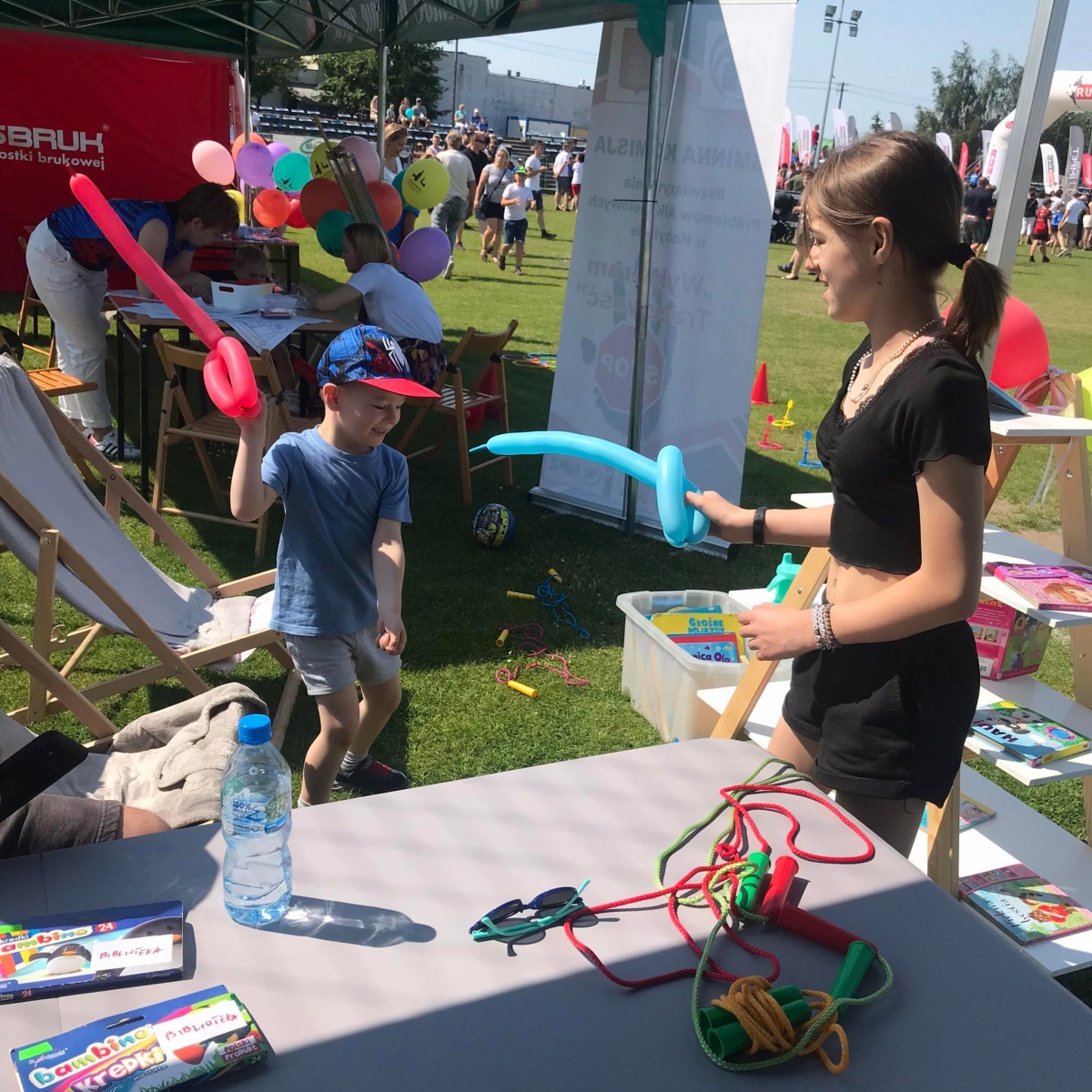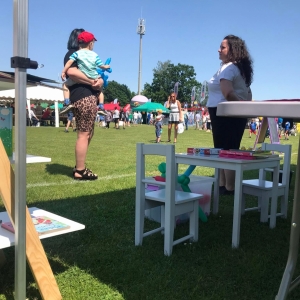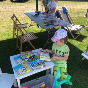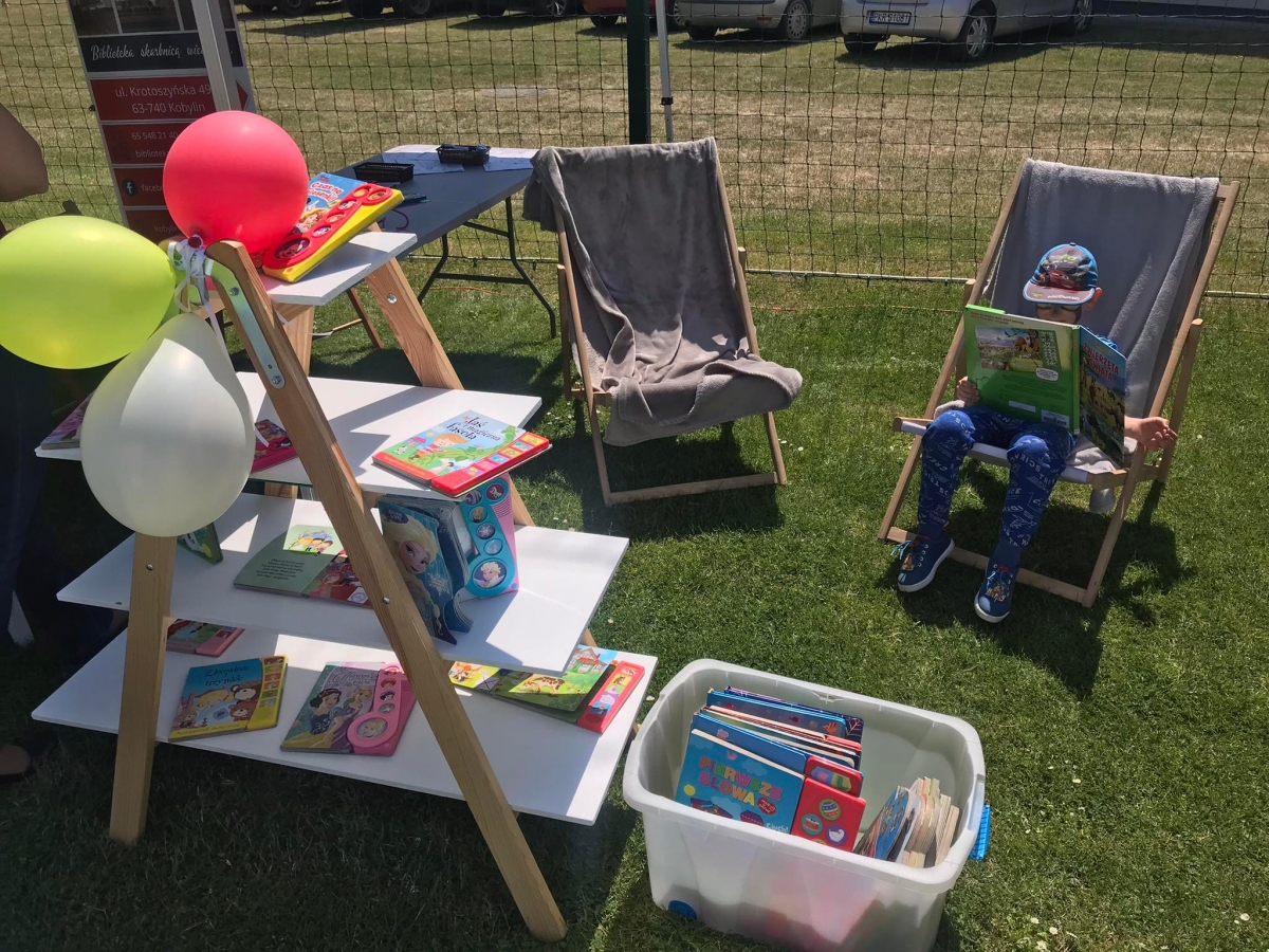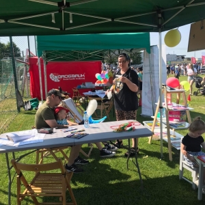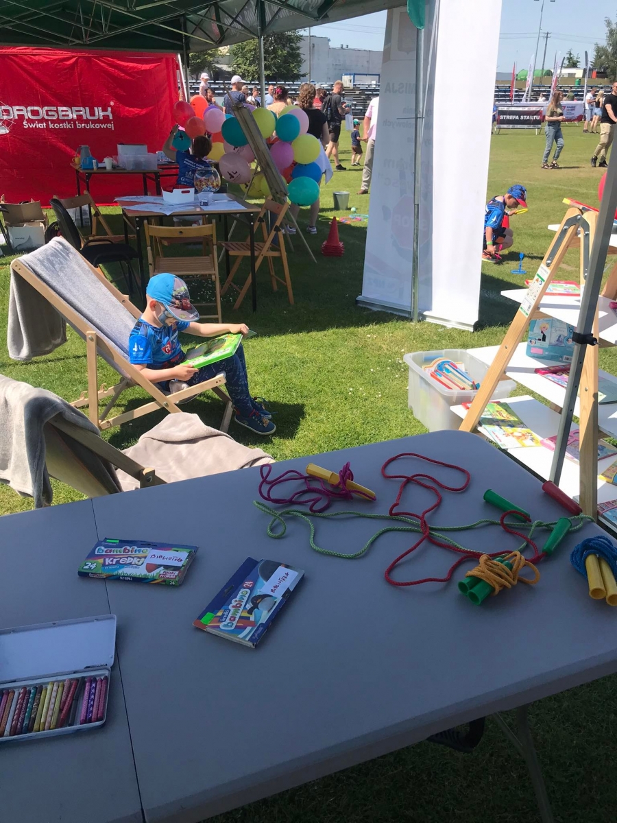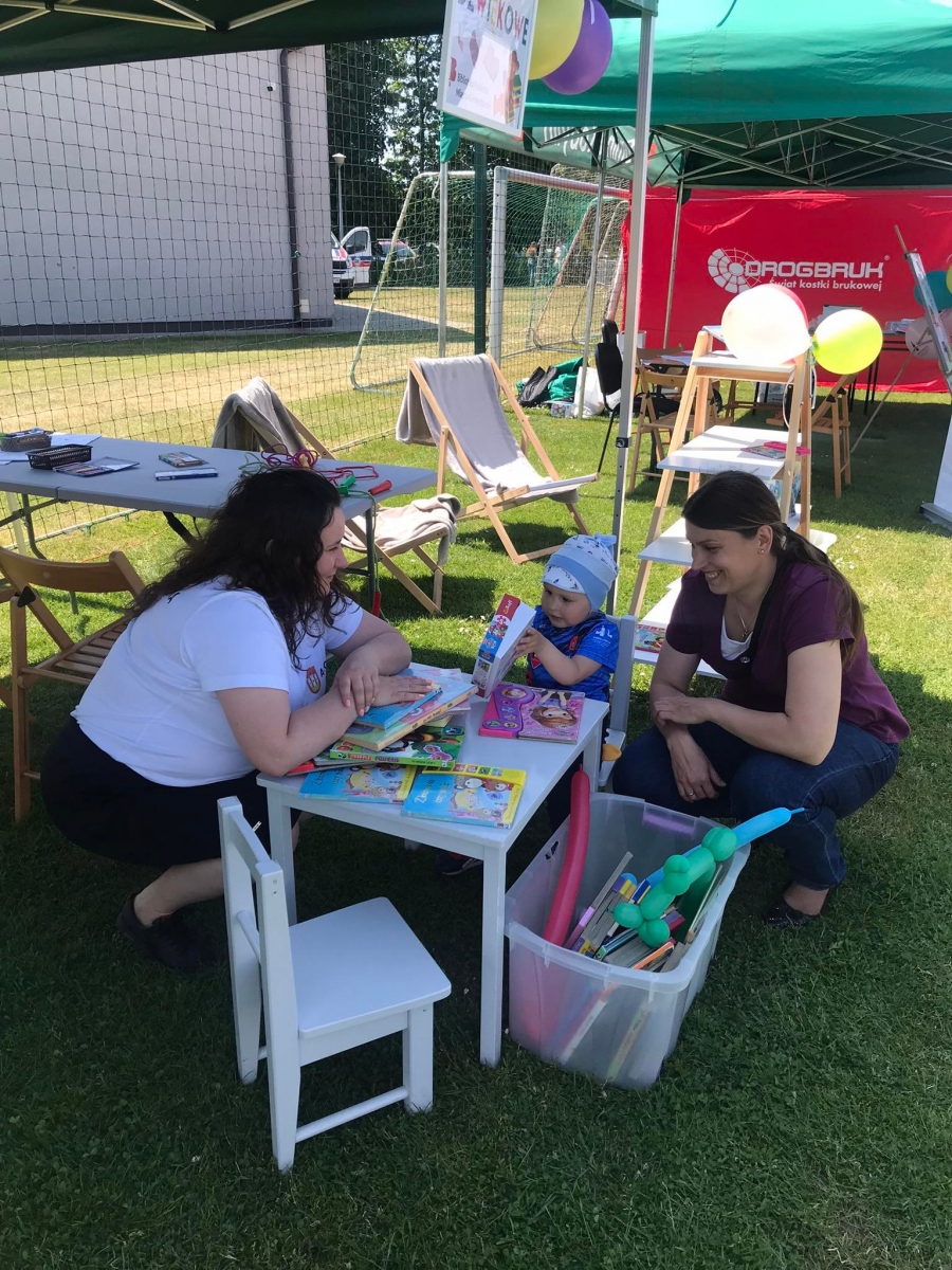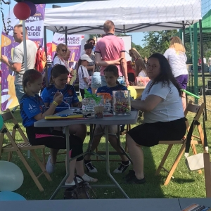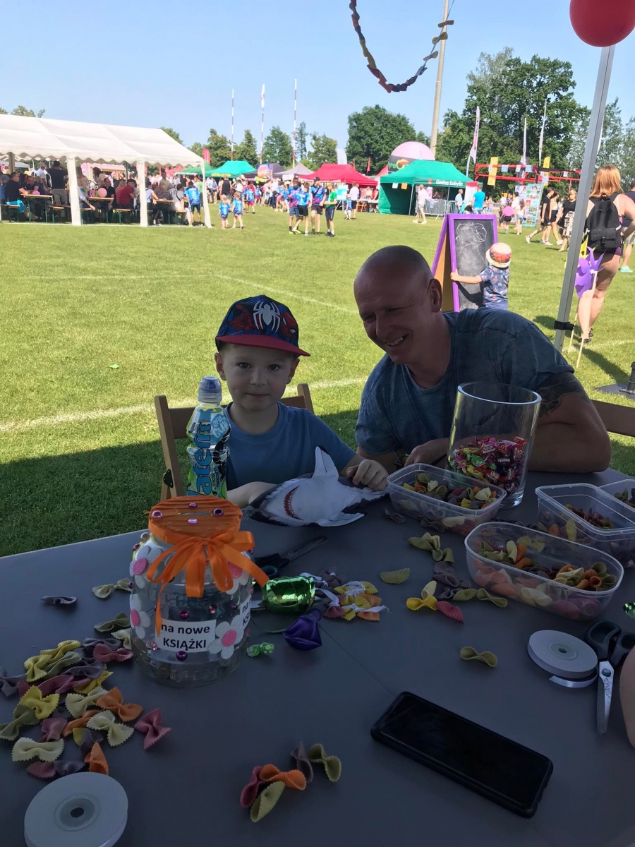 4 czerwca odbył się „Gminny Dzień Dziecka” organizowany przez Gminny Ośrodek Kultury oraz Urząd Miejski. Nasza biblioteka miała swoje stoisko na boisku, gdzie oferowaliśmy atrakcje dla najmłodszych – dmuchane balony, kolorowanki związane z naszym miastem, tworzenie makaronowych korali oraz oczywiści książki dźwiękowe i książki-zabawki.