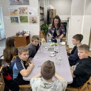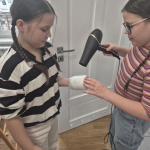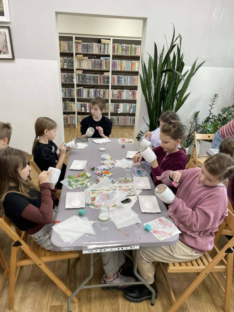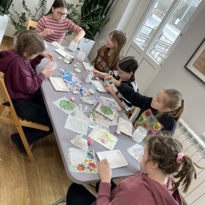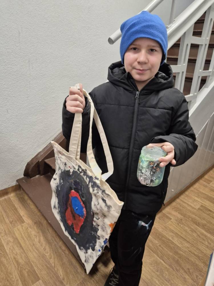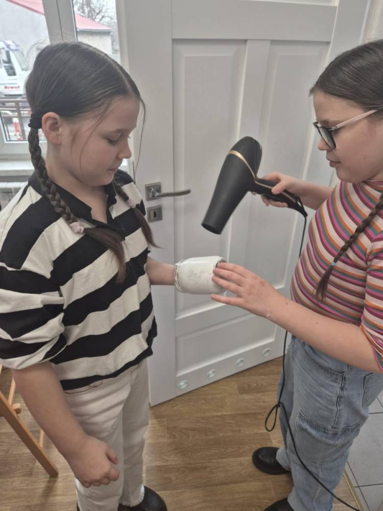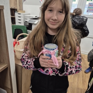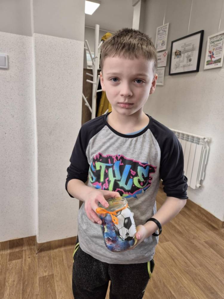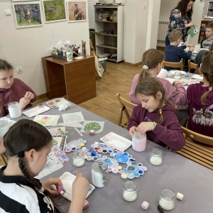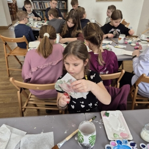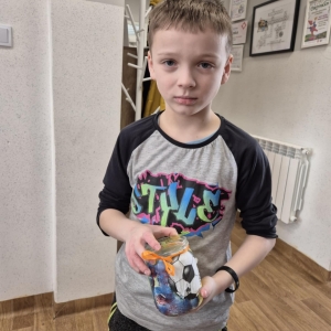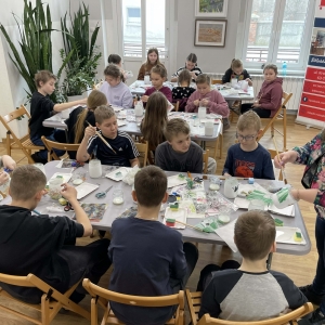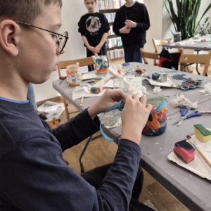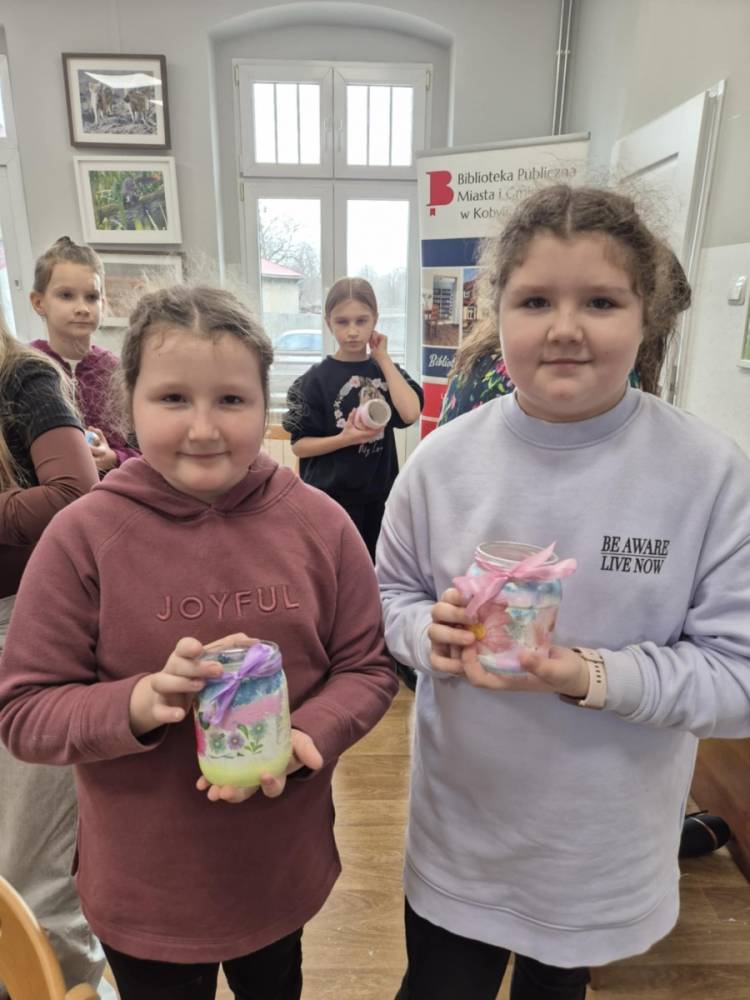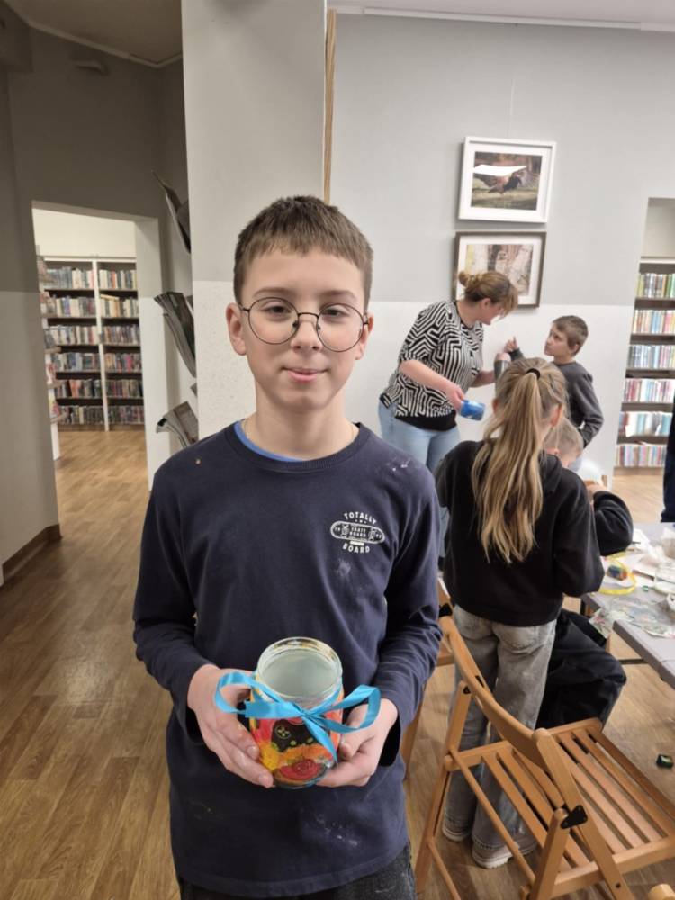 Po krótkiej przerwie na posiłek, dzieci wzięły na warsztat słoiki i farby. Zaczęli ozdabiać szklane pojemniki metodą decoupage. Była to dla nich niesamowita frajda, która łączyła zabawę w „wyklejankę” z nauką recyklingu. Było to również zajęcie, które uczyło ich cierpliwości i uważności. Praca z cienką serwetką wymaga skupienia, a planowanie kompozycji rozwija wyobraźnię przestrzenną. Gotowe (ozdobione) słoiki stały się lampionami, przybornikami na biurko, a nawet prezentami dla najbliższych.