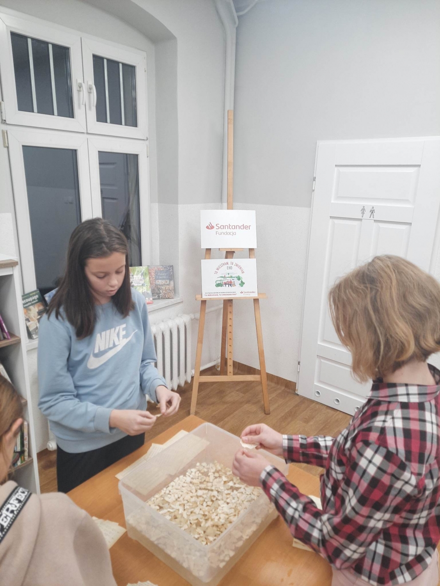 Przypominamy, że warsztaty zrealizowano w ramach projektu grantowego „Tu mieszkam, tu zmieniam EKO” Fundacji Santander Bank Polska. Biblioteka Publiczna jest beneficjentem tego grantu. Dzięki niemu możemy podejmować działania proekologiczne.