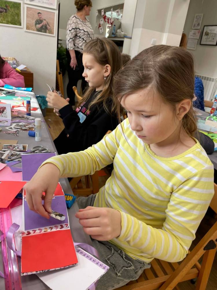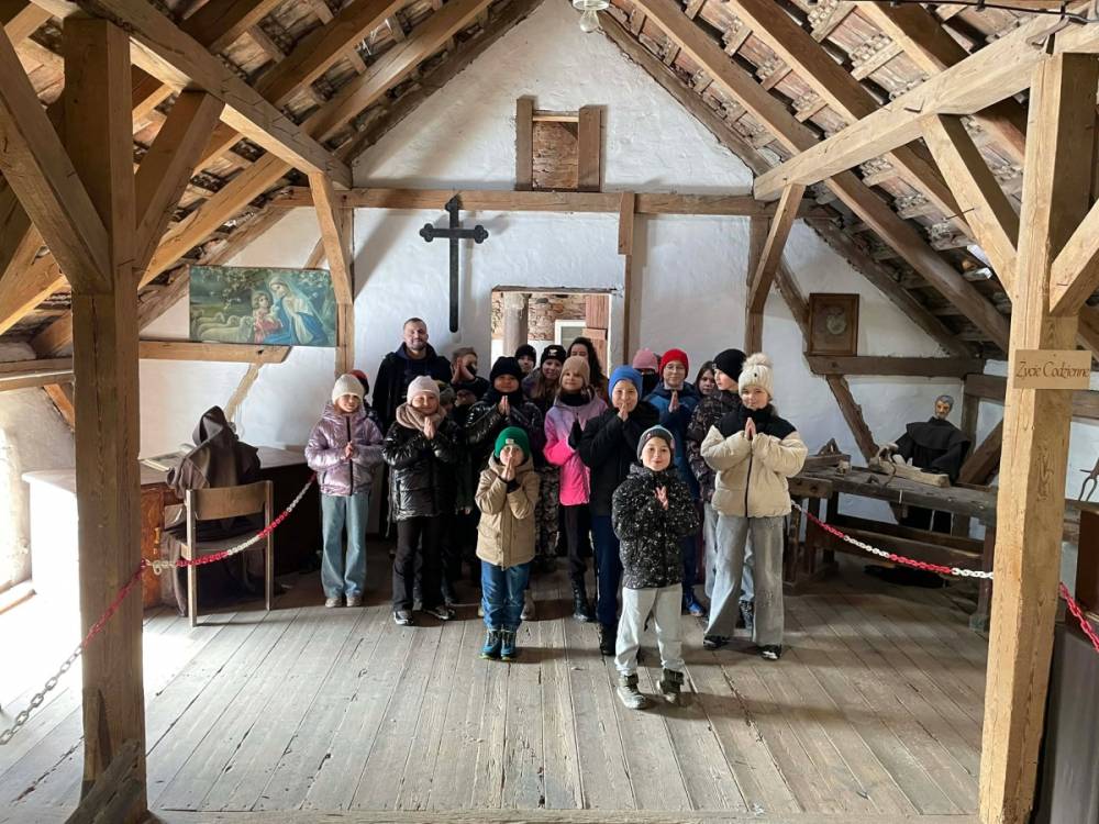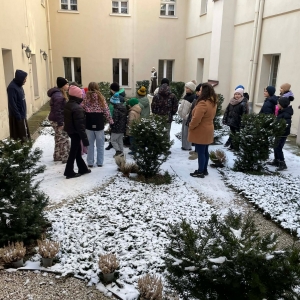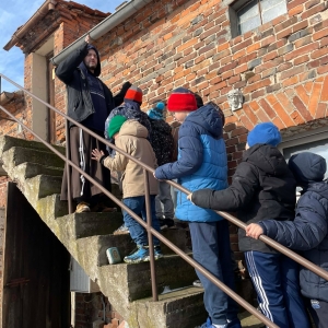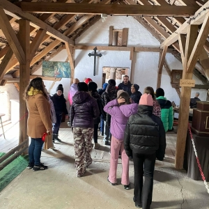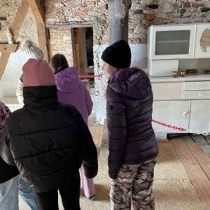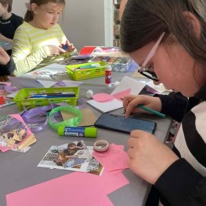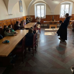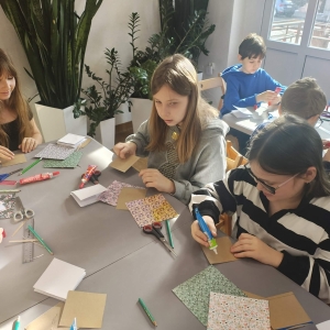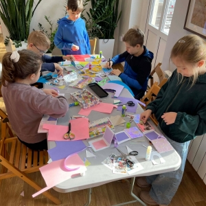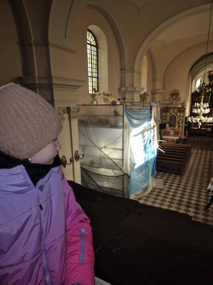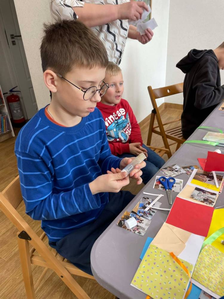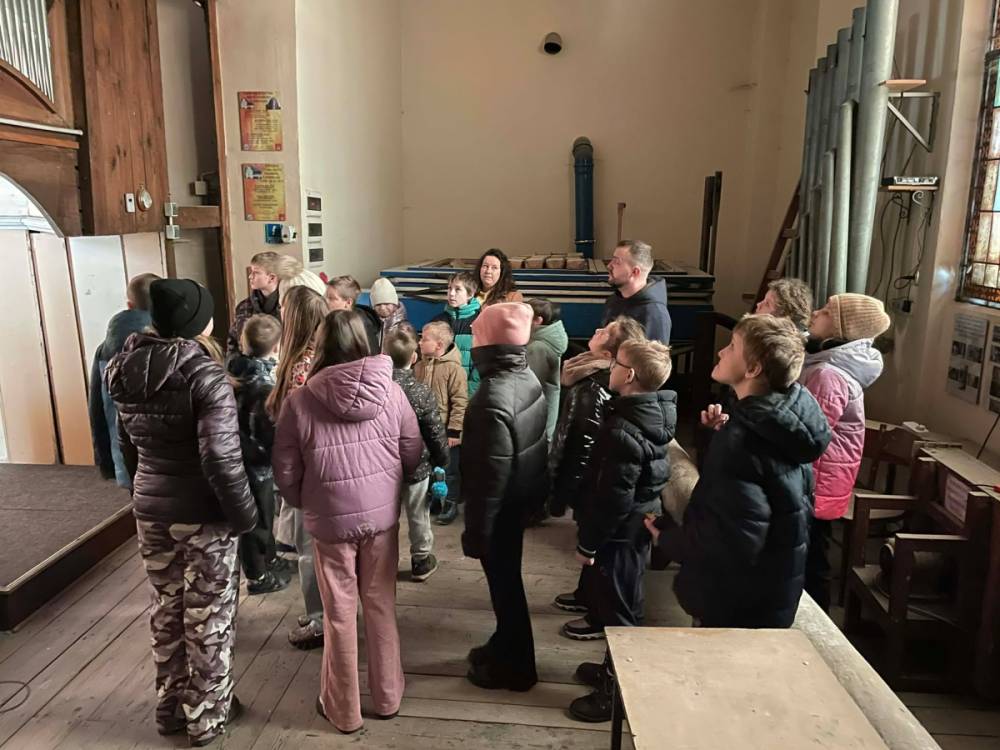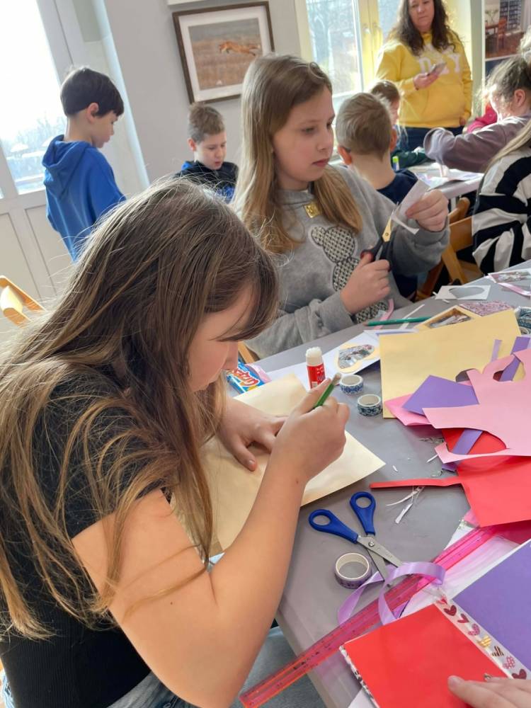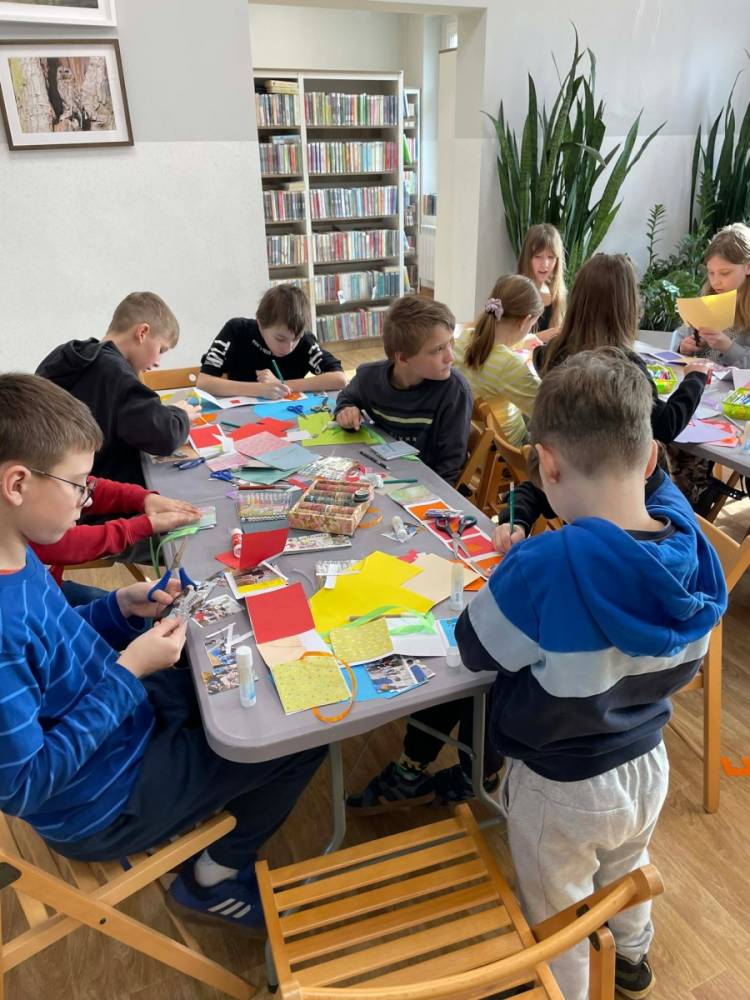 Galeria przedstawię grupę dzieci, które tworzą pamiątkowe książeczki z zajęć w bibliotece metodą leporello. W drugiej części spotkania dzieci zwiedzały Klasztor Ojców Franciszkanów w Kobylinie, który znajduje się naprzeciwko biblioteki.