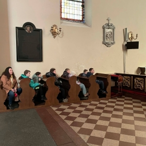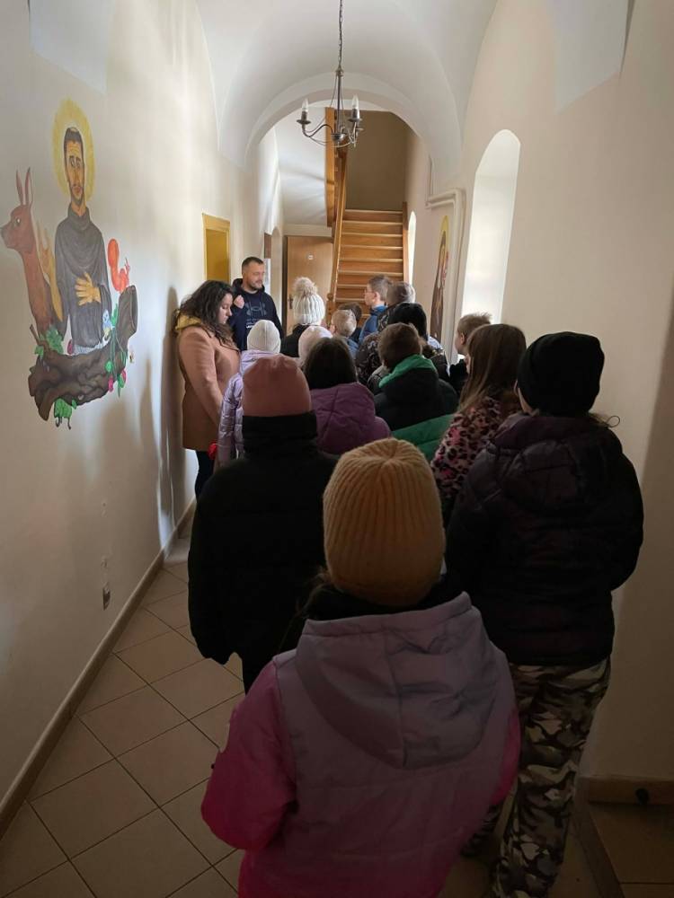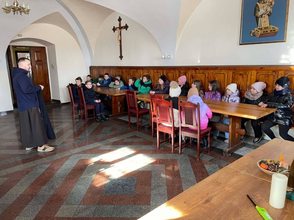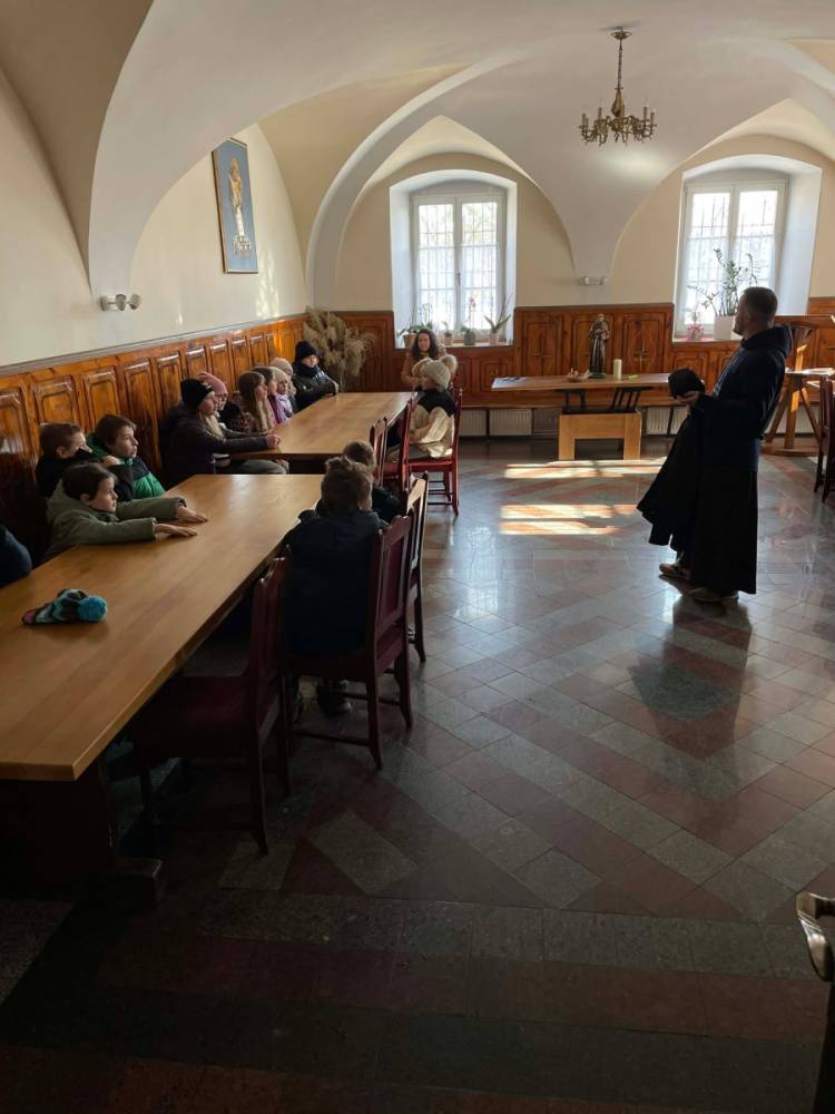 Odwiedziliśmy w tym dniu Klasztor Ojców Franciszkanów, po którym oprowadził nas ojciec Masseo. Zobaczyliśmy piękne, zabytkowe organy oraz mieliśmy okazję zajrzeć do prac remontowych ołtarza św. Franciszka w Kościele. Dowiedzieliśmy się czym jest wirydarz (ogród przyklasztorny), cele (pokoje, które zamieszkują ojcowie). Proboszcz ukazał nam oratorium, czyli miejsce modlitwy oraz celebracji mszy, a także refektarz, który okazał się być miejscem spożywania posiłków. Ostatnim punktem zwiedzania był Franciszkański Wehikuł Czasu, który pokazał nam życie franciszkanów sprzed wielu lat.