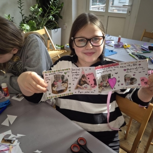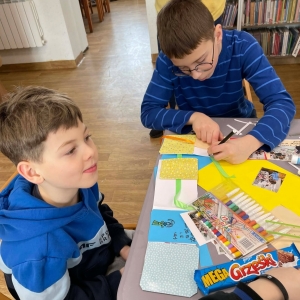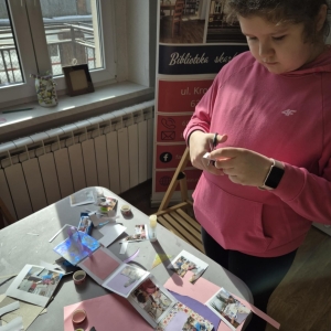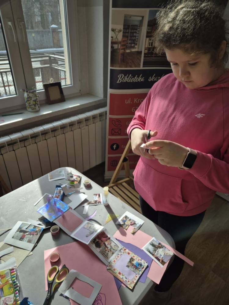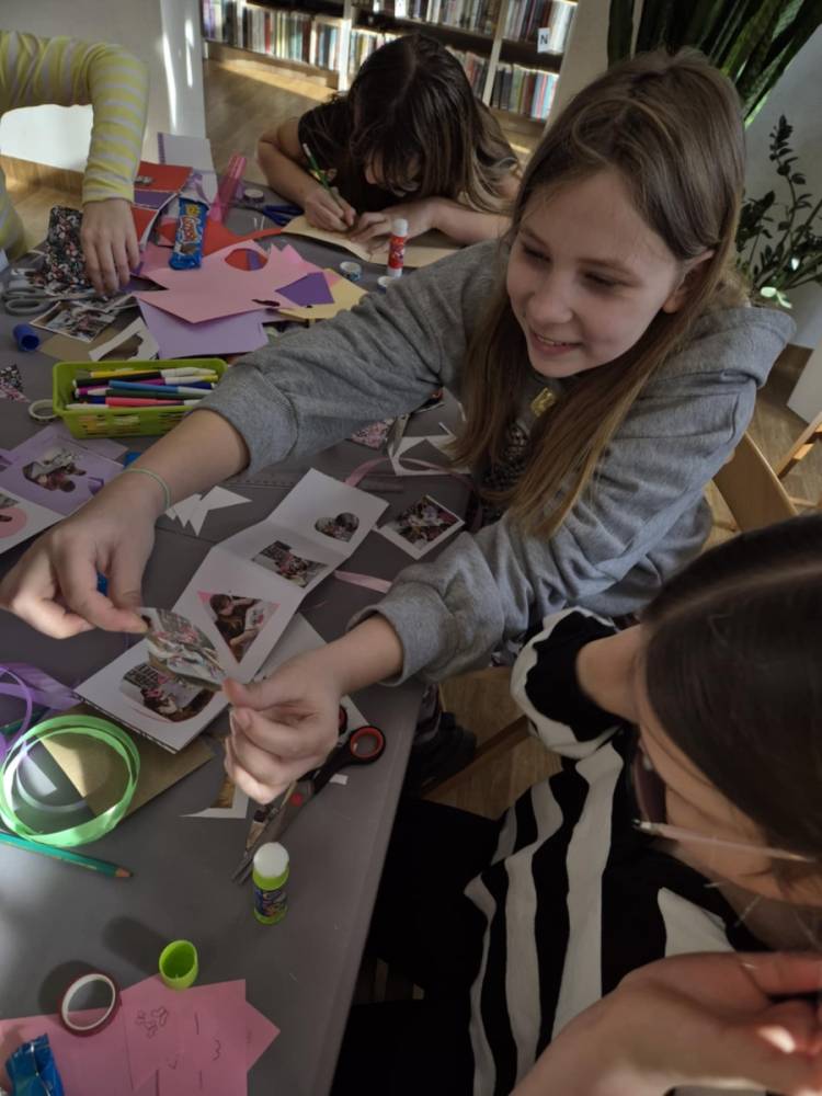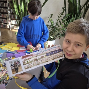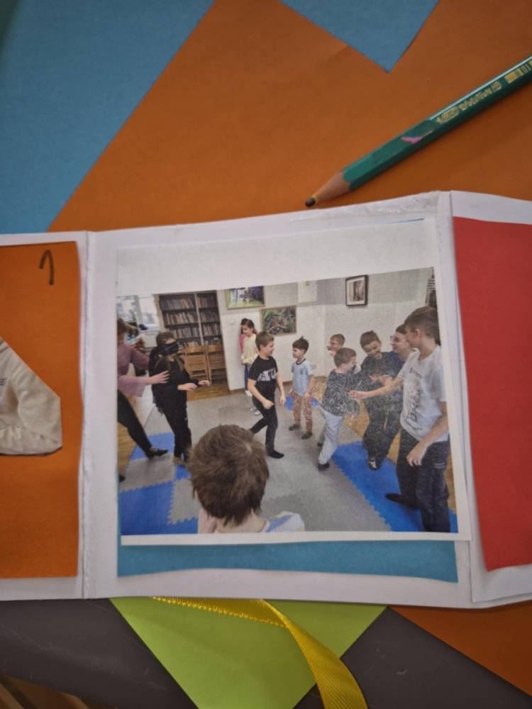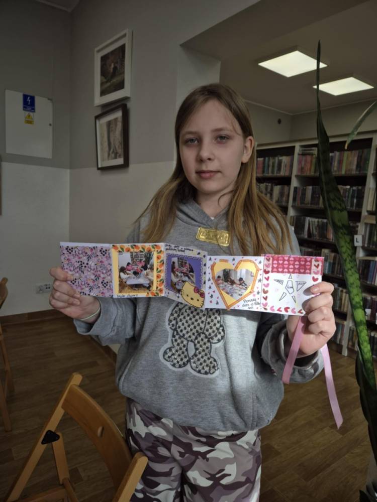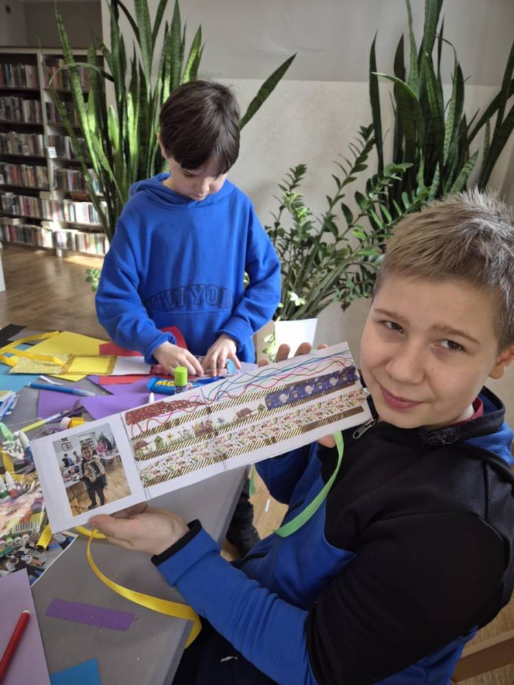 Na zakończenie naszych wspólnych spotkań tworzyliśmy pamiątkowe książeczki metodą leporello. Każdy uczestnik mógł zebrać w nich swoje wspomnienia z zajęć – ulubione chwile, rysunki, inspiracje i najciekawsze momenty spędzone w bibliotece. Powstały wyjątkowe, pełne kreatywności prace, które będą piękną pamiątką tegorocznych ferii.