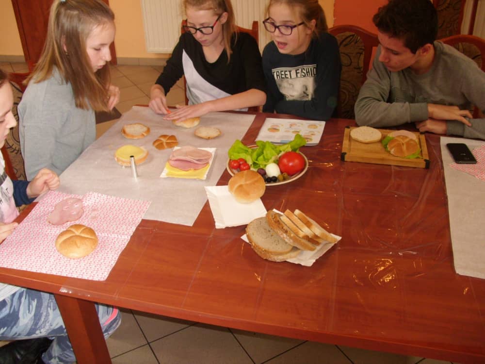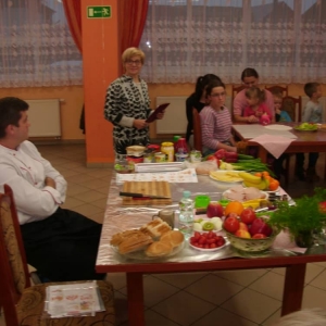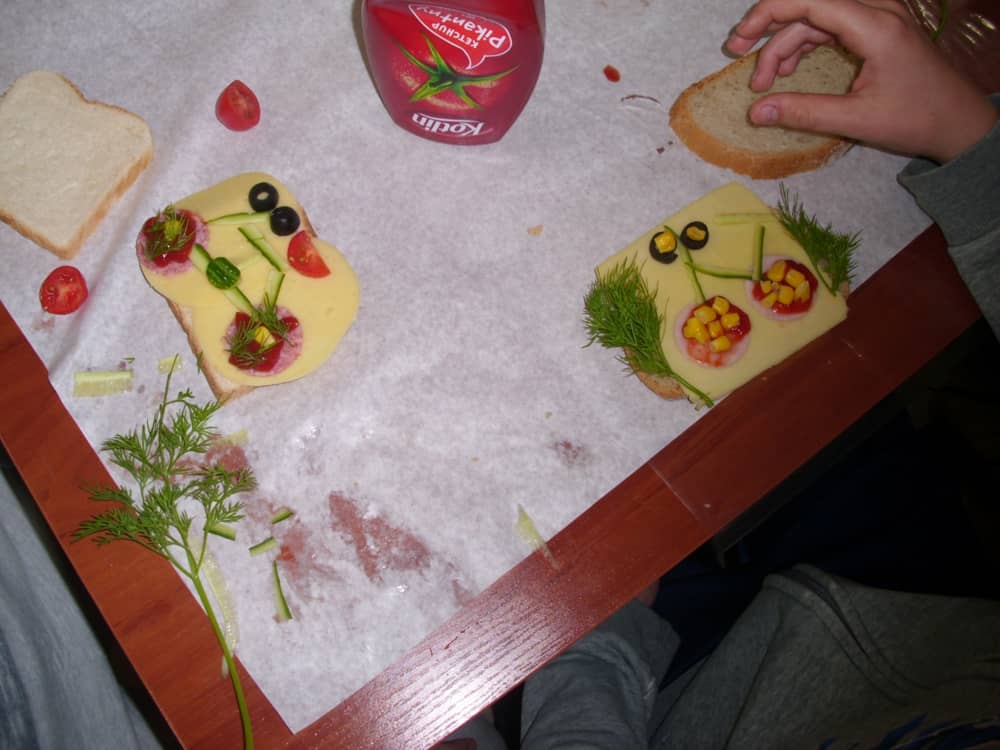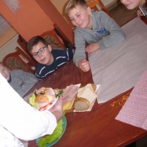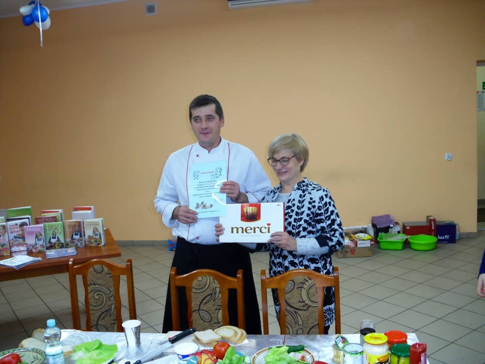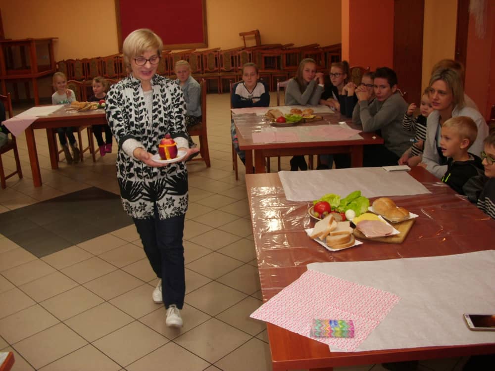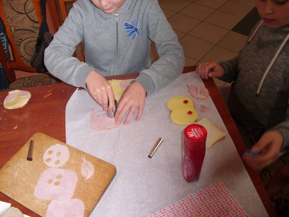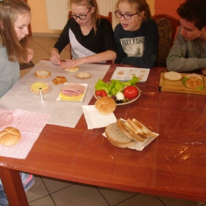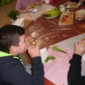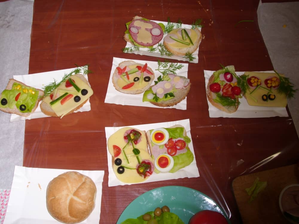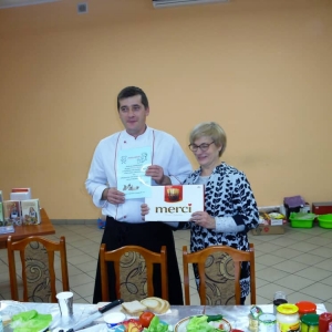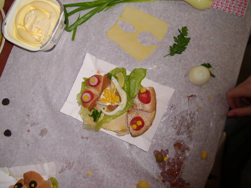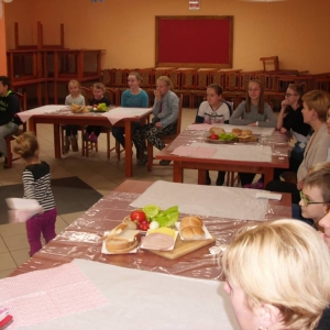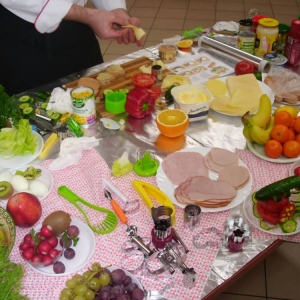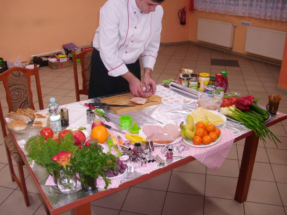 Honorowym gościem, a jednocześnie prowadzącym był zawodowy kucharz Tomasz Brzykcy. Opowiedział uczestnikom o zdrowych produktach, zademonstrował przyrządy służące do ozdabiania potraw, z których korzysta w kuchni. Z warzyw i owoców wyczarował telefon, imbryk, serwis do herbaty. Z pieczywa powstała krowa oraz lew. Po interesującym pokazie, dzieci pod okiem rodziców, babć i opiekunów, (przy dużej dawce śmiechu) same tworzyły kanapkowe cuda. Na koniec nastąpiła demonstracja dzieł i długo wyczekiwana konsumpcja.