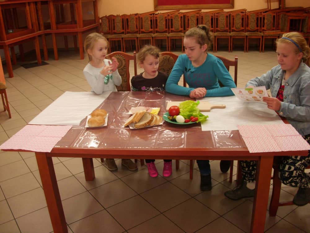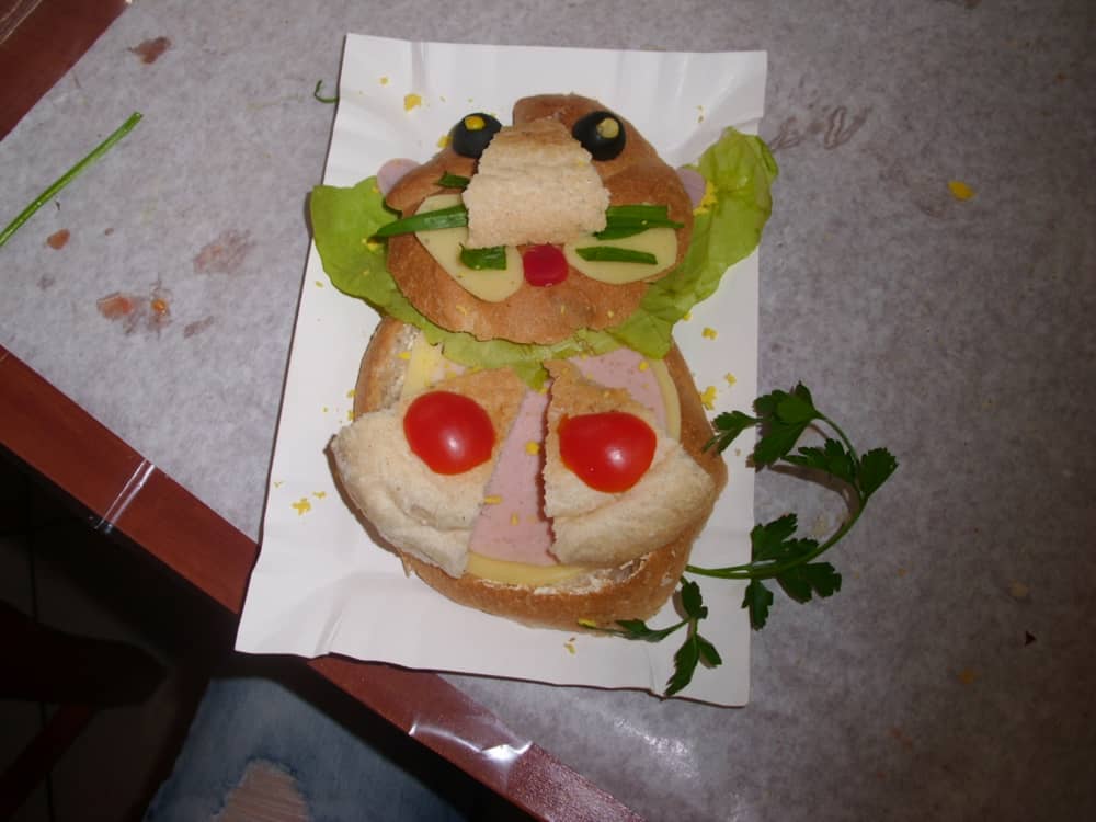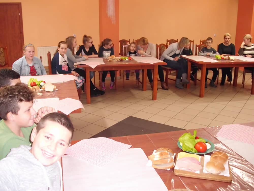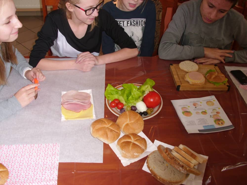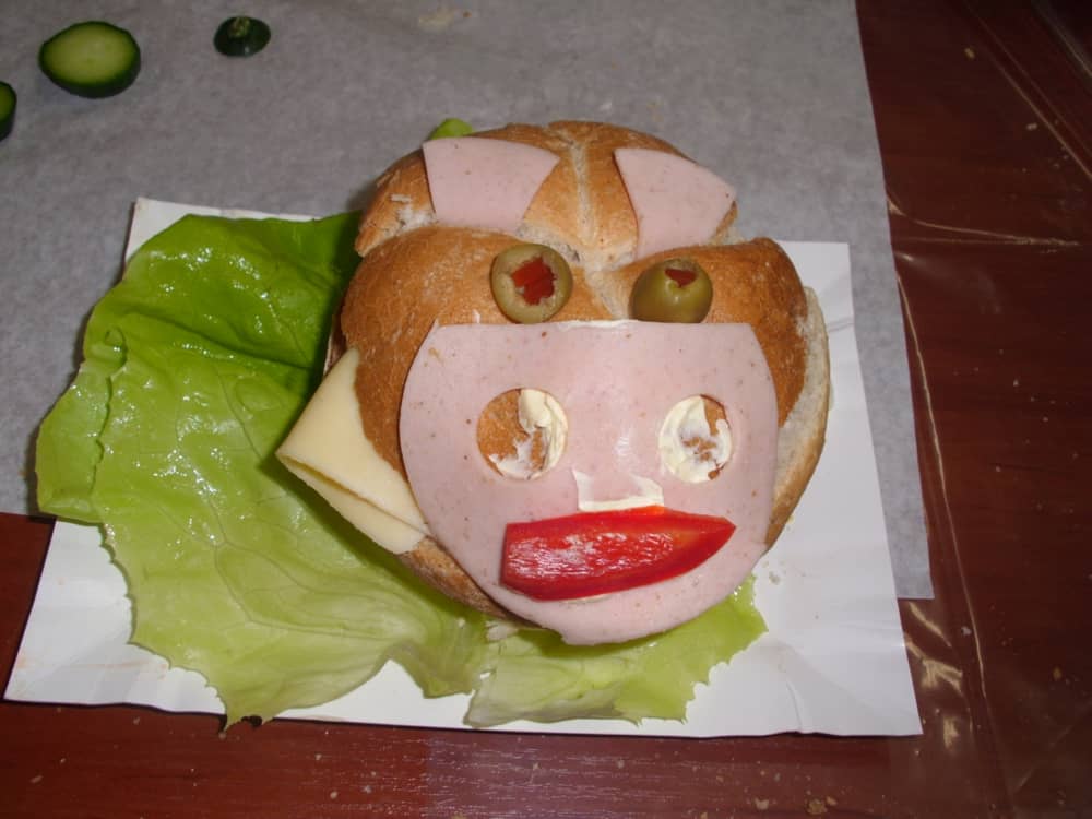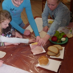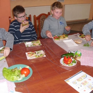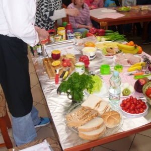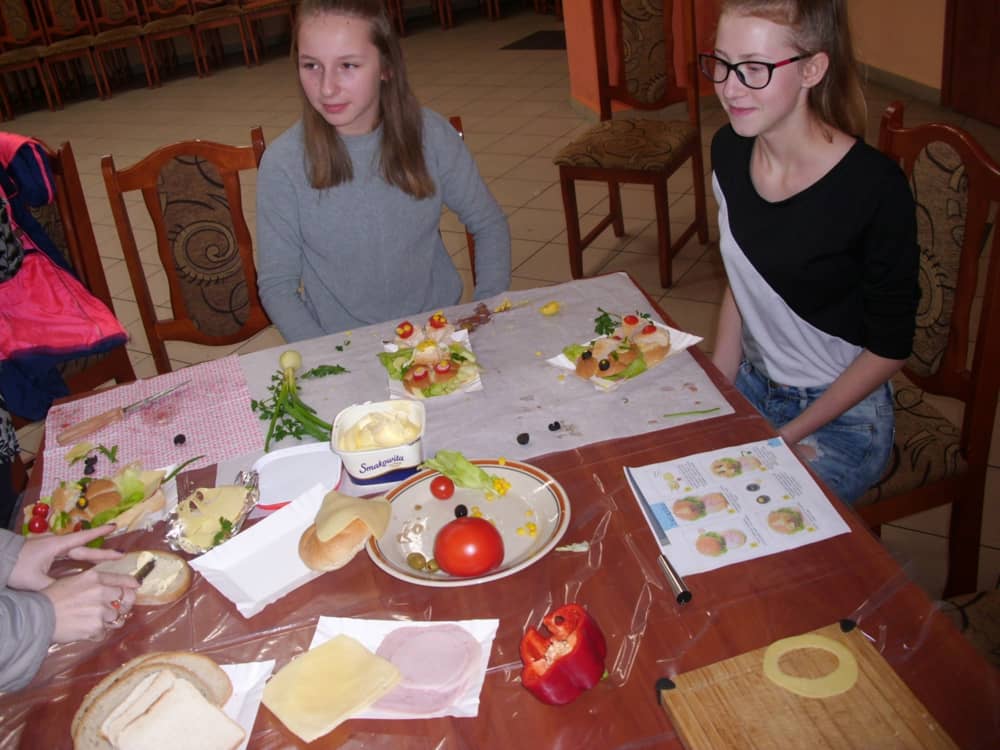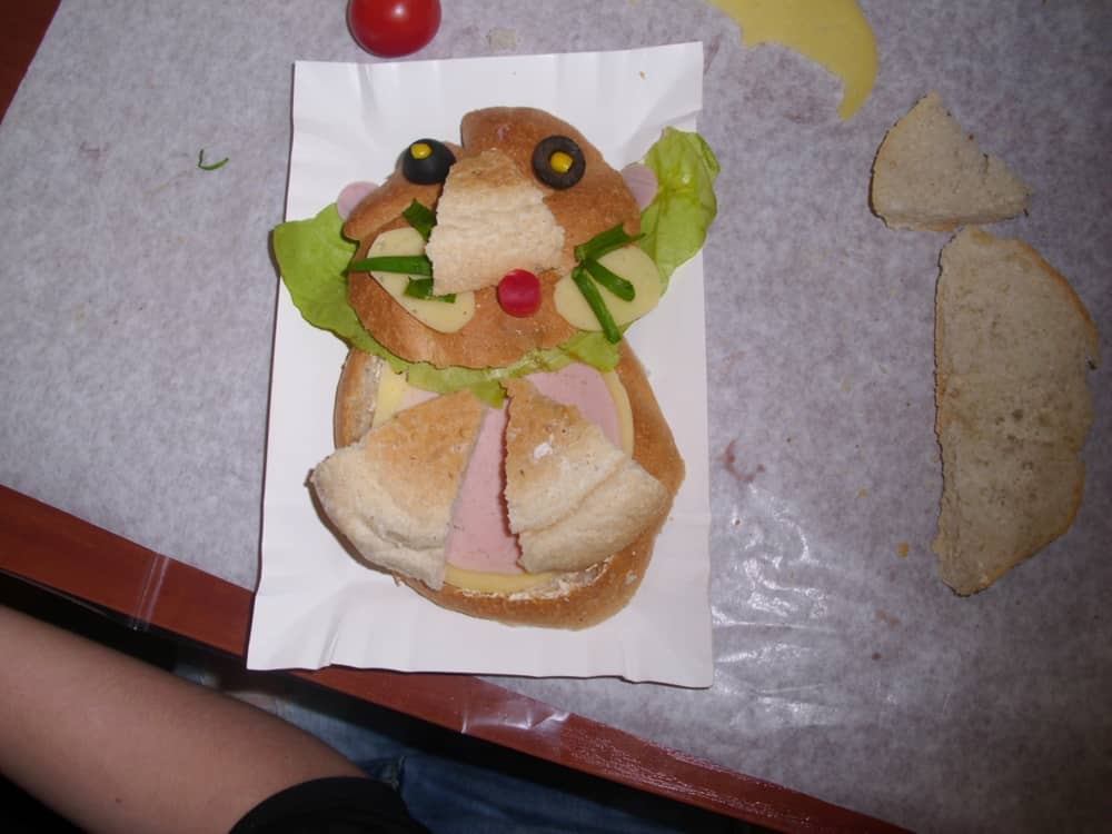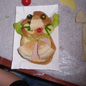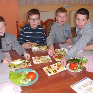Honorowym gościem, a jednocześnie prowadzącym był zawodowy kucharz Tomasz Brzykcy. Opowiedział uczestnikom o zdrowych produktach, zademonstrował przyrządy służące do ozdabiania potraw, z których korzysta w kuchni. Z warzyw i owoców wyczarował telefon, imbryk, serwis do herbaty. Z pieczywa powstała krowa oraz lew. Po interesującym pokazie, dzieci pod okiem rodziców, babć i opiekunów, (przy dużej dawce śmiechu) same tworzyły kanapkowe cuda. Na koniec nastąpiła demonstracja dzieł i długo wyczekiwana konsumpcja.