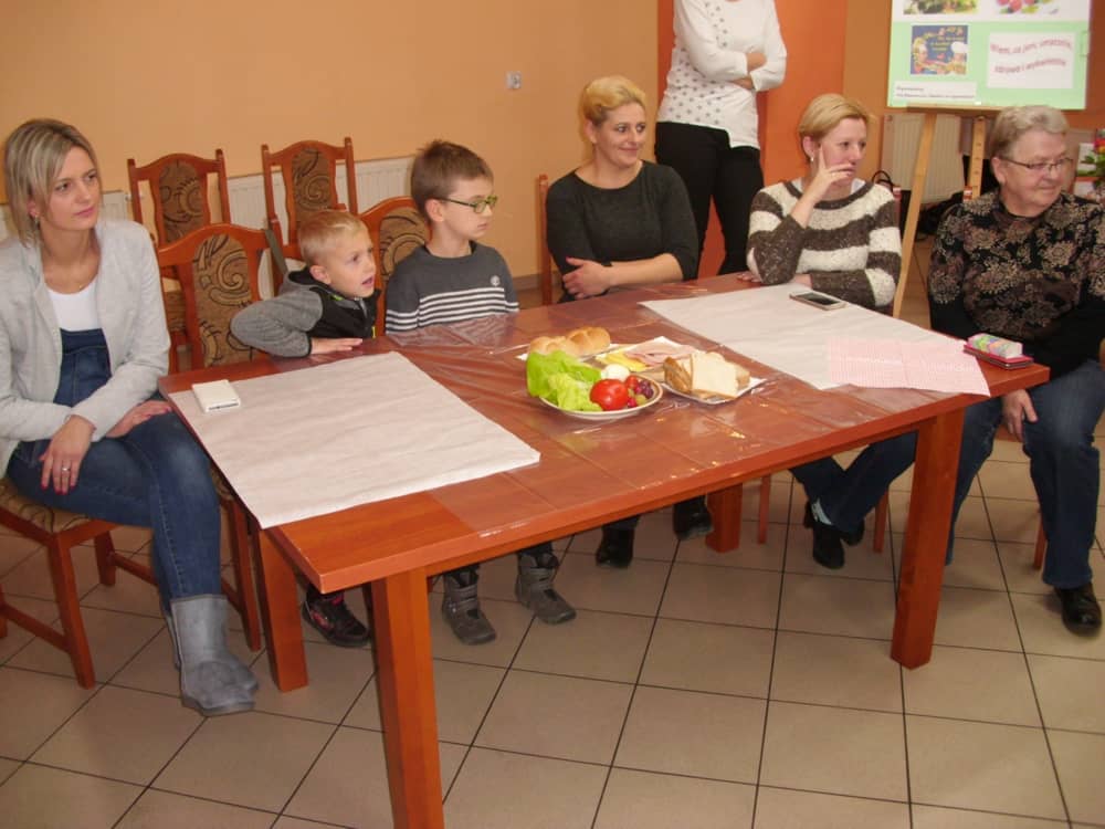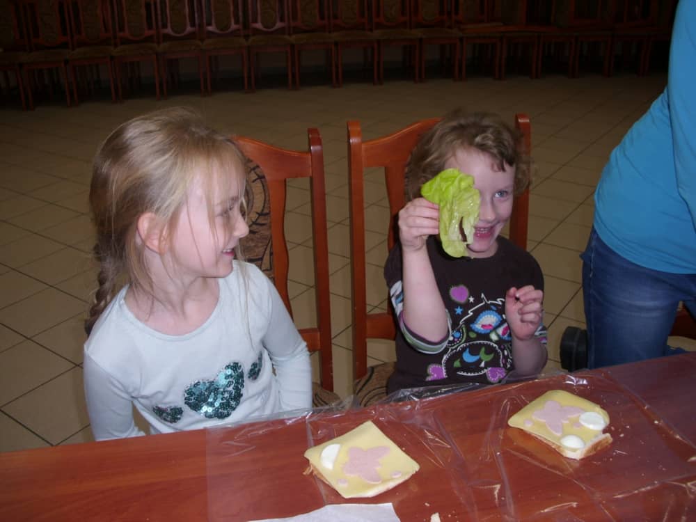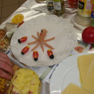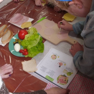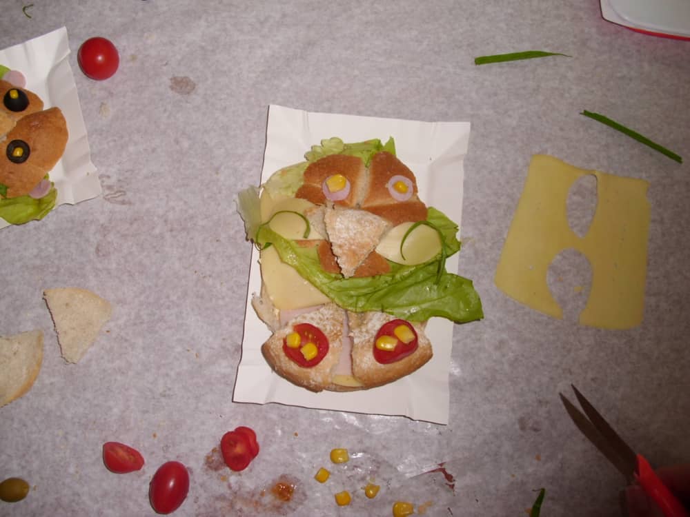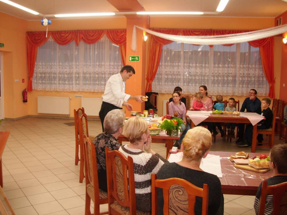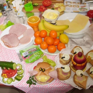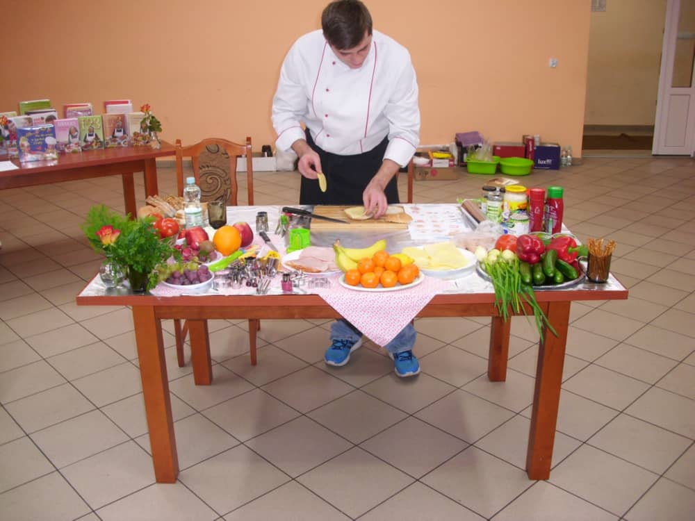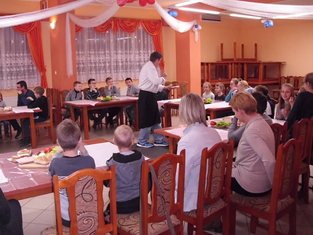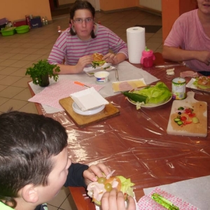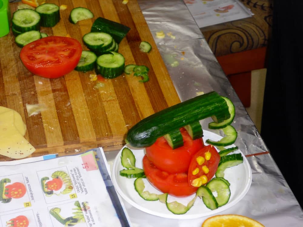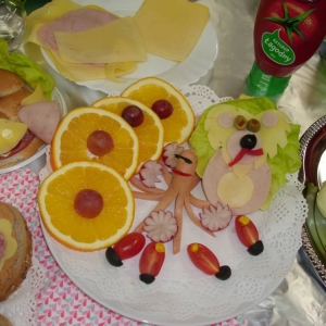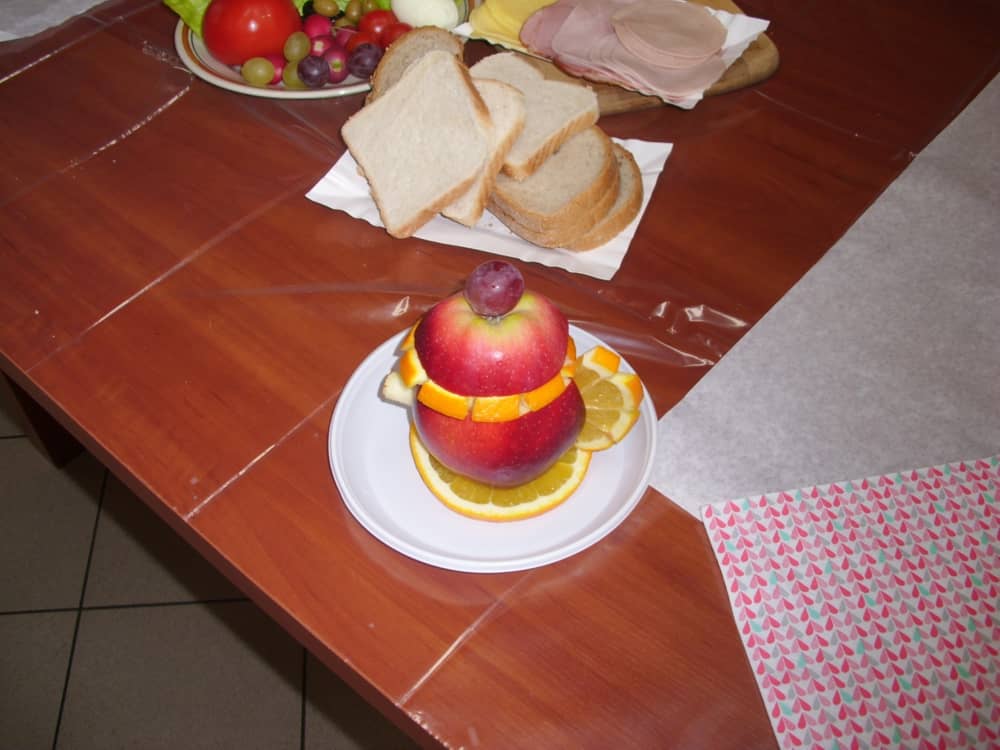 Honorowym gościem, a jednocześnie prowadzącym był zawodowy kucharz Tomasz Brzykcy. Opowiedział uczestnikom o zdrowych produktach, zademonstrował przyrządy służące do ozdabiania potraw, z których korzysta w kuchni. Z warzyw i owoców wyczarował telefon, imbryk, serwis do herbaty. Z pieczywa powstała krowa oraz lew. Po interesującym pokazie, dzieci pod okiem rodziców, babć i opiekunów, (przy dużej dawce śmiechu) same tworzyły kanapkowe cuda. Na koniec nastąpiła demonstracja dzieł i długo wyczekiwana konsumpcja.