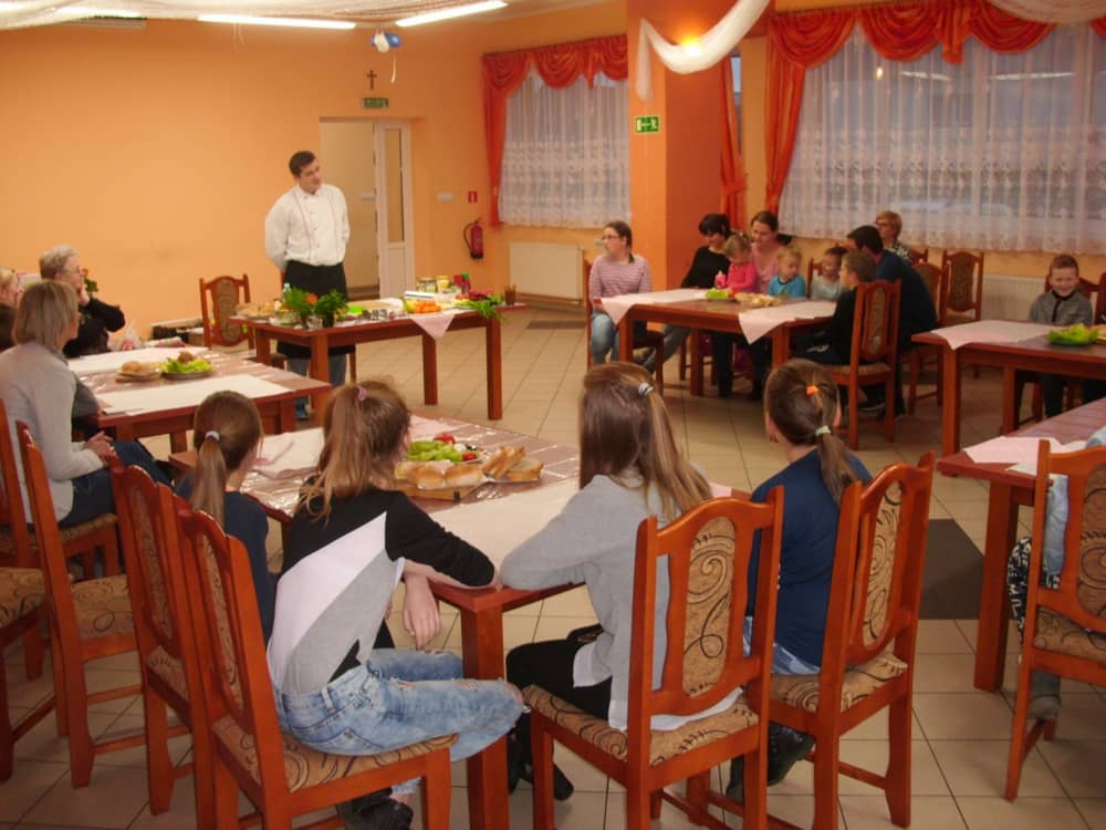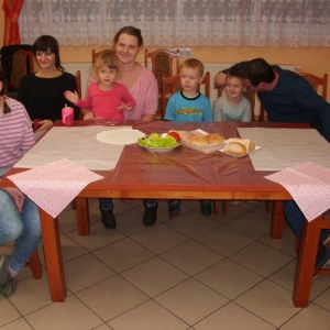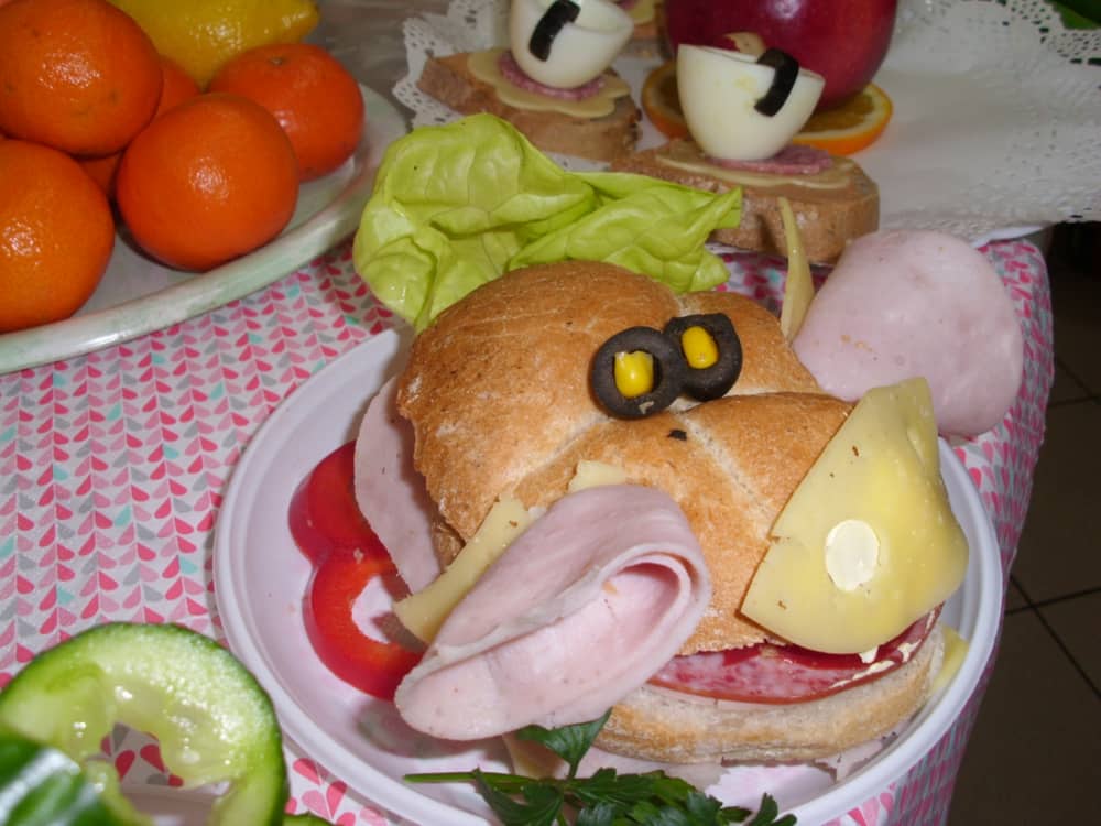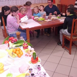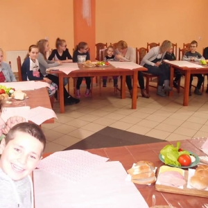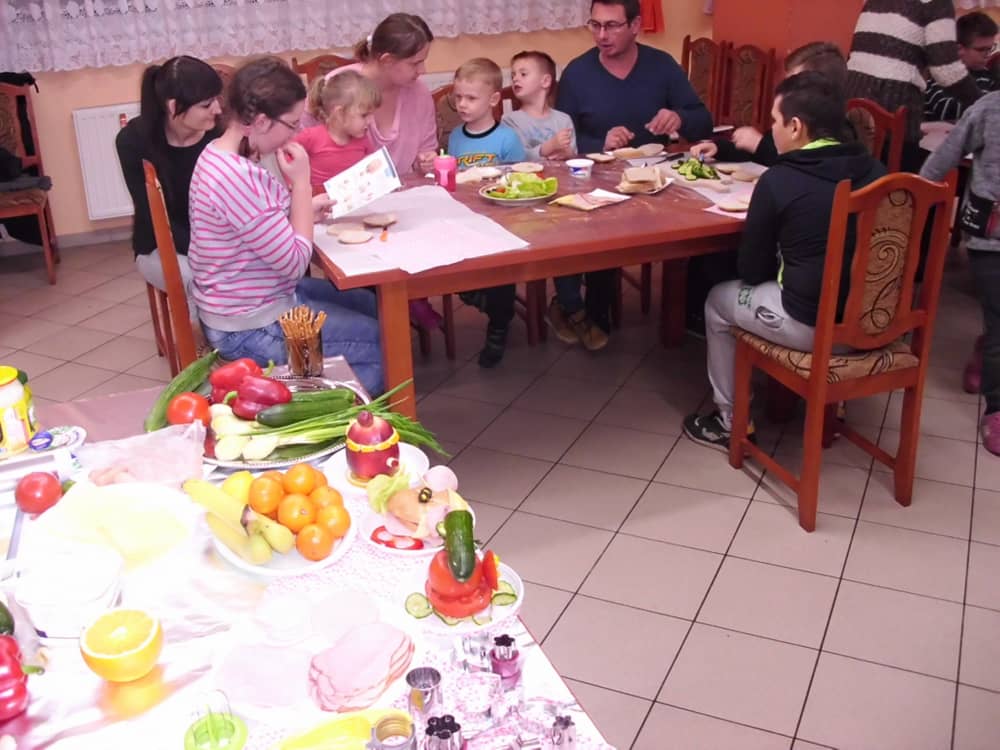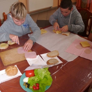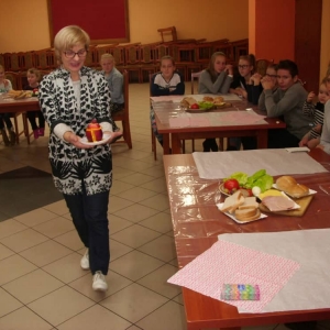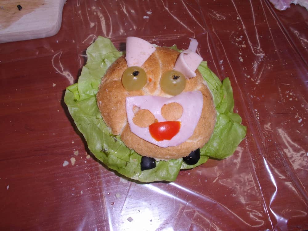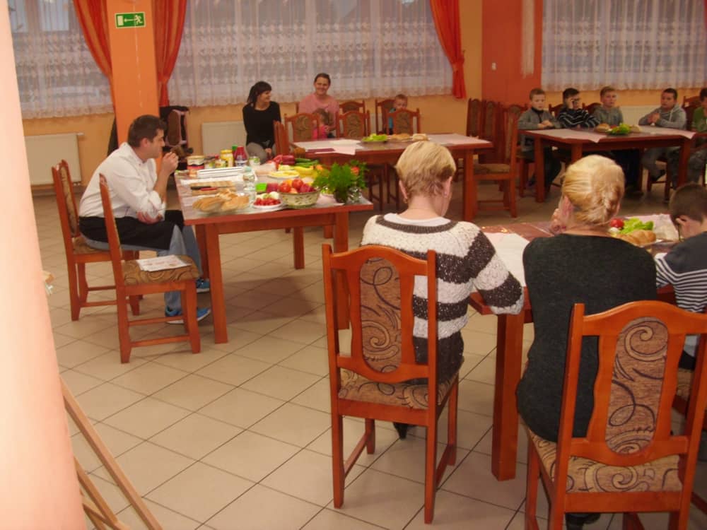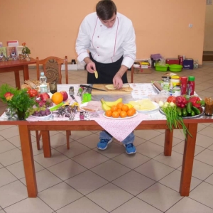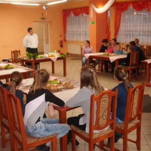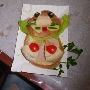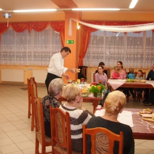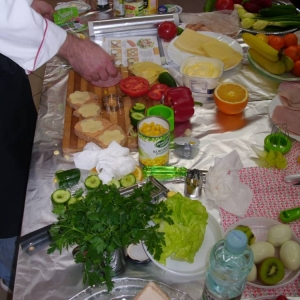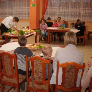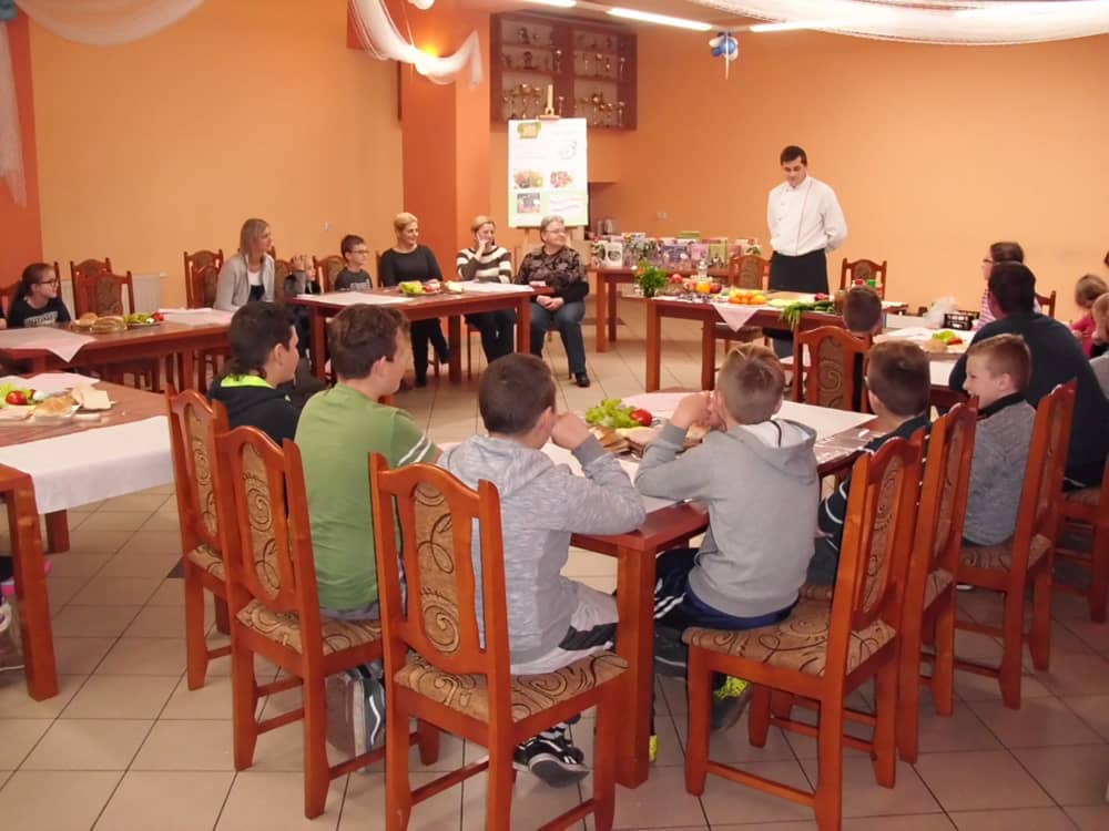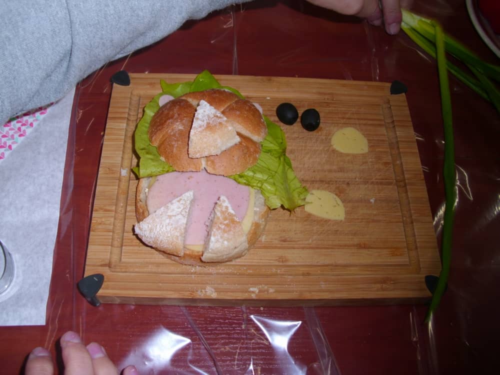 Honorowym gościem, a jednocześnie prowadzącym był zawodowy kucharz Tomasz Brzykcy. Opowiedział uczestnikom o zdrowych produktach, zademonstrował przyrządy służące do ozdabiania potraw, z których korzysta w kuchni. Z warzyw i owoców wyczarował telefon, imbryk, serwis do herbaty. Z pieczywa powstała krowa oraz lew. Po interesującym pokazie, dzieci pod okiem rodziców, babć i opiekunów, (przy dużej dawce śmiechu) same tworzyły kanapkowe cuda. Na koniec nastąpiła demonstracja dzieł i długo wyczekiwana konsumpcja.