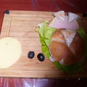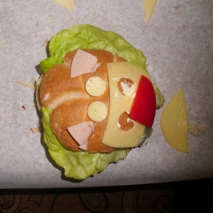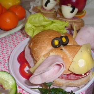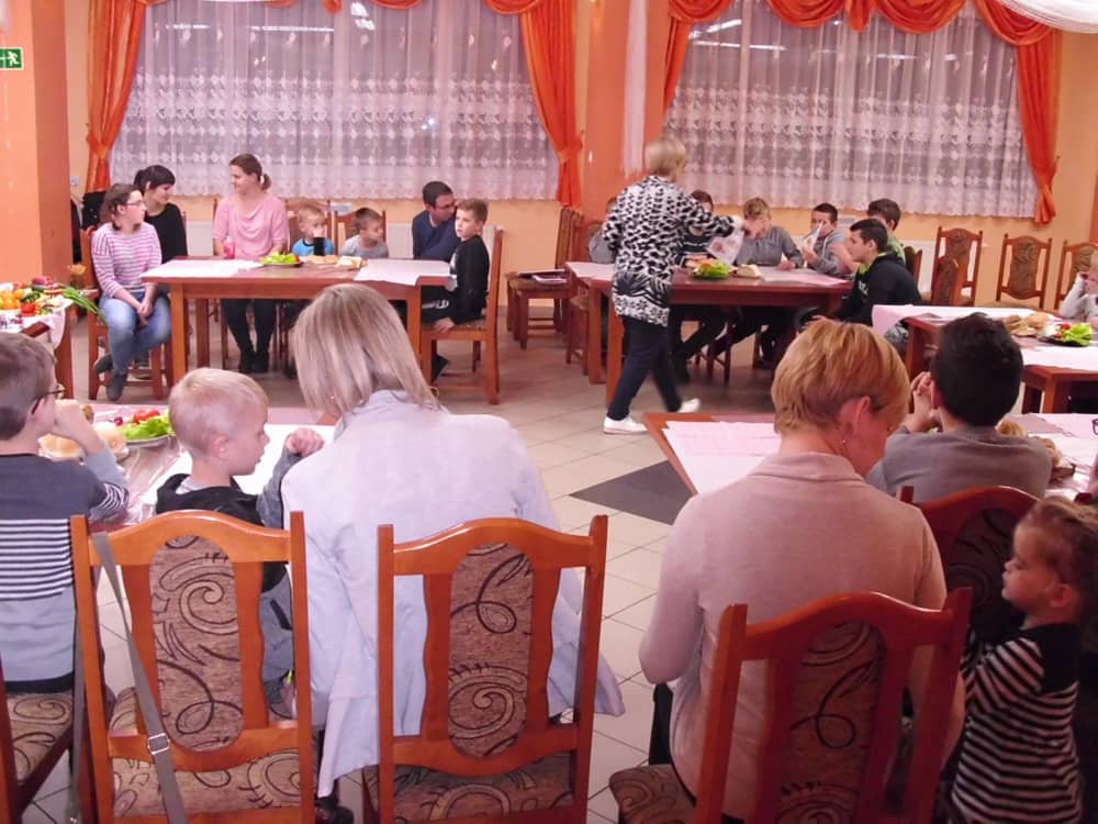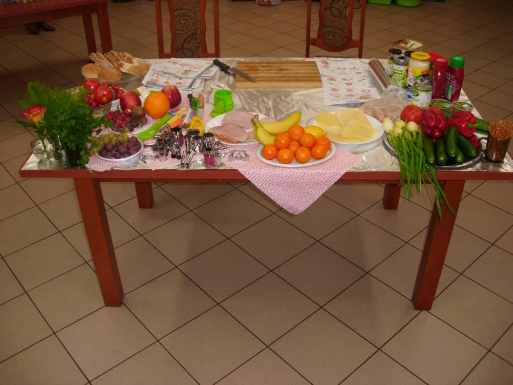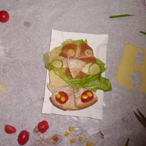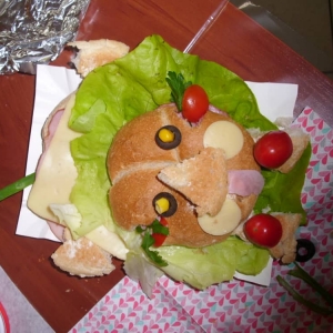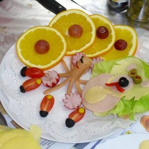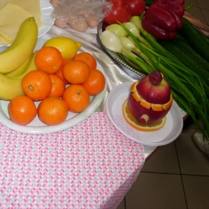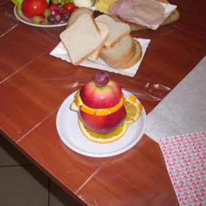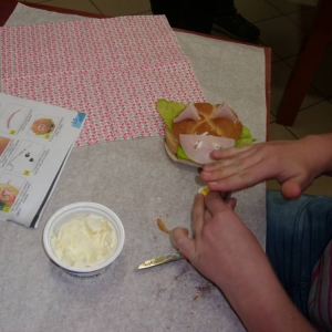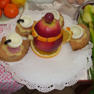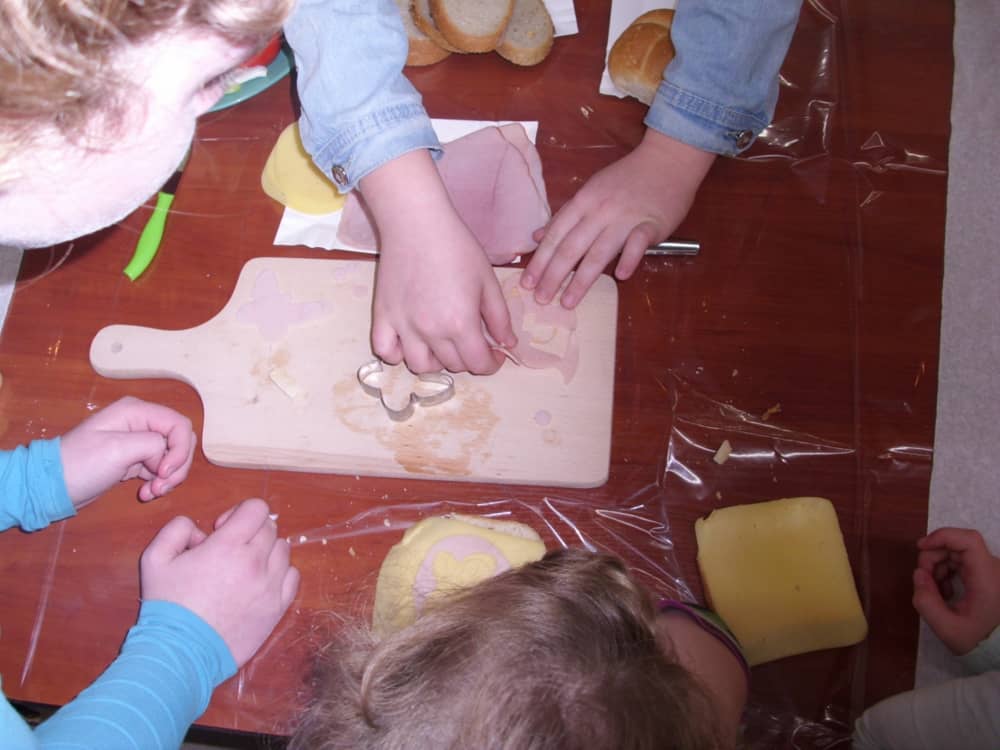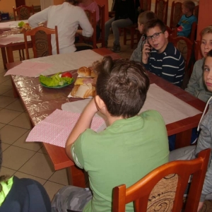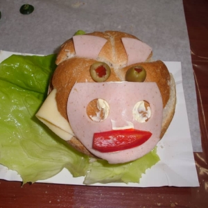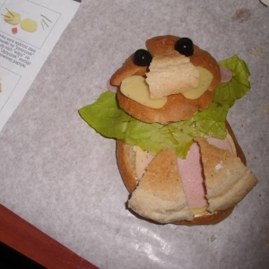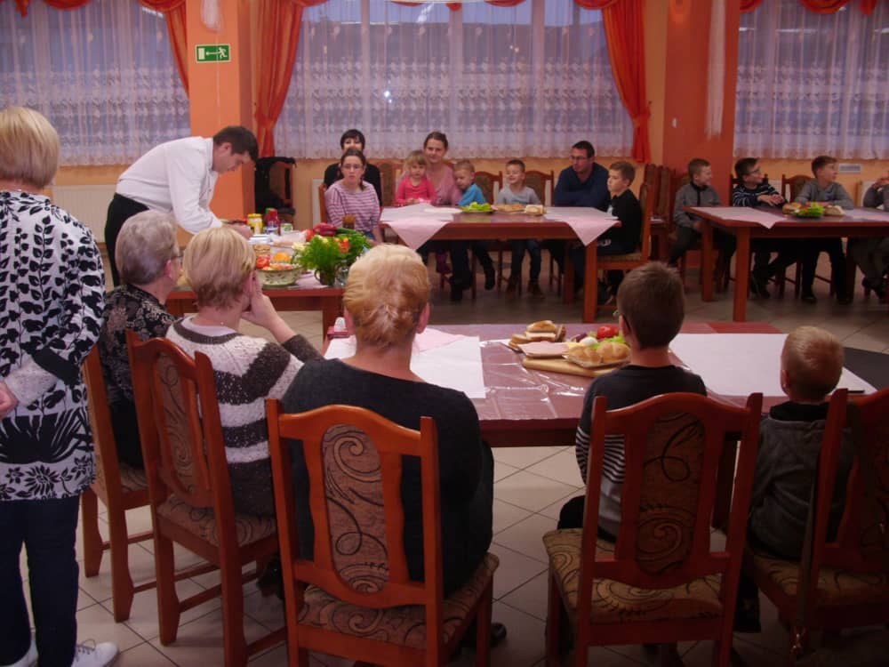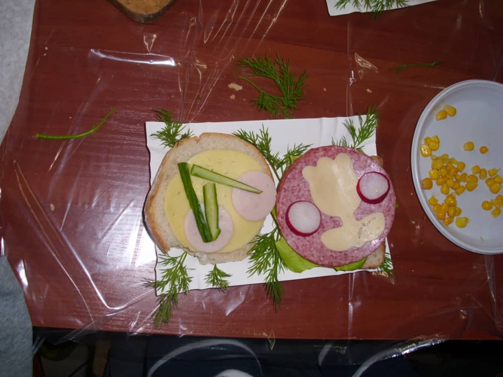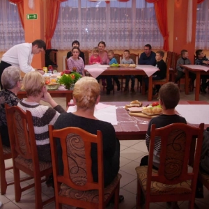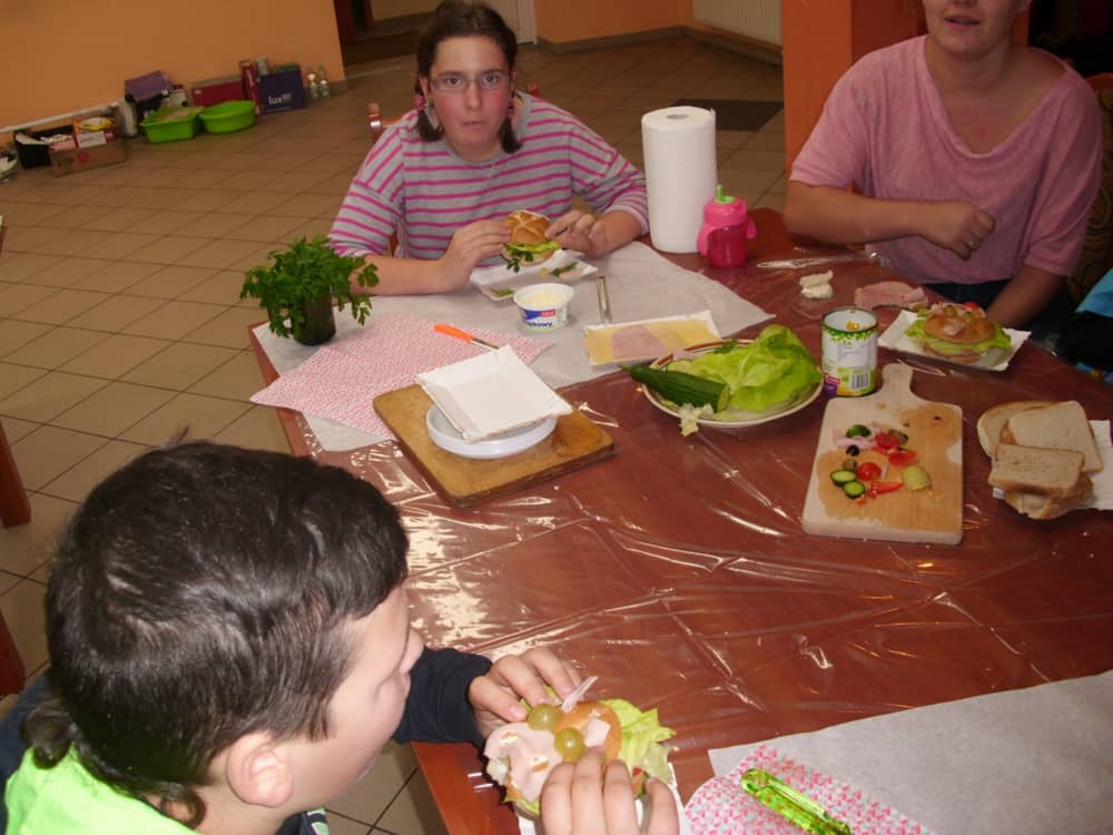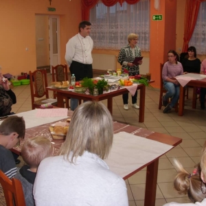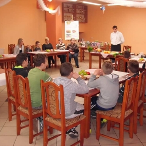 Honorowym gościem, a jednocześnie prowadzącym był zawodowy kucharz Tomasz Brzykcy. Opowiedział uczestnikom o zdrowych produktach, zademonstrował przyrządy służące do ozdabiania potraw, z których korzysta w kuchni. Z warzyw i owoców wyczarował telefon, imbryk, serwis do herbaty. Z pieczywa powstała krowa oraz lew. Po interesującym pokazie, dzieci pod okiem rodziców, babć i opiekunów, (przy dużej dawce śmiechu) same tworzyły kanapkowe cuda. Na koniec nastąpiła demonstracja dzieł i długo wyczekiwana konsumpcja.