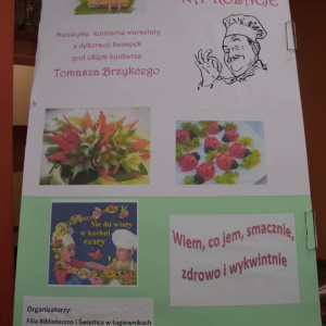 Warsztatom towarzyszyła wystawa popularnych w ostatnim czasie publikacji o tematyce kulinarnej. Prezentowane na niej pozycje można wypożyczyć w Bibliotece Publicznej w Kobylinie oraz Filiach Bibliotecznych w Łagiewnikach i Smolicach.