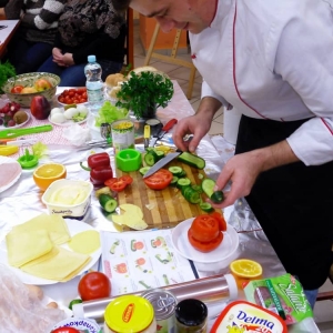 Celem spotkania było pokazanie jak z podstawowych produktów można wyczarować niecodzienne dekoracje kanapek na przyjęciu czy podczas uroczystej kolacji w domu.