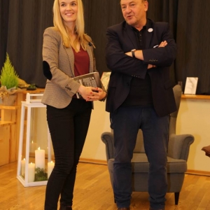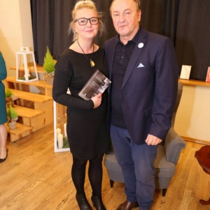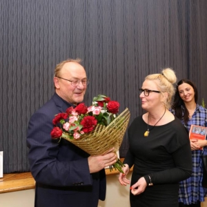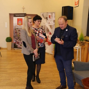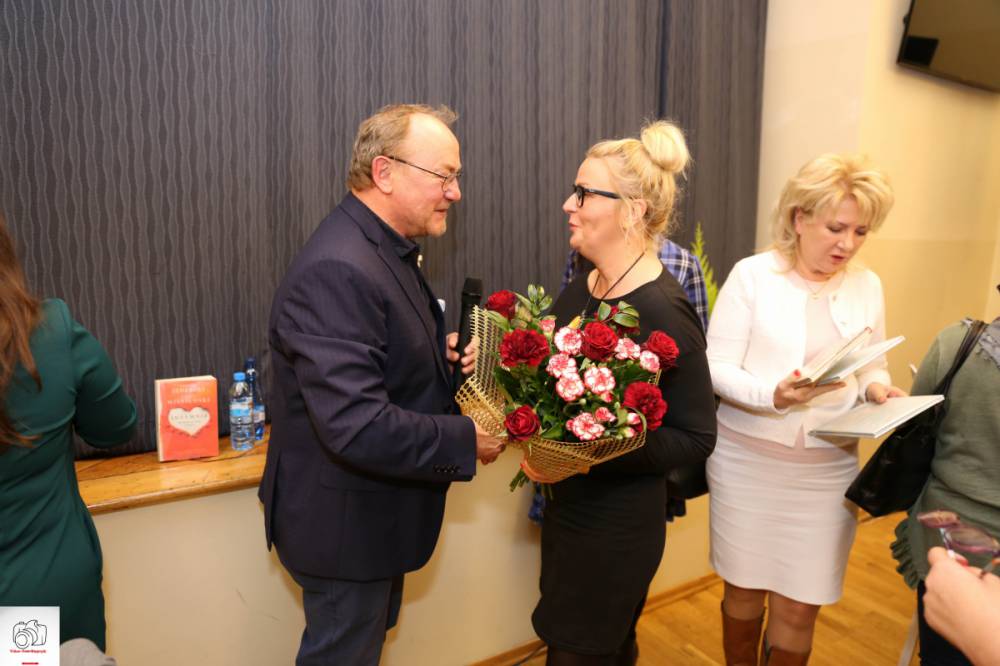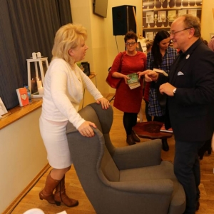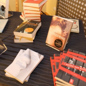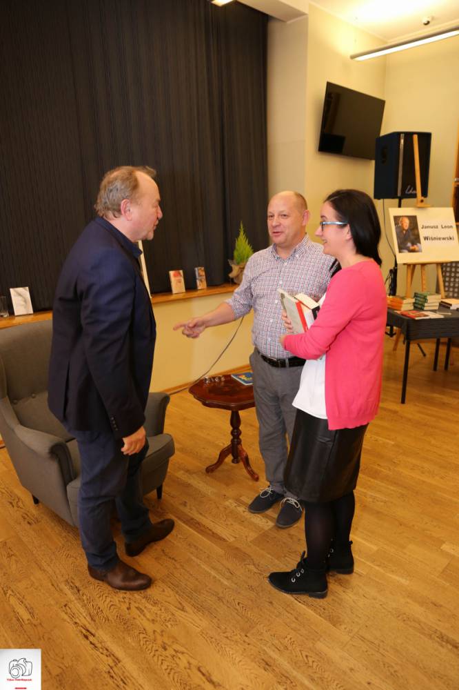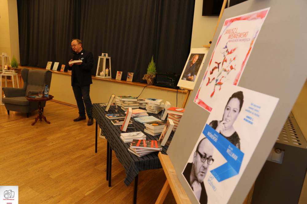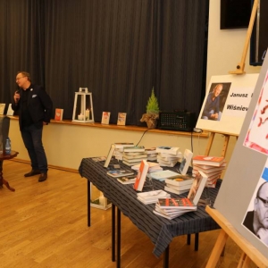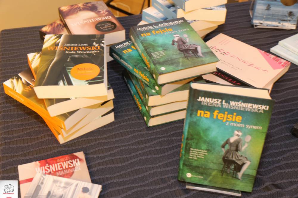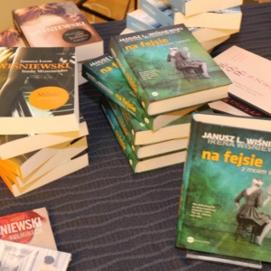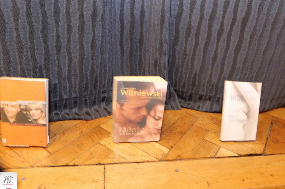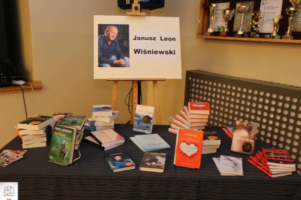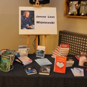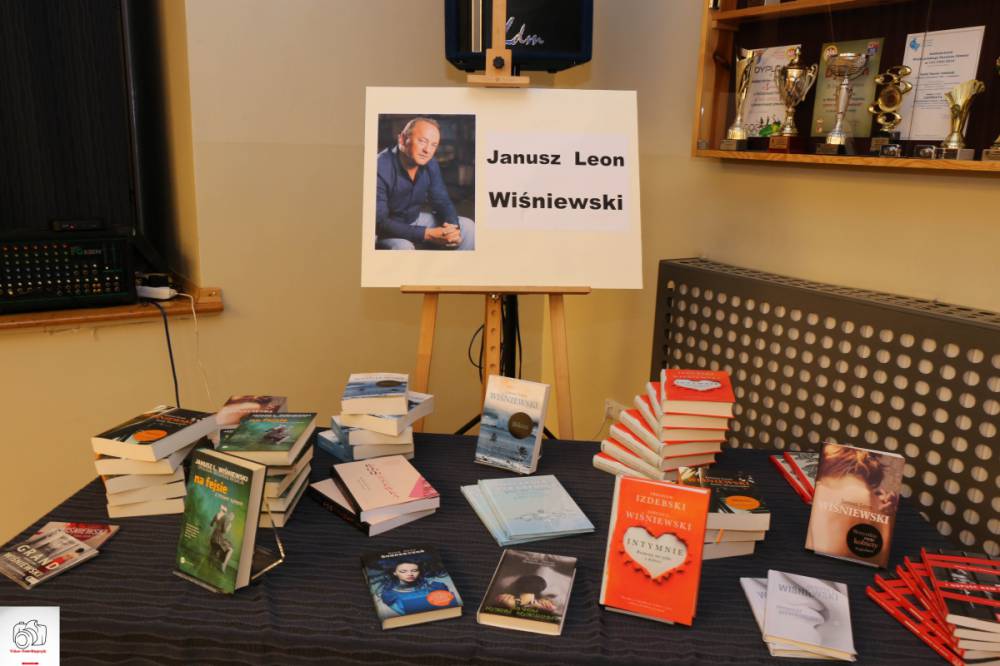Janusz Leon Wiśniewski zajmująco opowiadał i swoich książkach. Pisarz wspomniał o powieści ,,Bikini”, którą uważa za bardzo cenną. Tytuł pochodzi od wyspy Bikini, na której USA testowały broń nuklearną. Mówił o pisanych, od kilkunastu lat, felietonach do czasopisma ,,Pani”, w których zamieszcza publicystyczne historie. Pisarz zdradził, że pracuje nad nową książką … kontynuacją ,,Samotności w sieci”. Autor zwrócił uwagę na dwie książki, które napisał specjalnie dla najmłodszych czytelników: ,,Marcelinka rusza w Kosmos. Bajka trochę naukowa” oraz ,,Uczucia”.